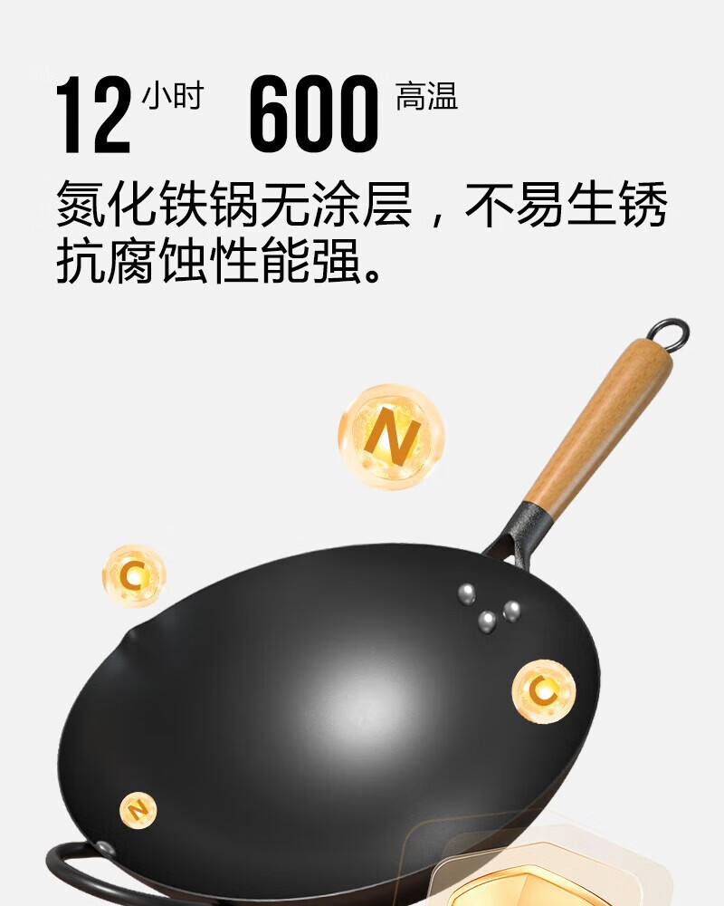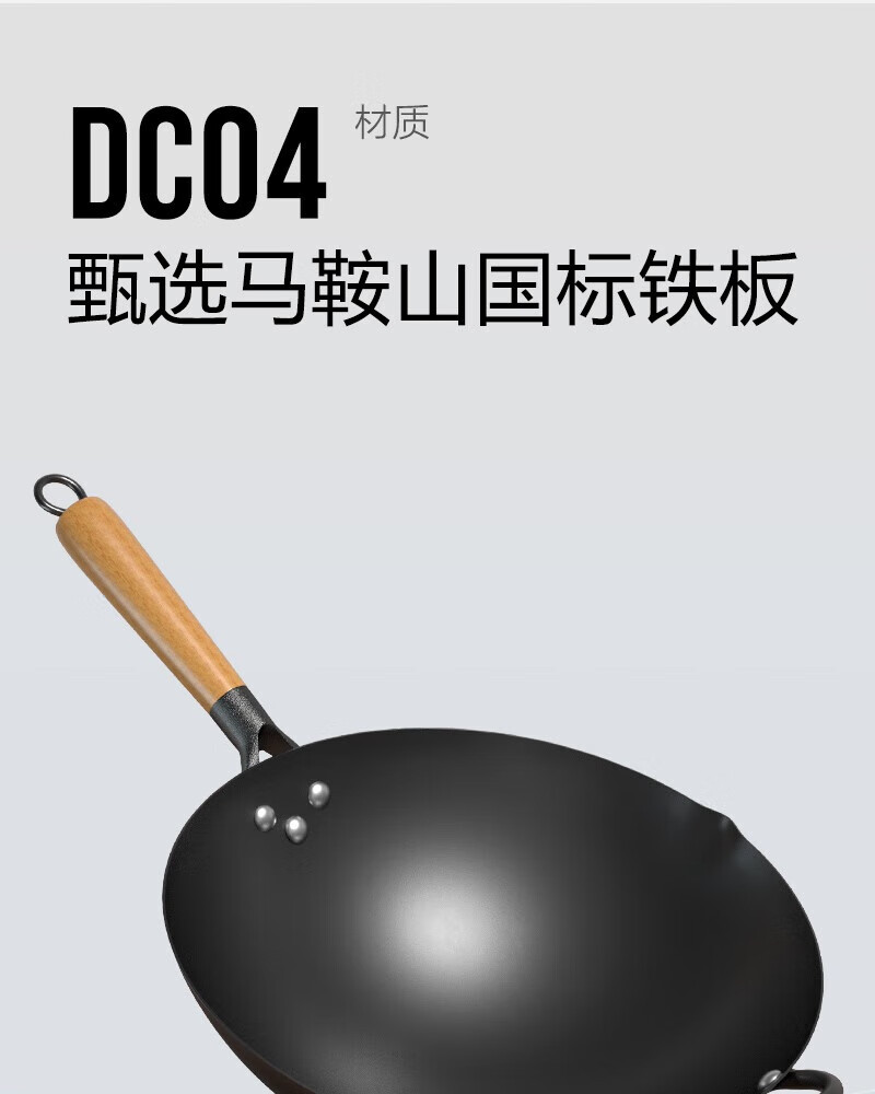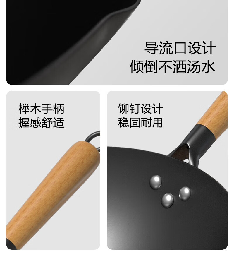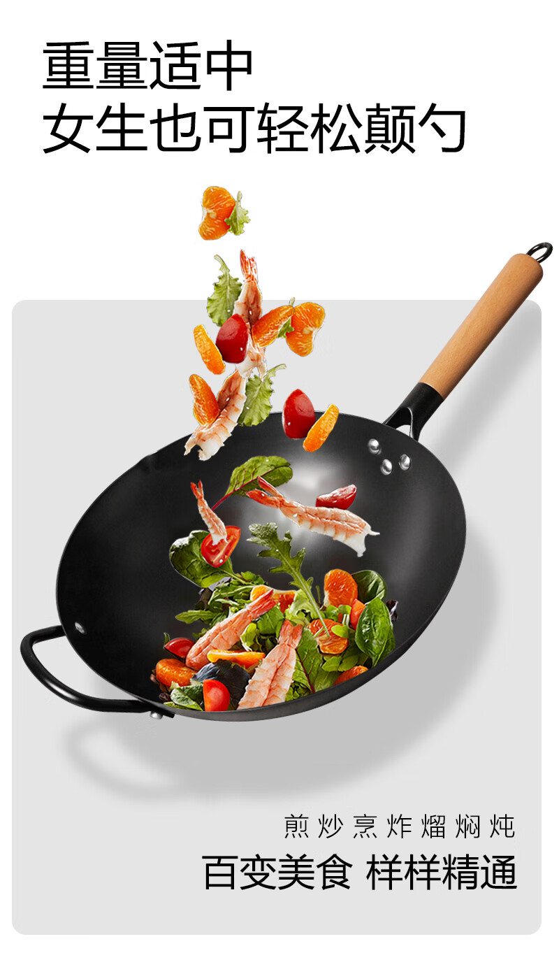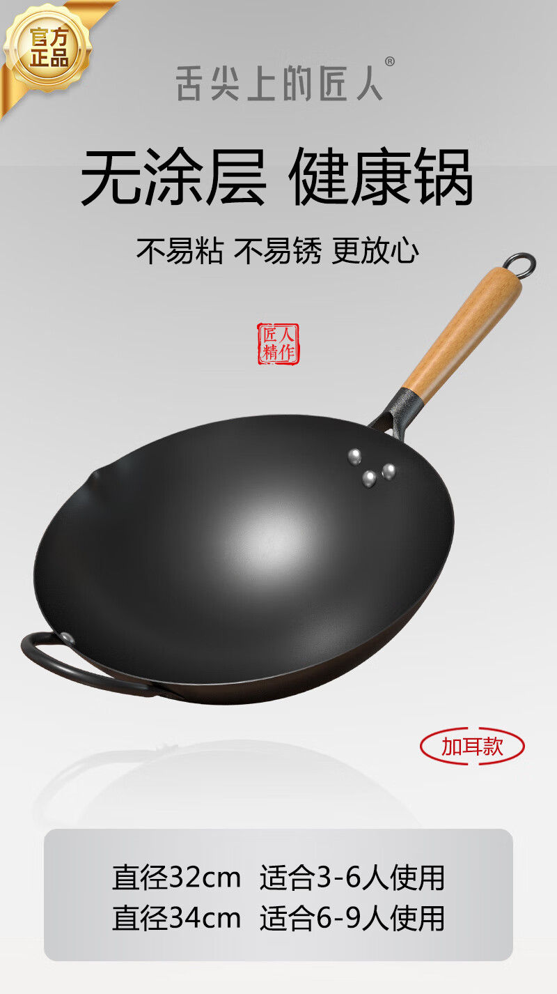 舌尖上的匠人传统老式铁锅不粘锅无涂层家用炒菜锅适用燃气灶煤气灶专用炒锅 32cm含盖(适合3-6人使用)