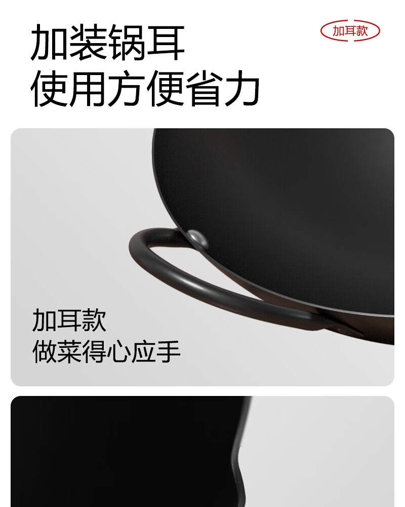 舌尖上的匠人炒菜锅不粘锅家用炒锅无涂层铁锅燃气灶电磁炉专用锅具 34CM加耳圆底锅(无锅盖)