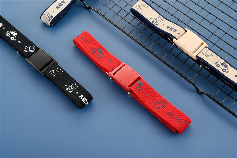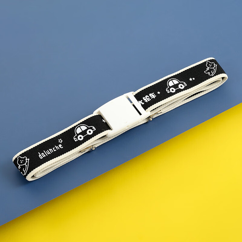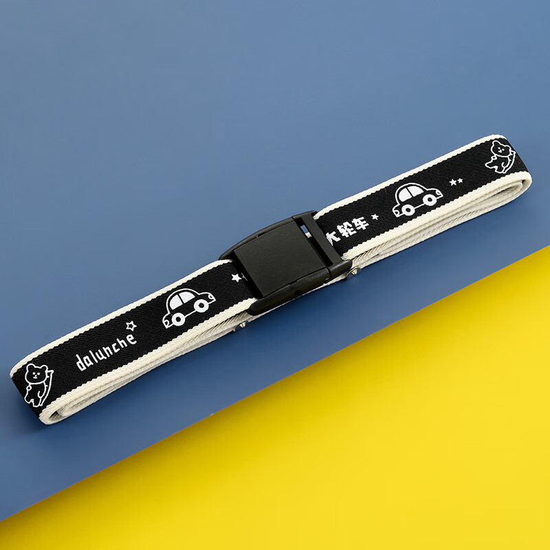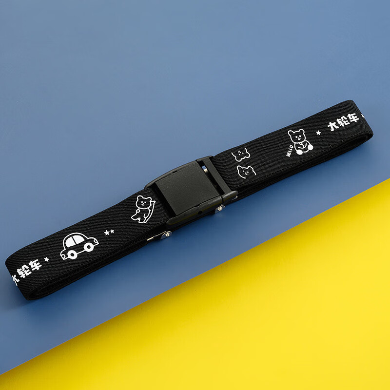 缇彩娜0--13岁儿童裤带男童女童腰带弹力卡通小学生皮带宝宝幼童小孩子 印花白间黑色配黑扣