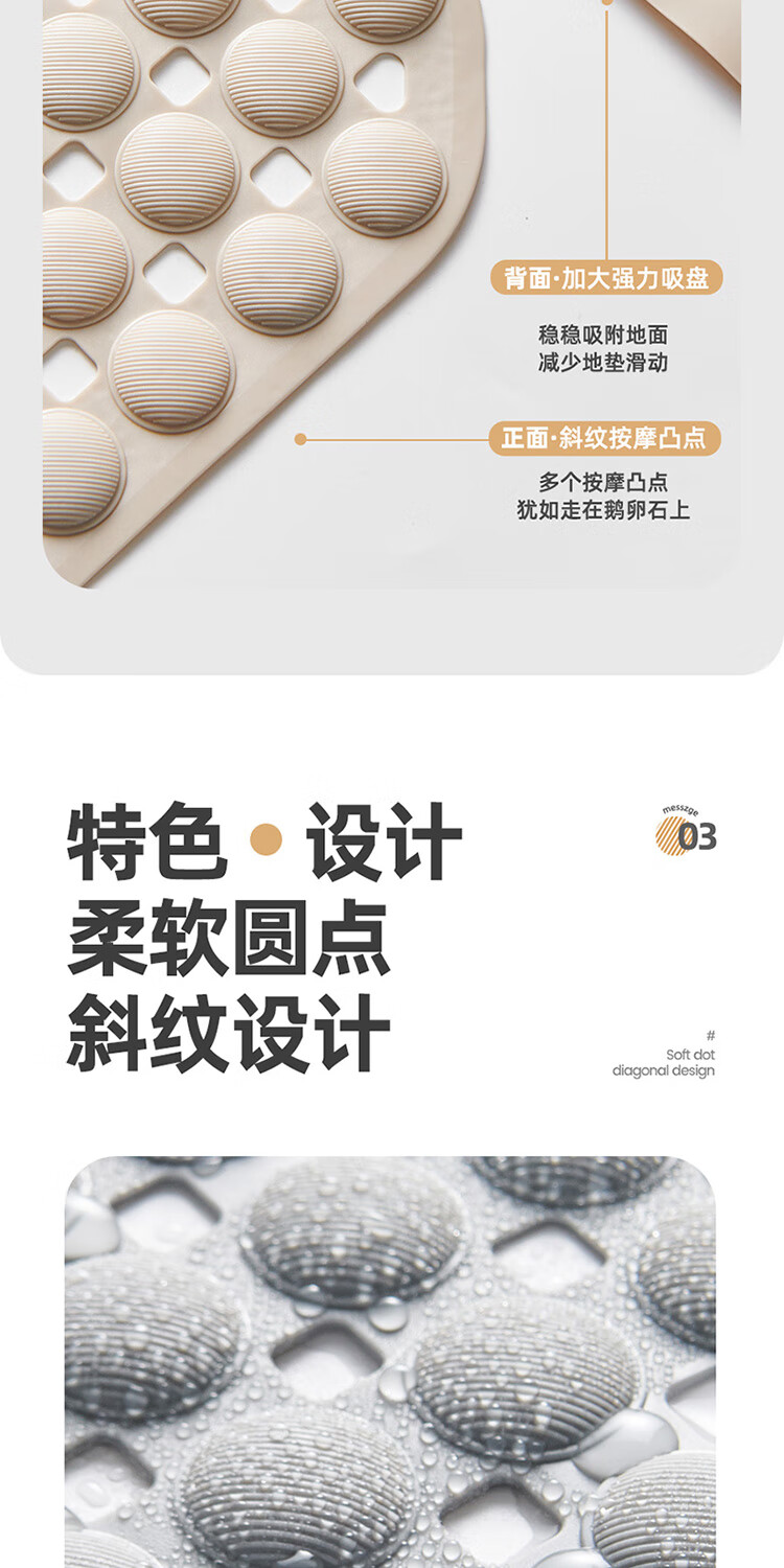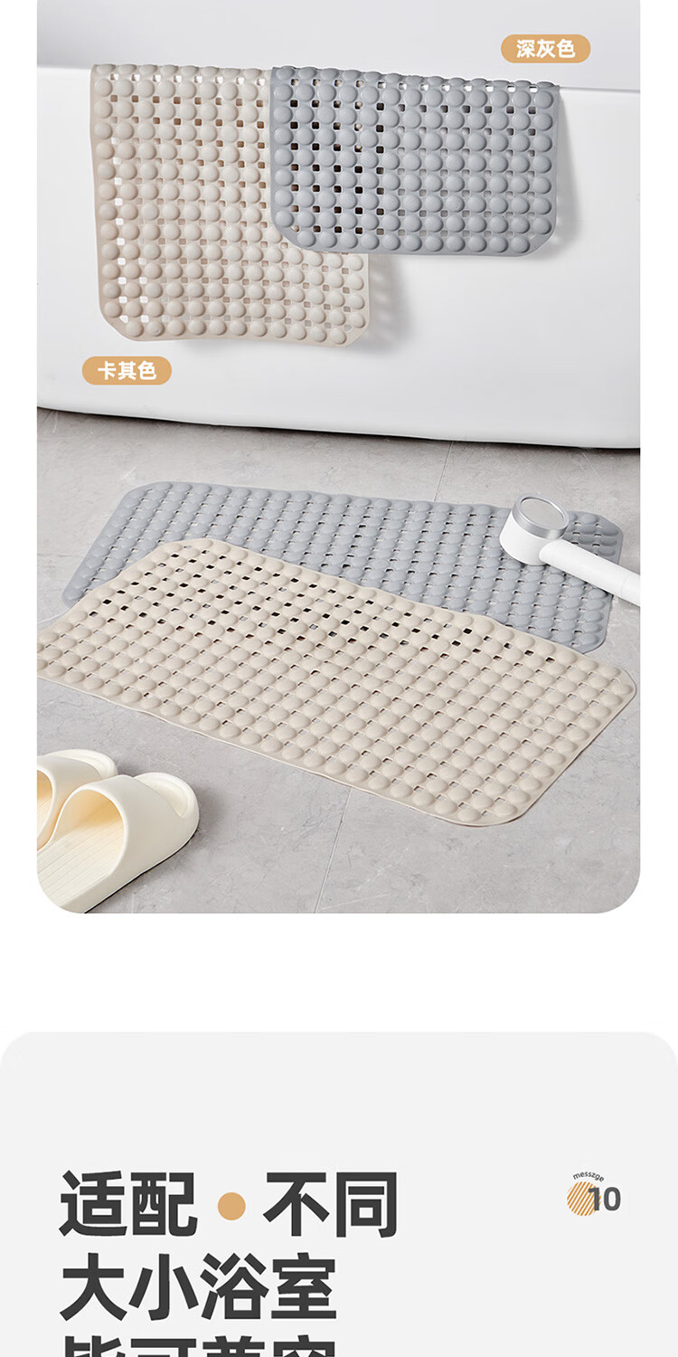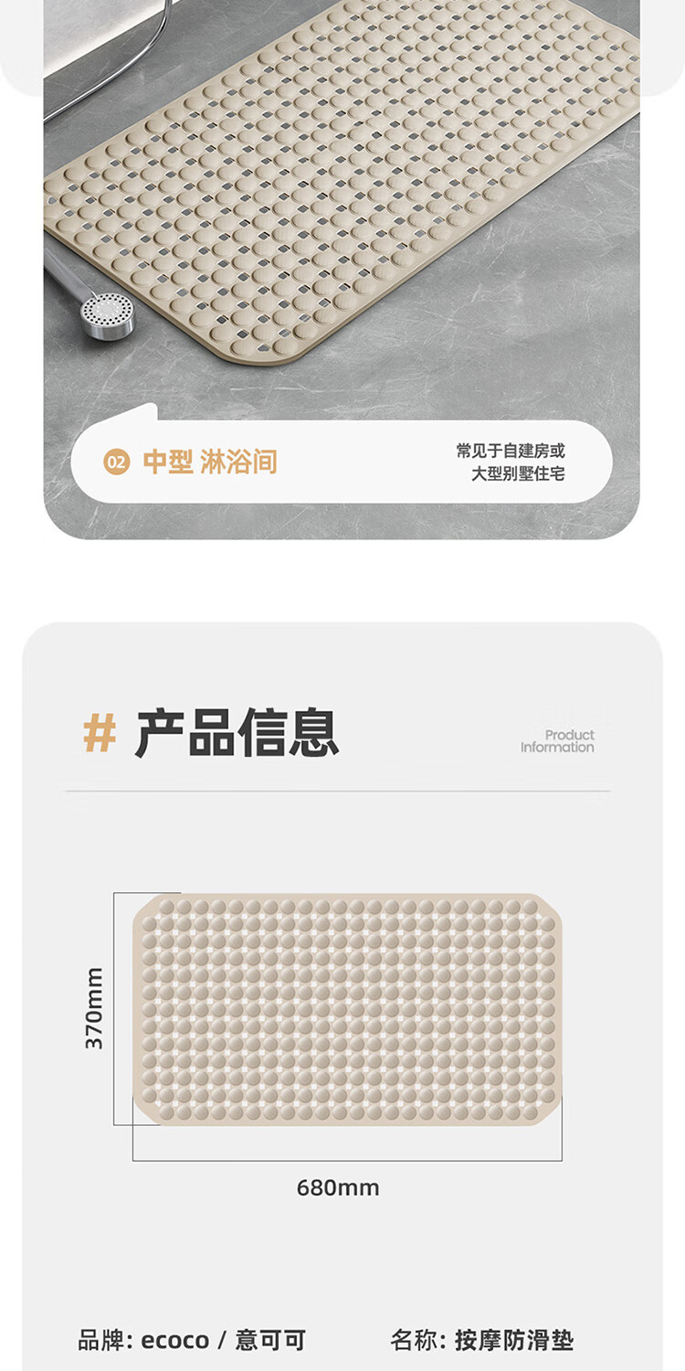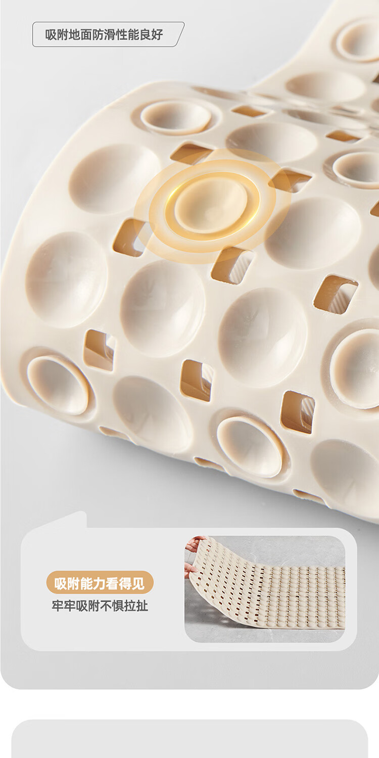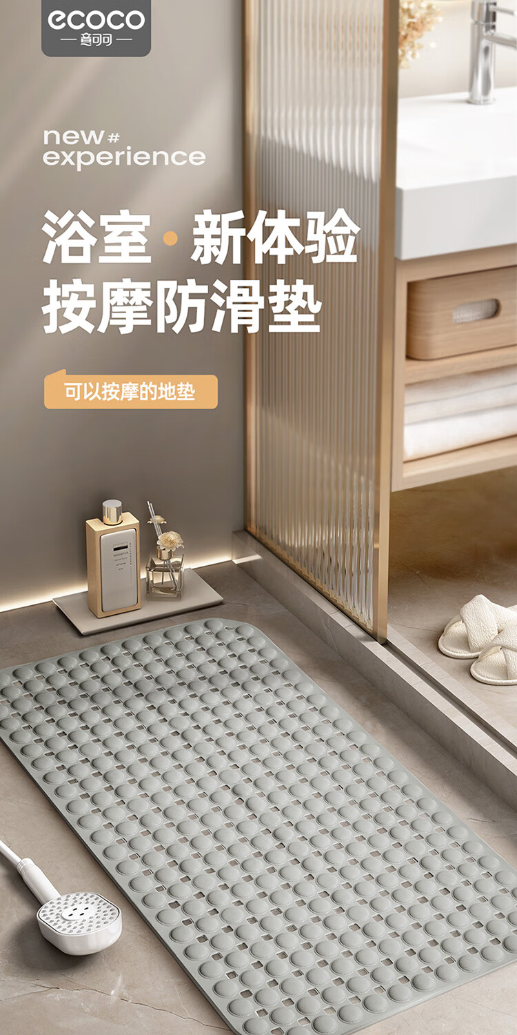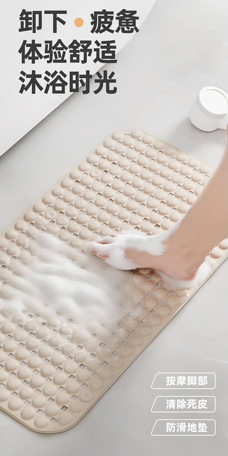 ecoco意可可浴室防滑地垫家用沐浴洗澡吸盘防摔垫浴缸卫生间按摩脚垫子 【卡其色】强吸附不打滑