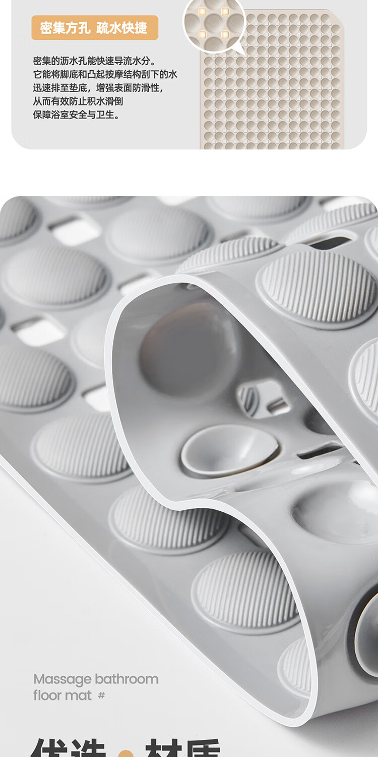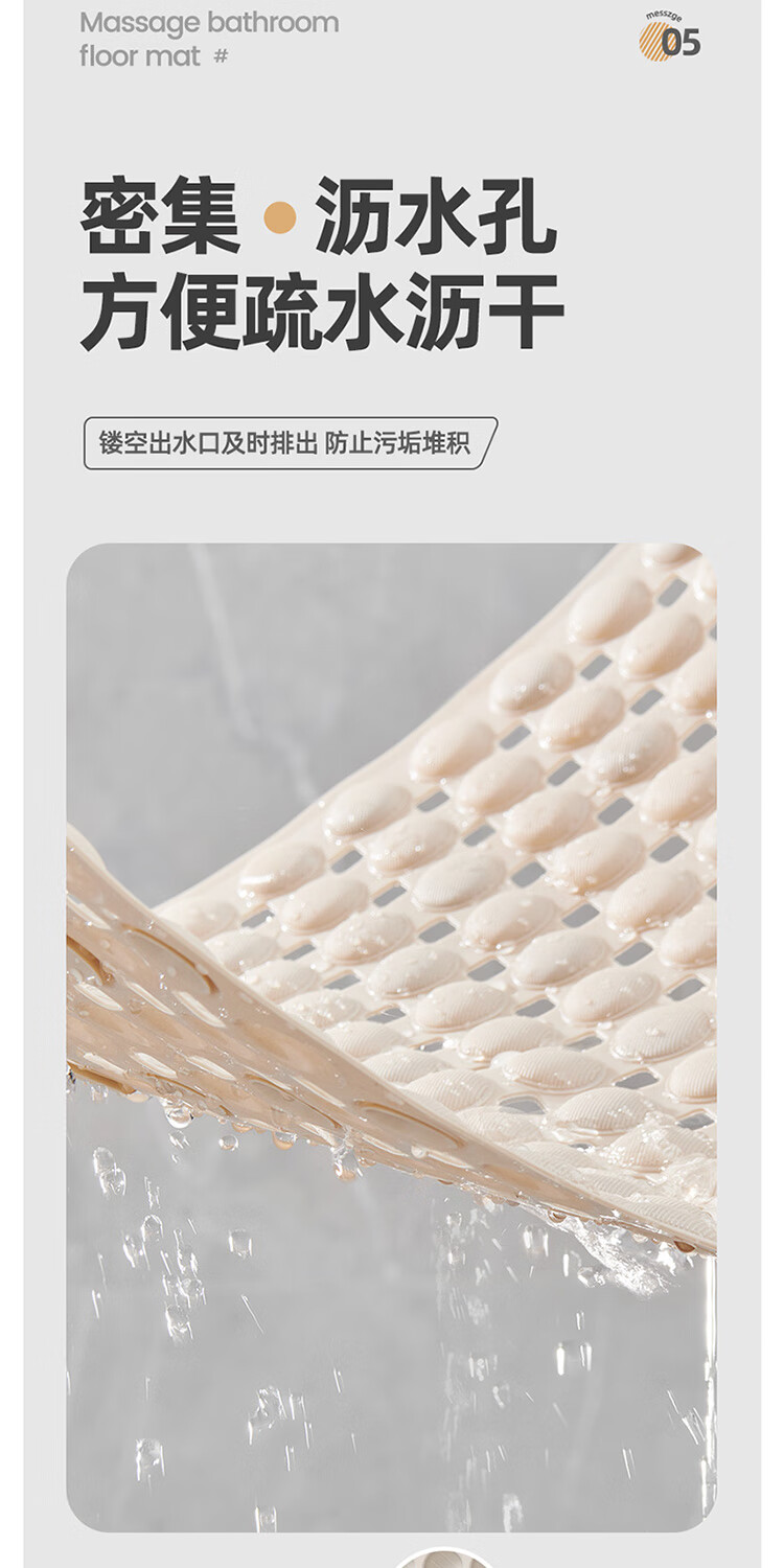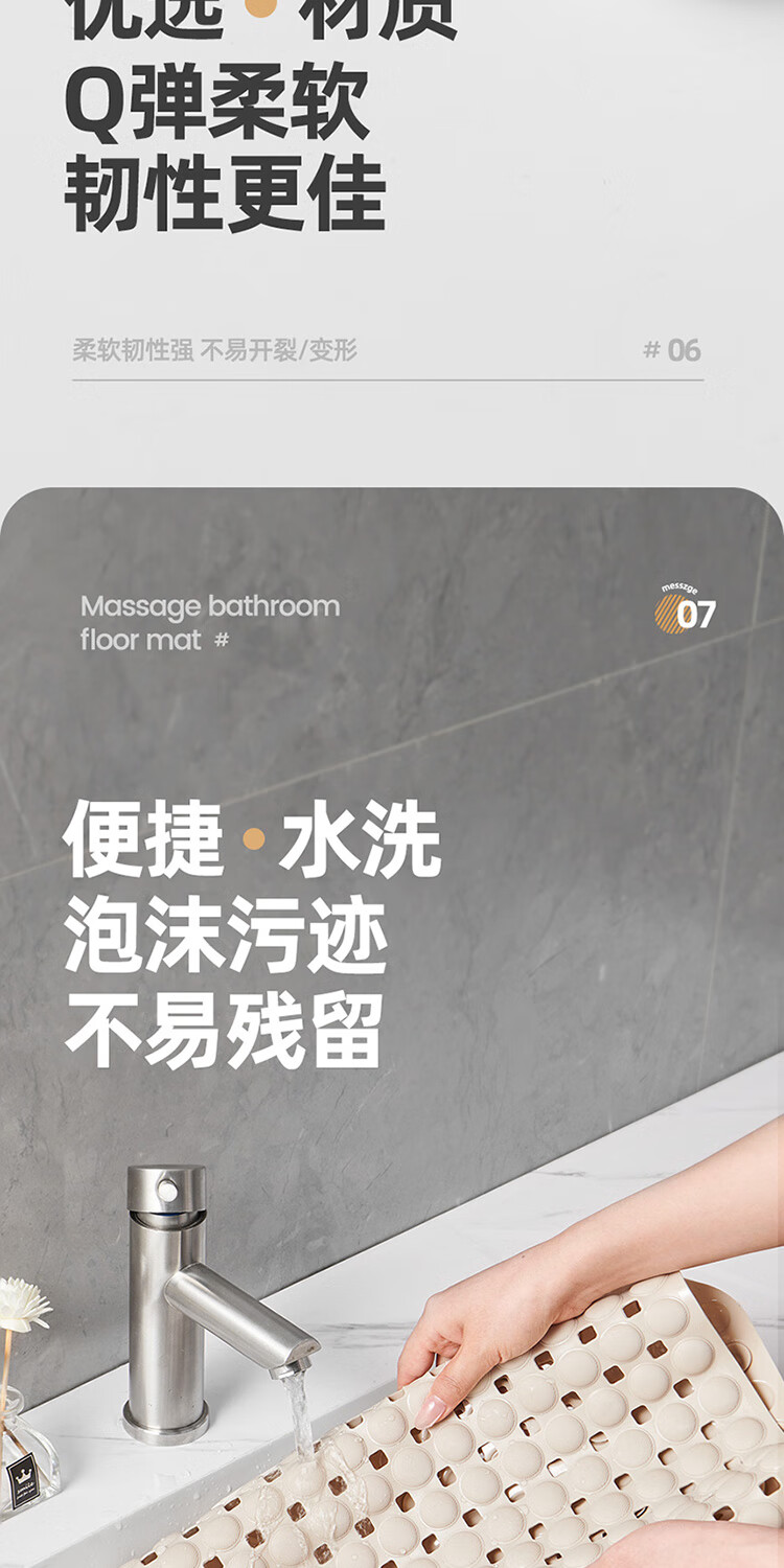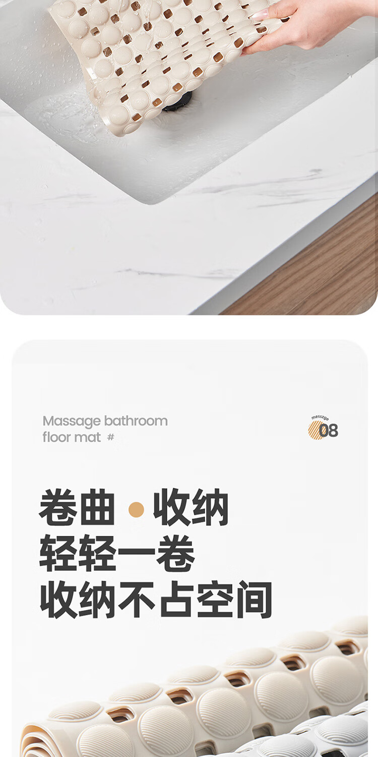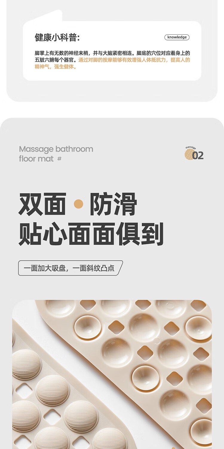 ecoco意可可浴室防滑地垫家用沐浴洗澡吸盘防摔垫浴缸卫生间按摩脚垫子 【卡其色】强吸附不打滑
