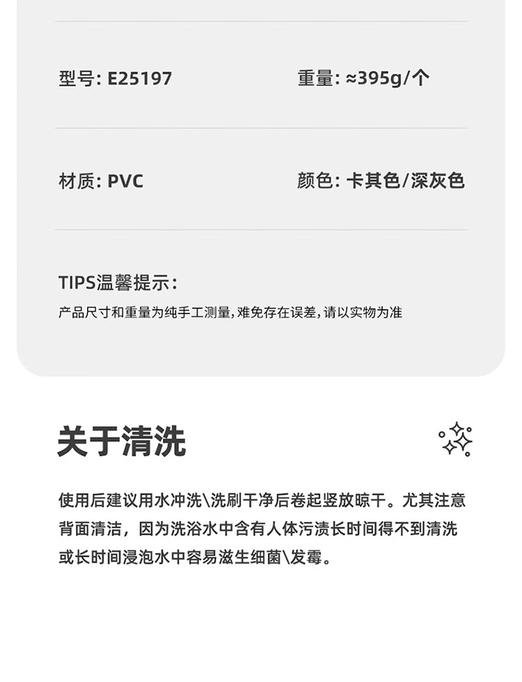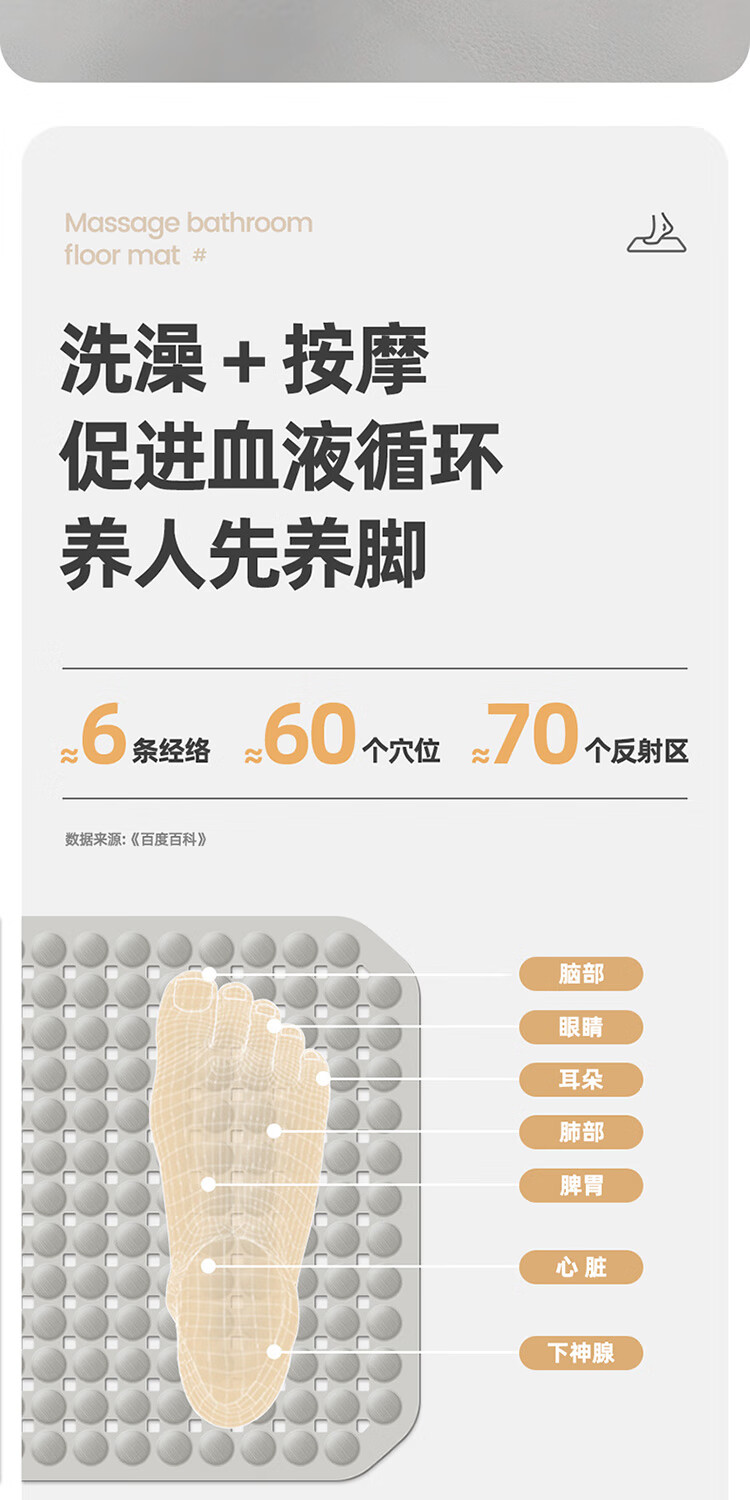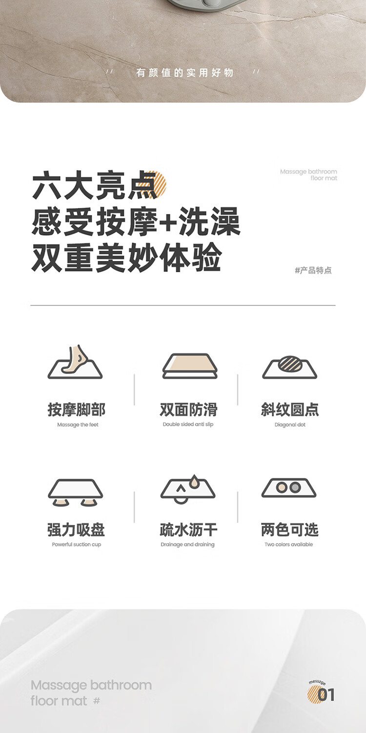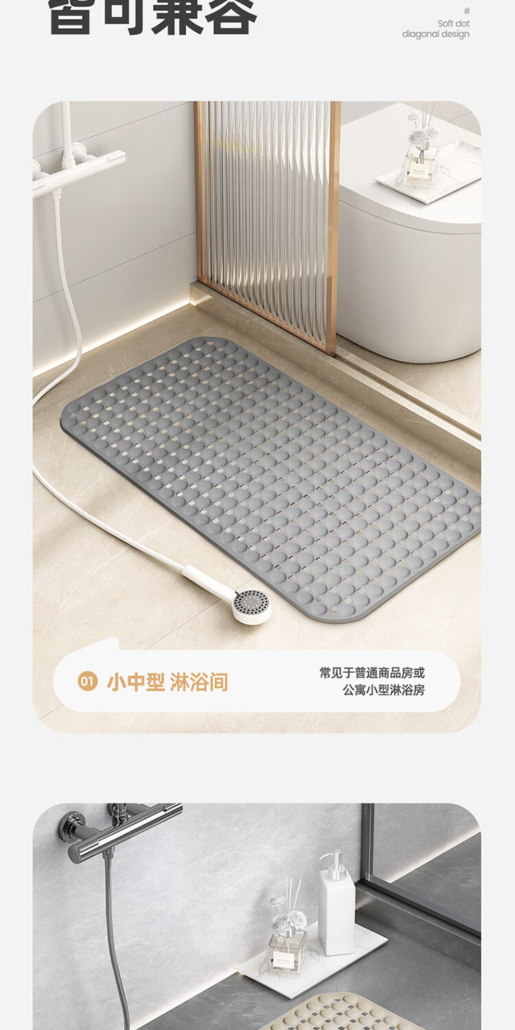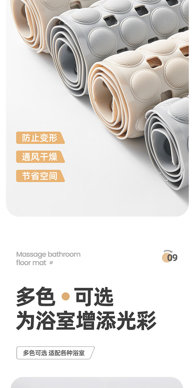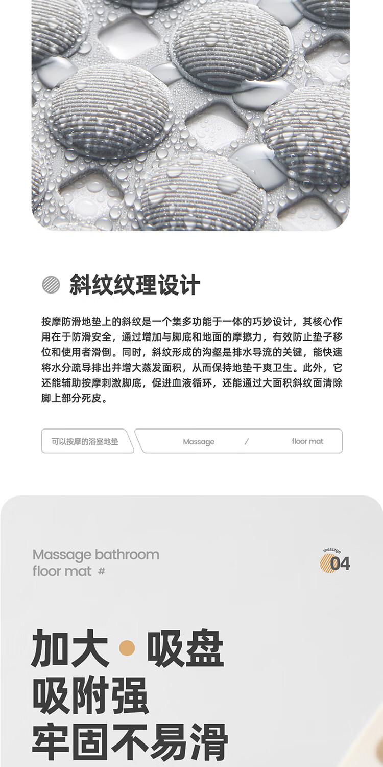 ecoco意可可浴室防滑地垫家用沐浴洗澡吸盘防摔垫浴缸卫生间按摩脚垫子 【卡其色】强吸附不打滑
