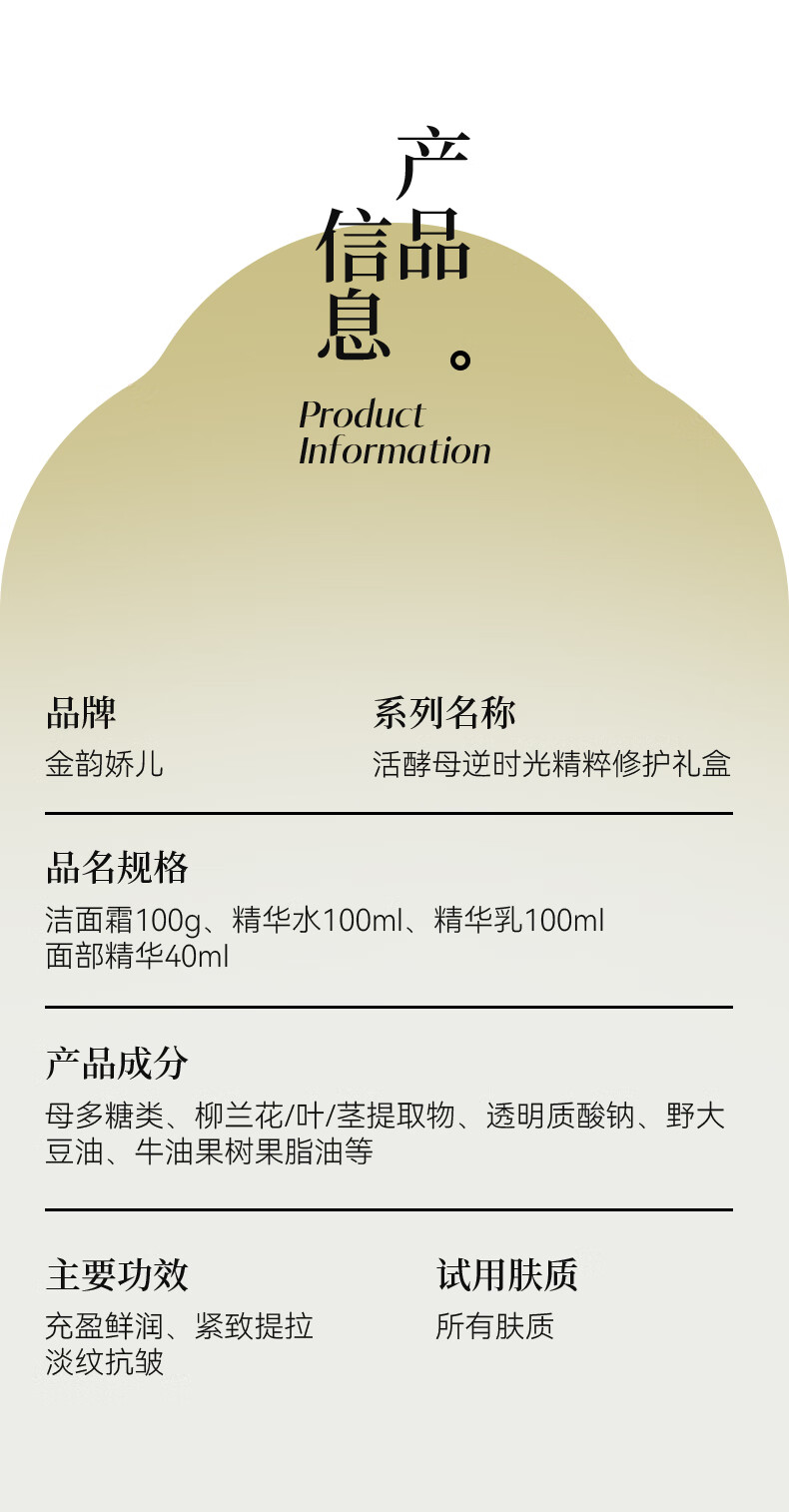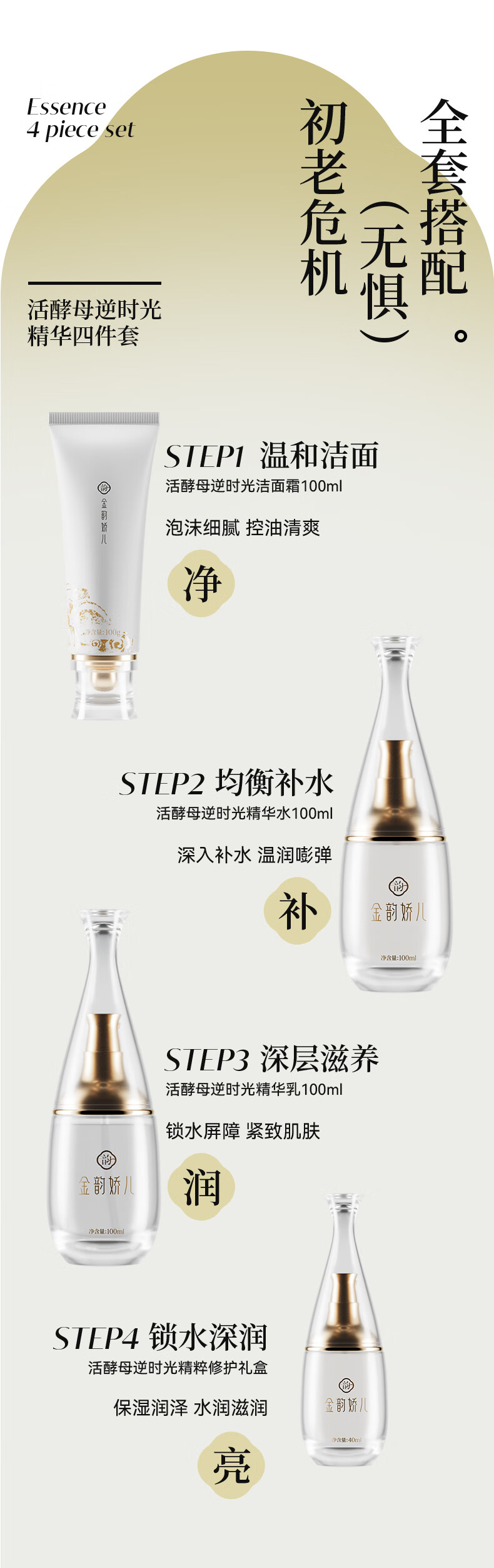 金韵娇儿活酵母护肤品套装 水乳礼盒秋冬补水保湿紧致抗皱套装孕妈妈适用 洁面+水+乳+面部精华(礼盒)