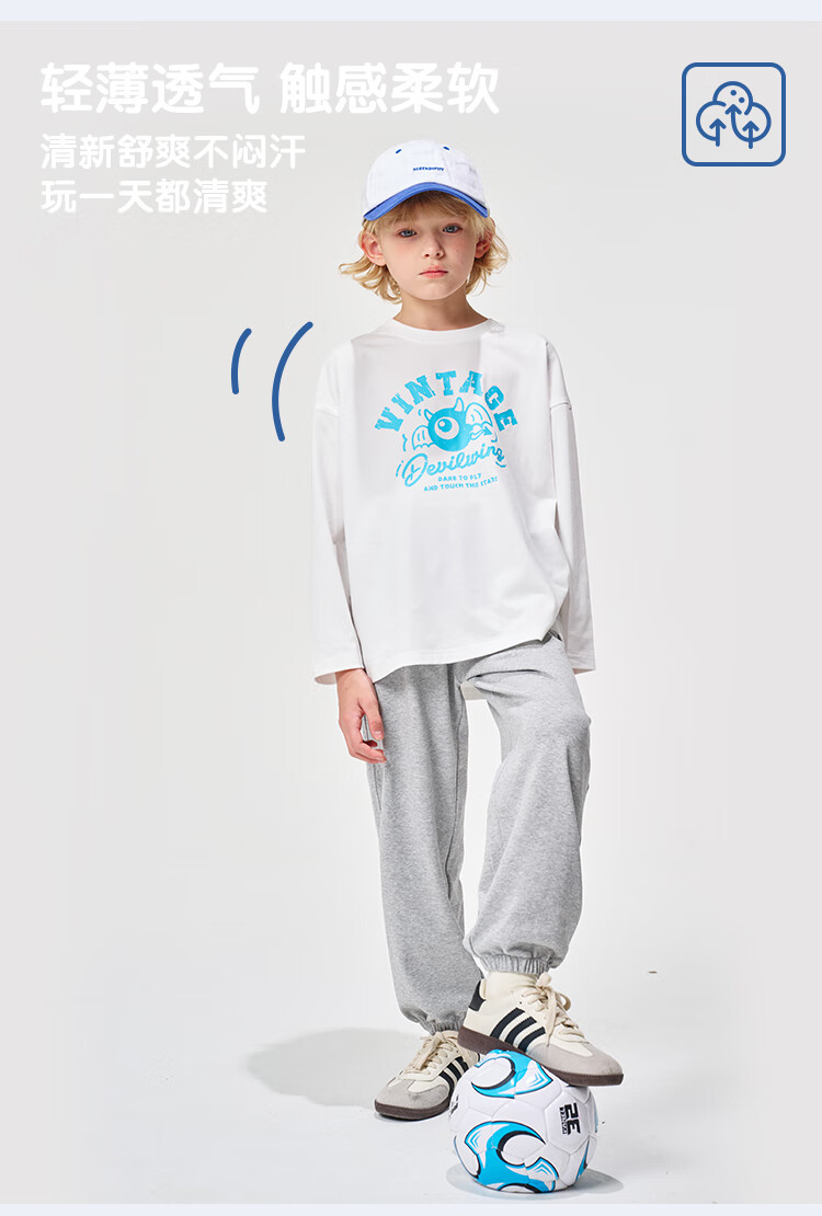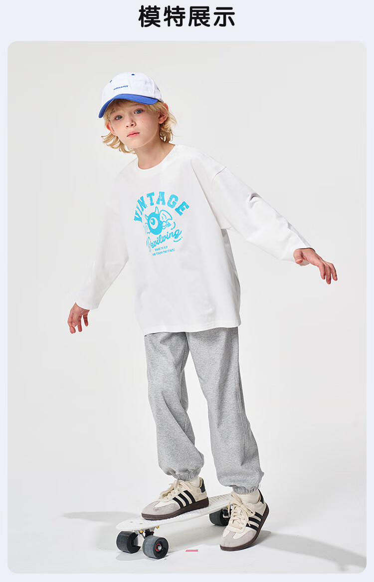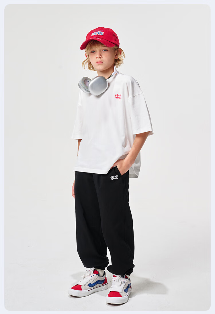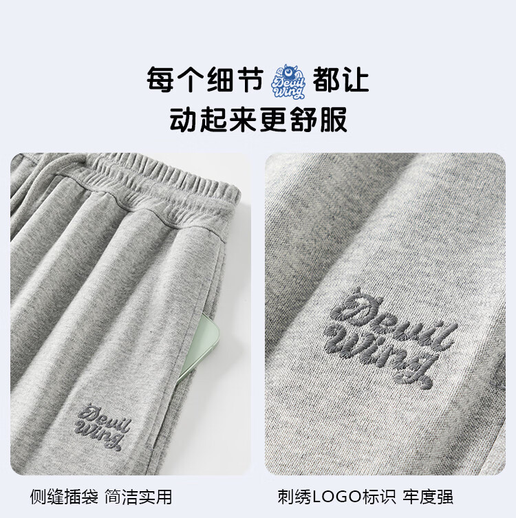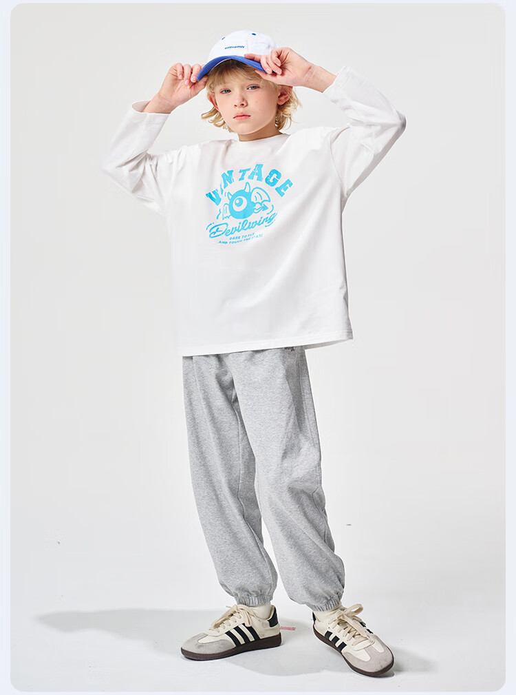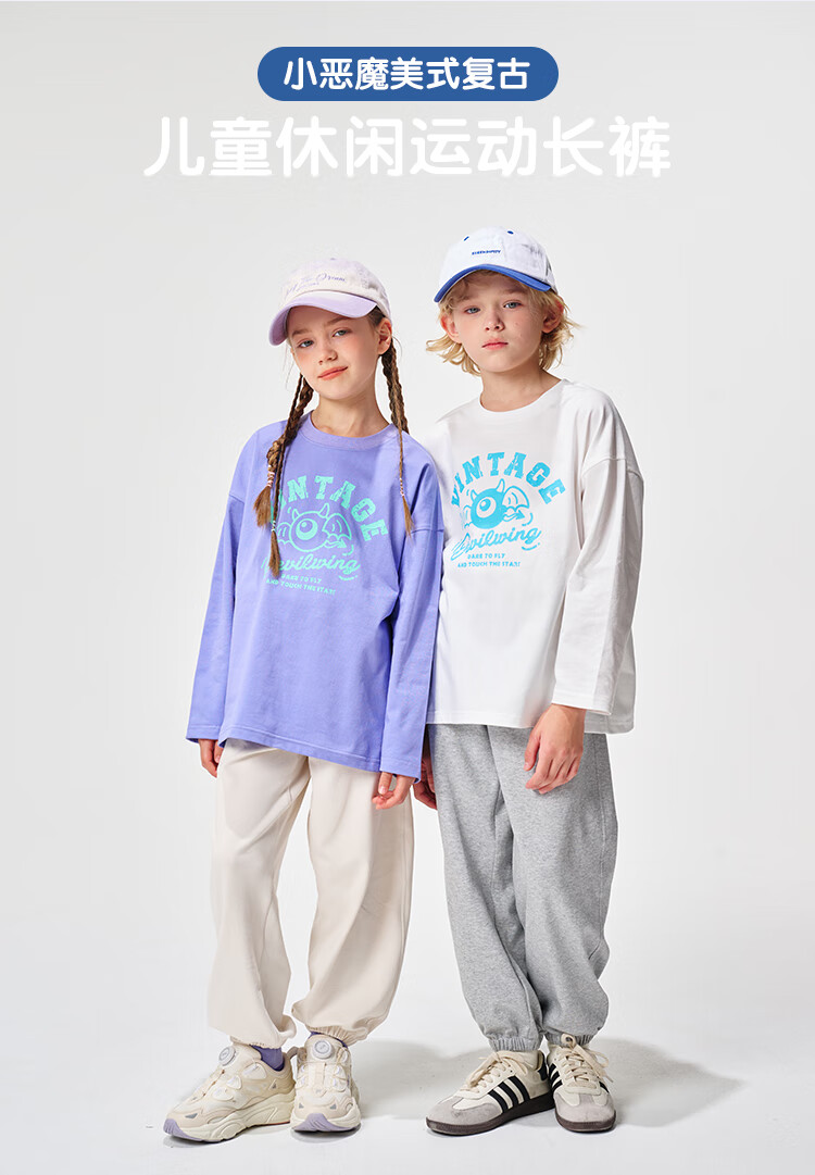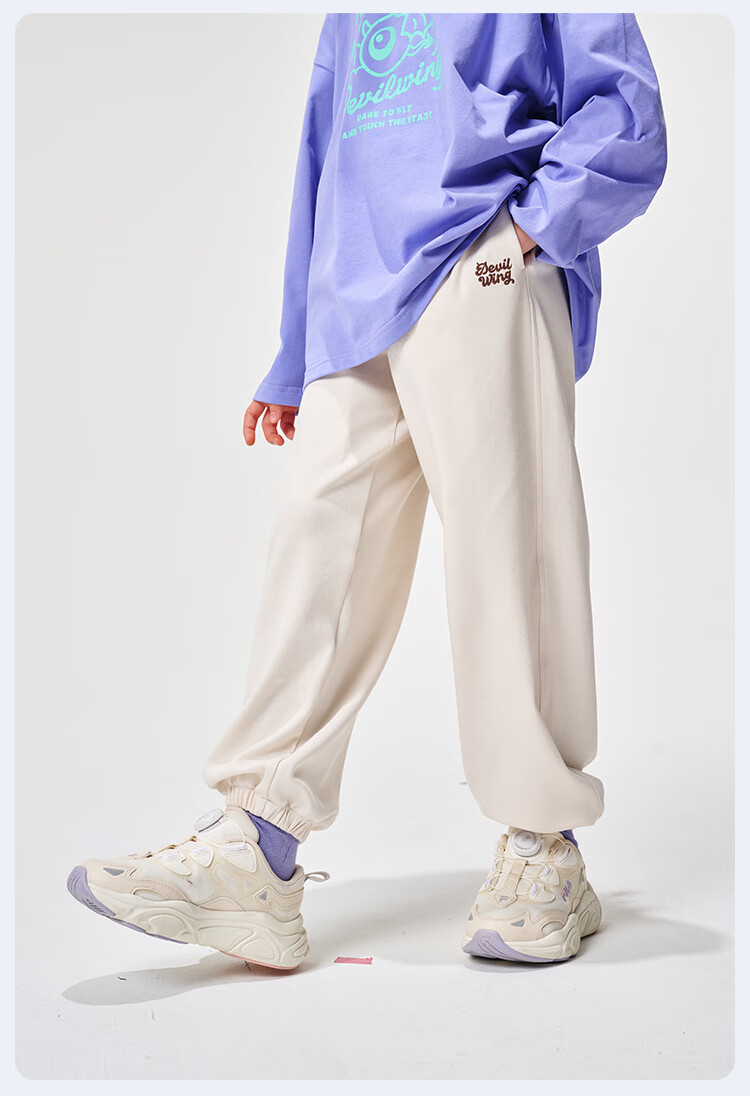 DEVILWING小恶魔儿童休闲运动长裤男童女童夏裤美式复古儿童冬季薄款裤子 燕麦色 120 20-25KG