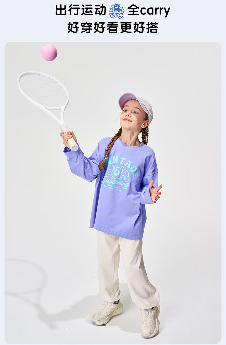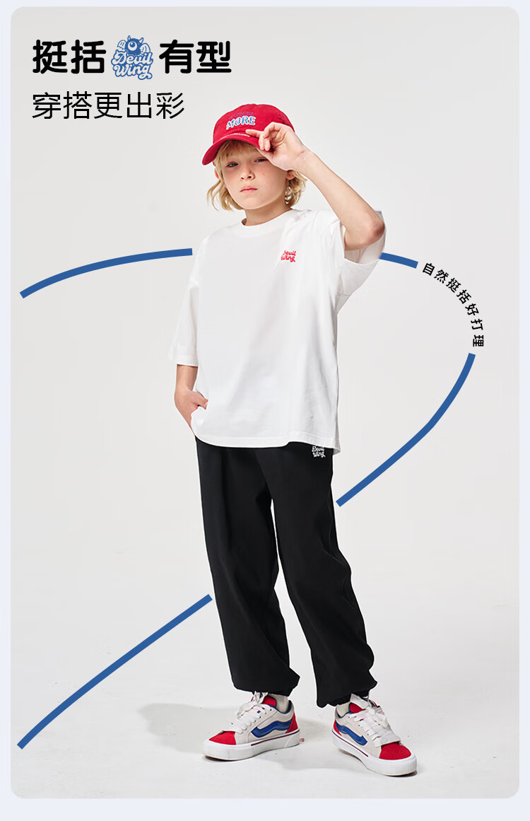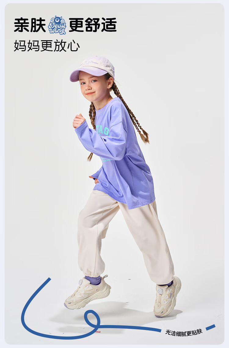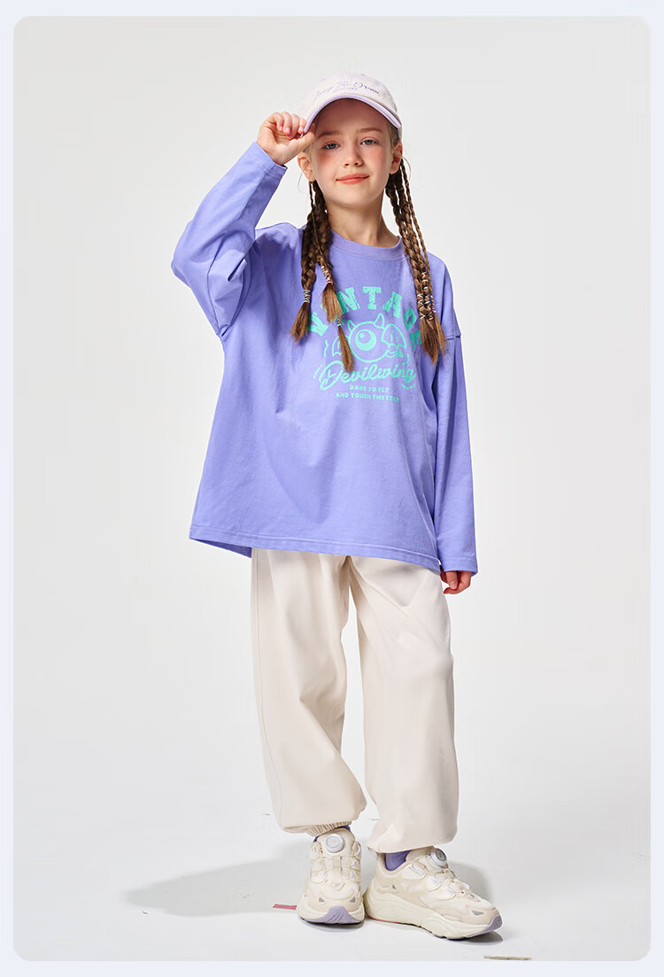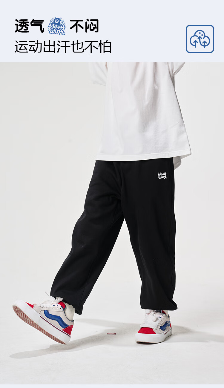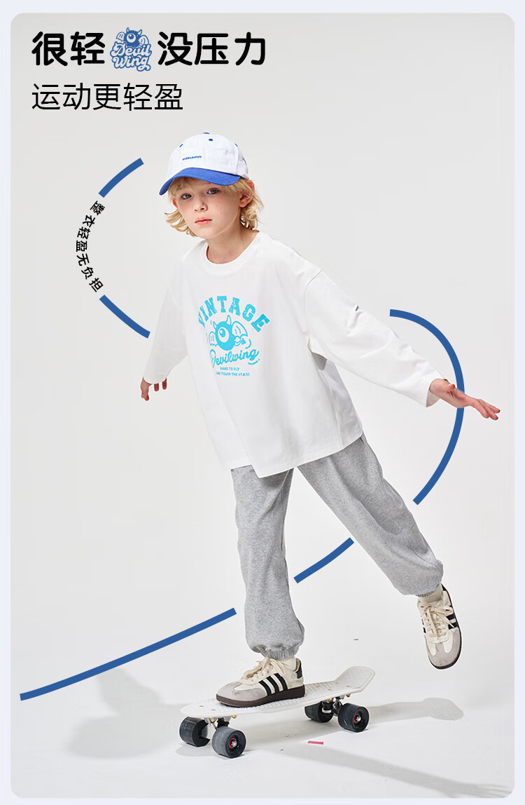 DEVILWING小恶魔儿童休闲运动长裤男童女童夏裤美式复古儿童冬季薄款裤子 燕麦色 120 20-25KG