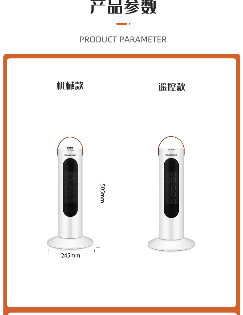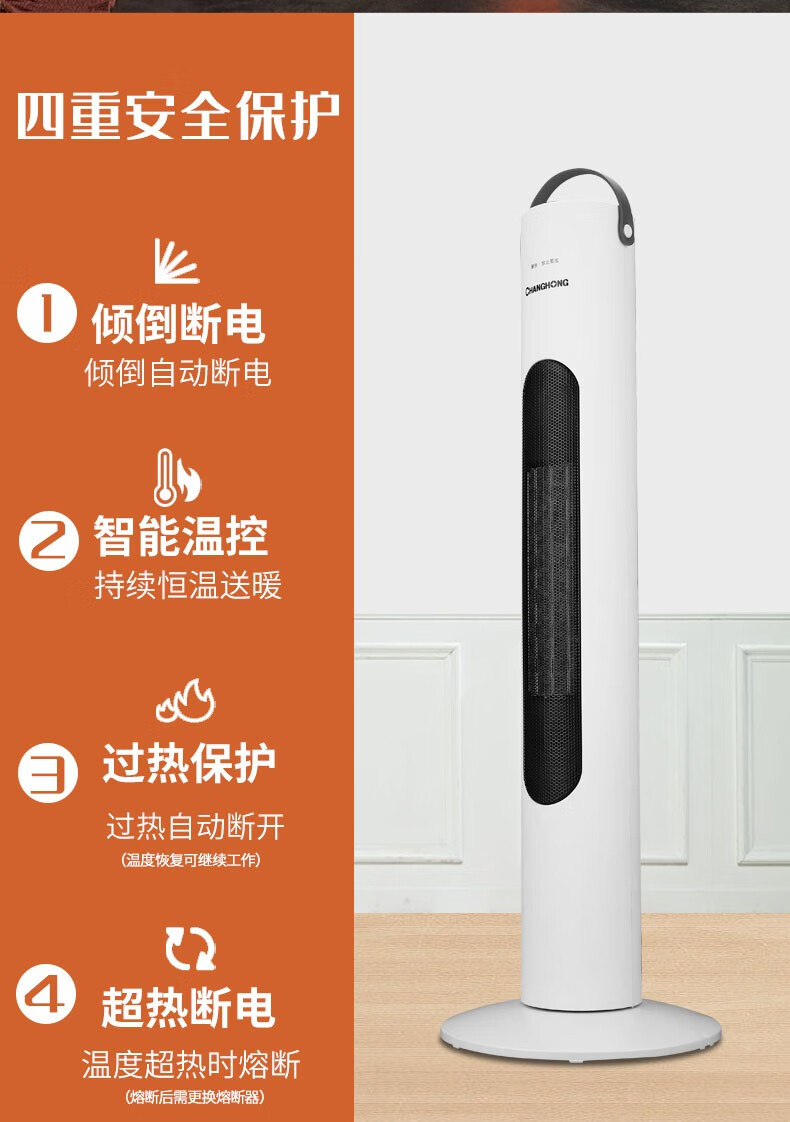 长虹(CHANGHONG) 取暖器暖风机立式电暖器电暖气家用电暖气立式暖器摇头暖风扇塔式电暖扇 升级立式机械2000W【左右摇头】高675mm