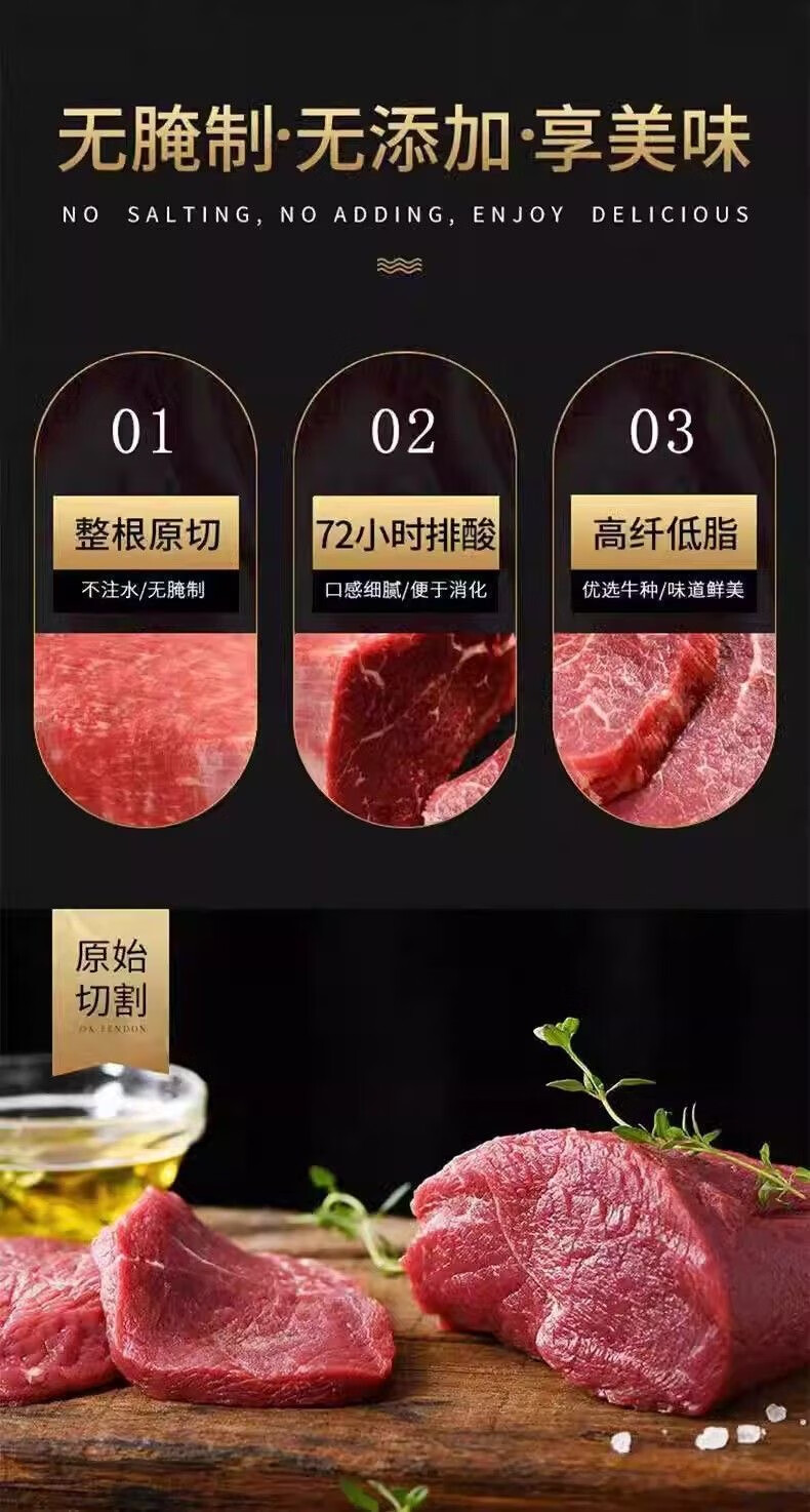 【顺丰包邮】内蒙古牛里脊肉牛排生鲜散养原切黄牛肉健身火锅食材 牛里脊3斤