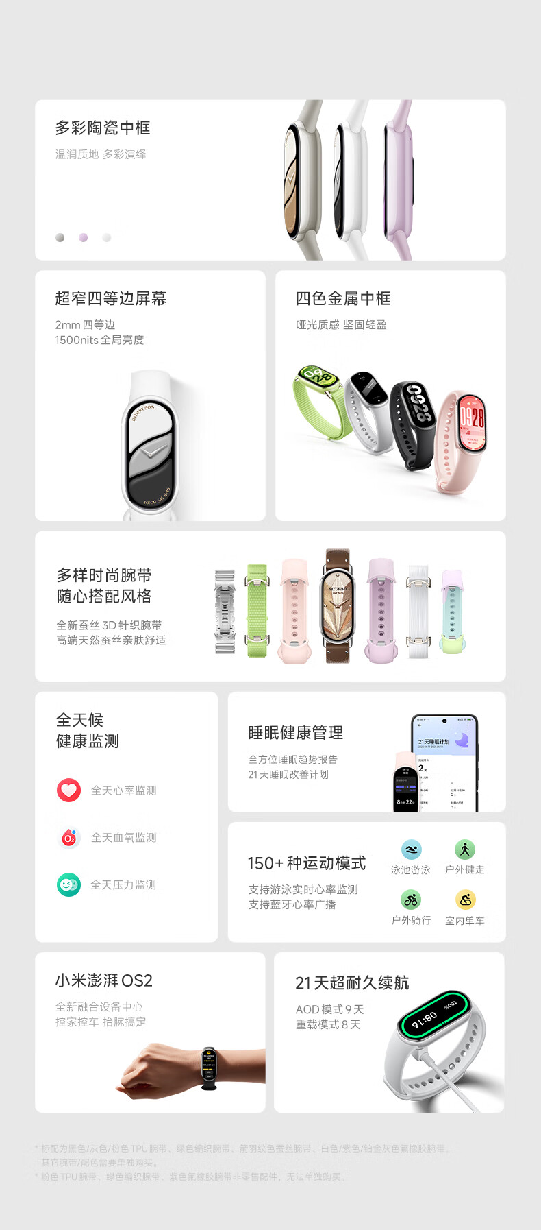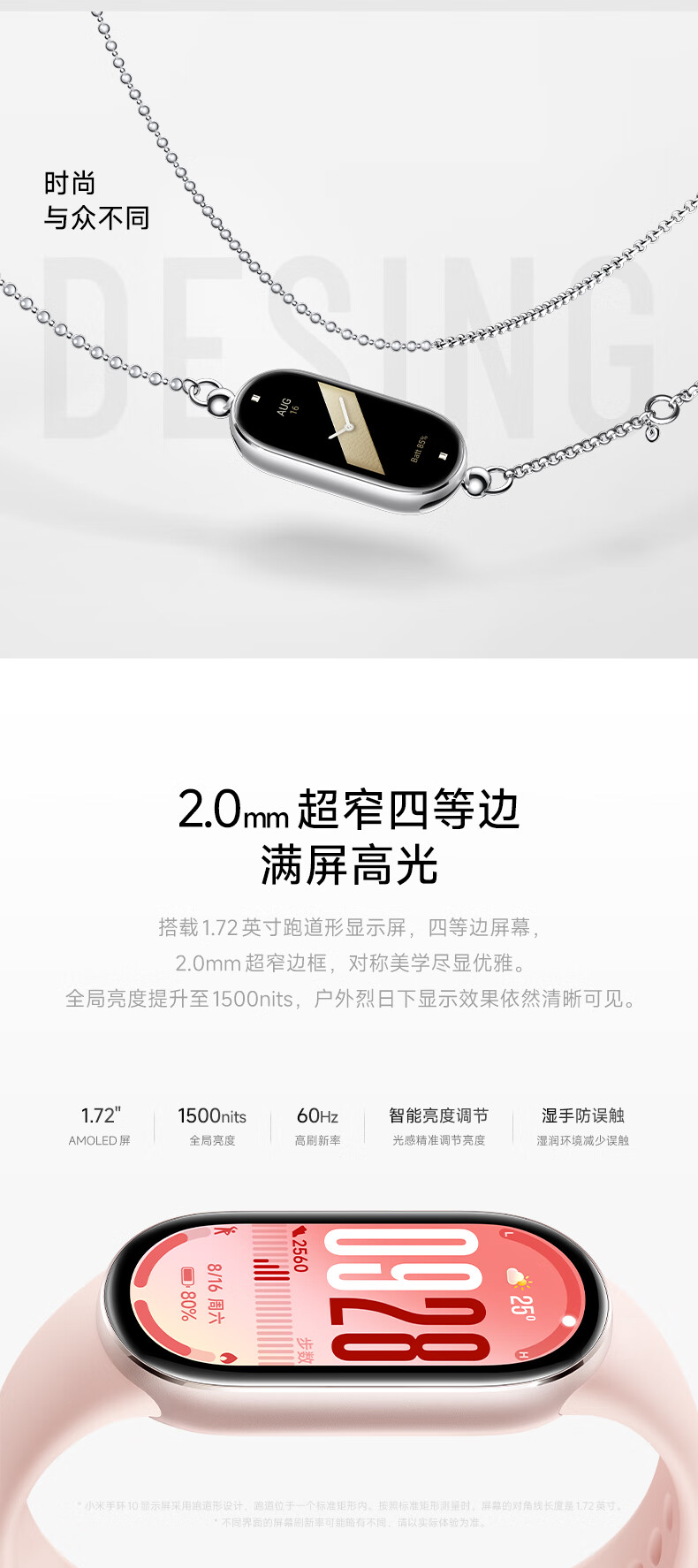 小米手环10/10NFC版 专业运动健康 智能手环 监测睡眠管理 心率血氧长续航运动 5ATM防水 男女运动手环 标准版 银色【送高清膜*2】