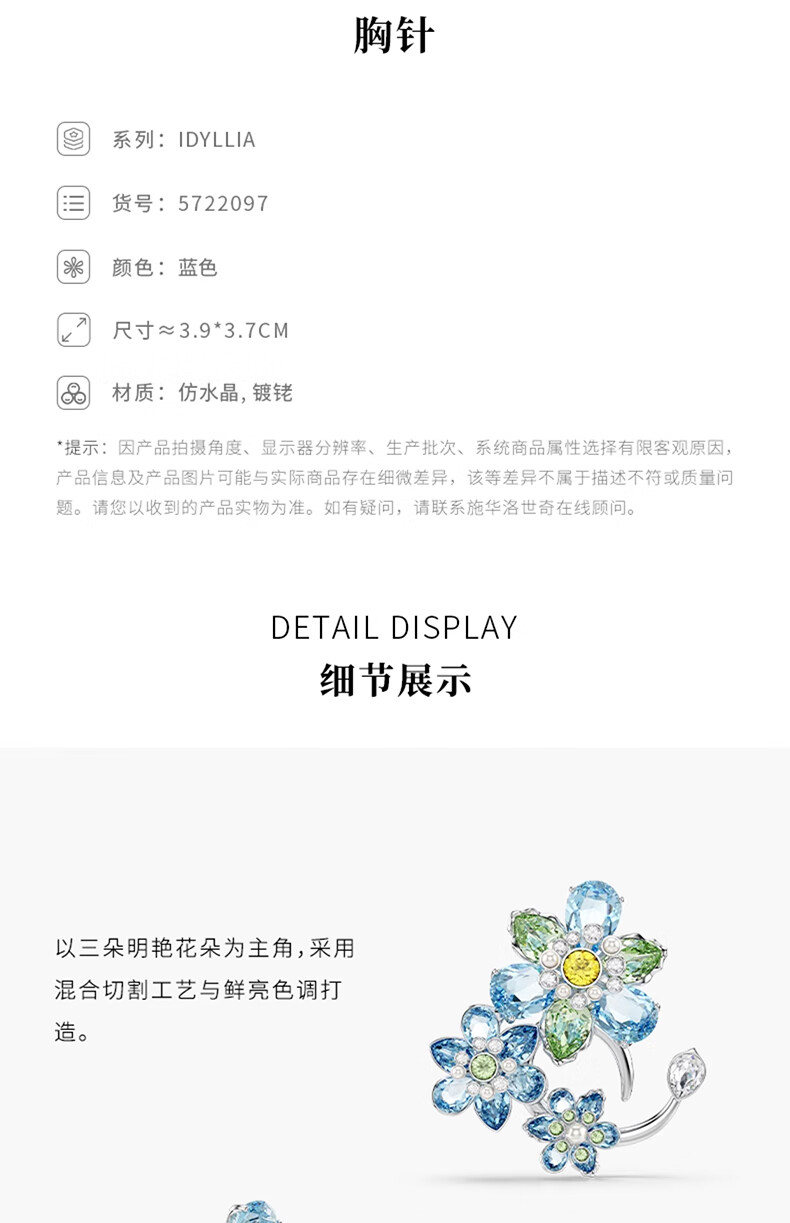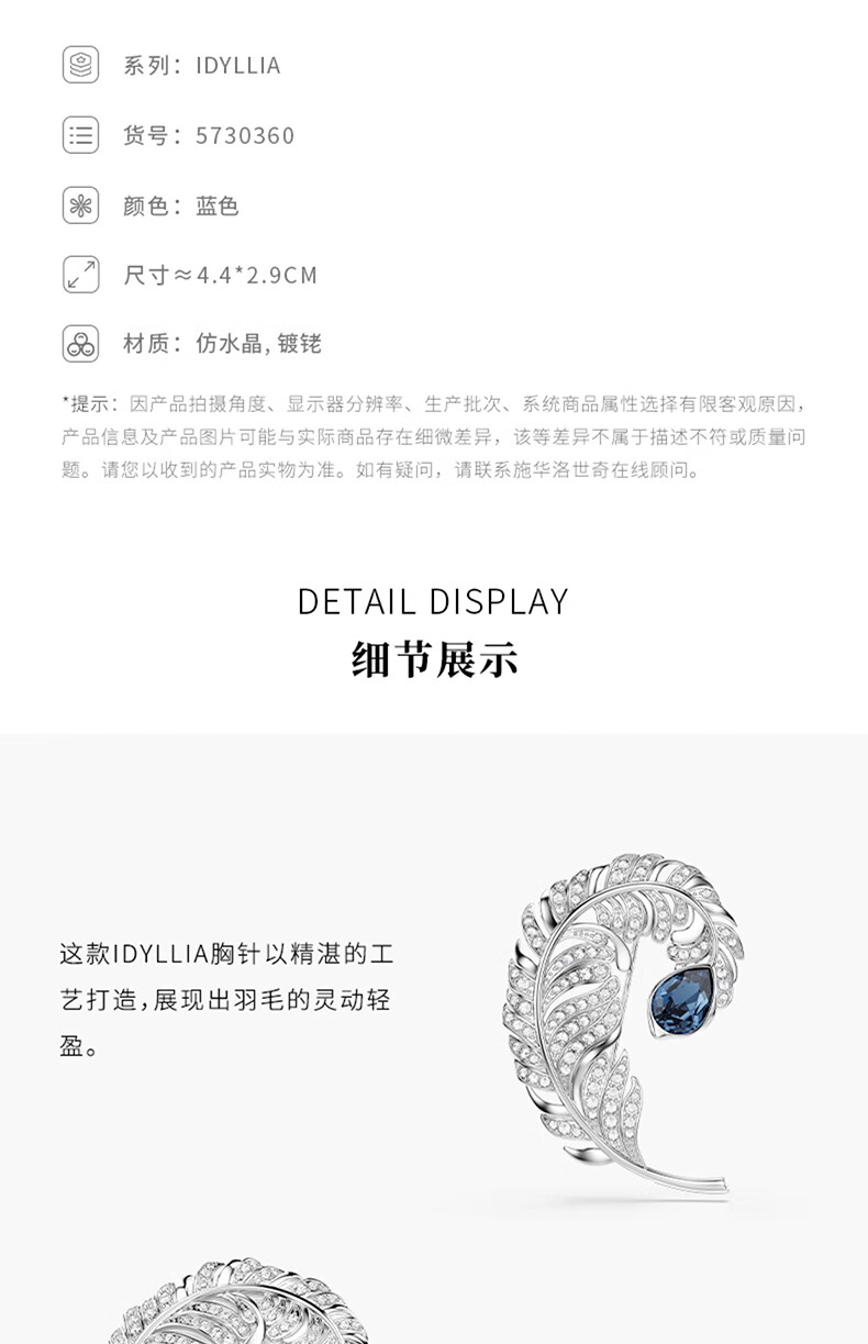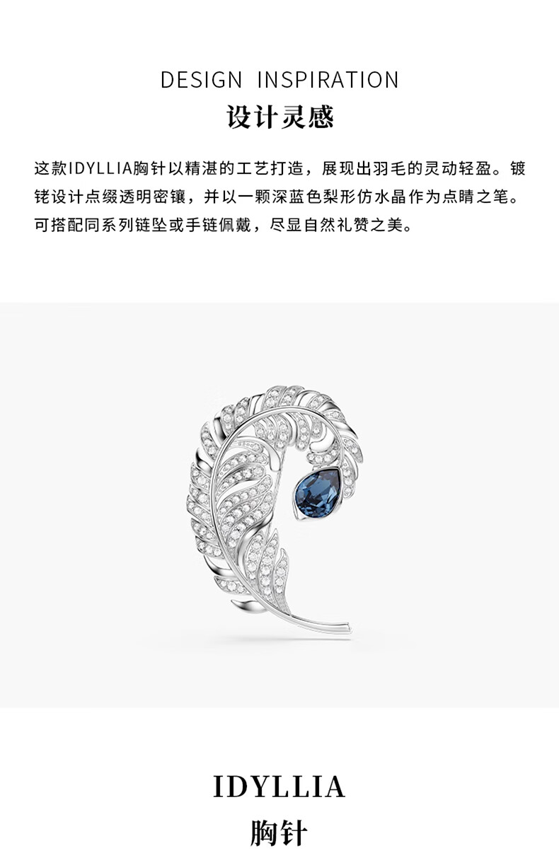 施华洛世奇(SWAROVSKI)IDYLLIA优雅羽毛情侣男女同款胸针饰品生日礼物女女5730360