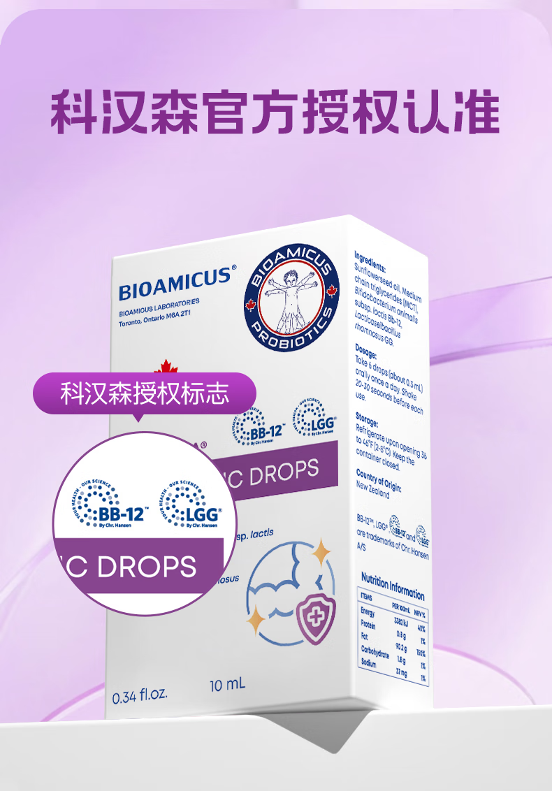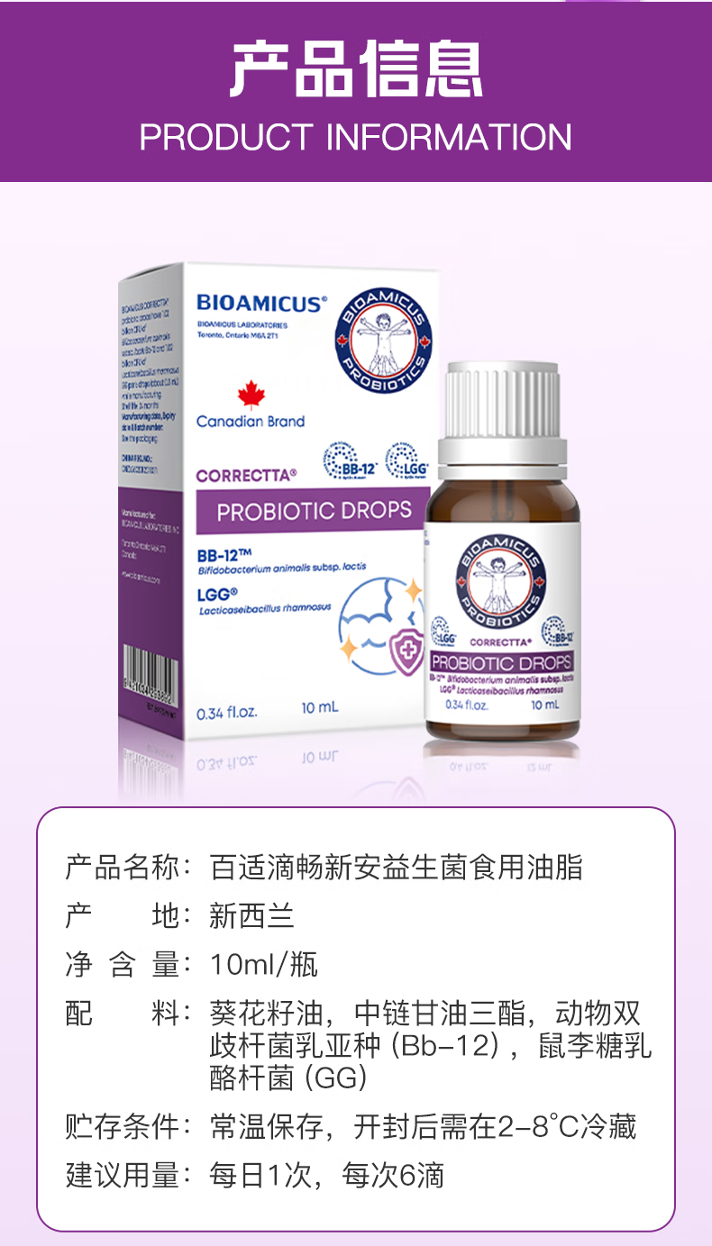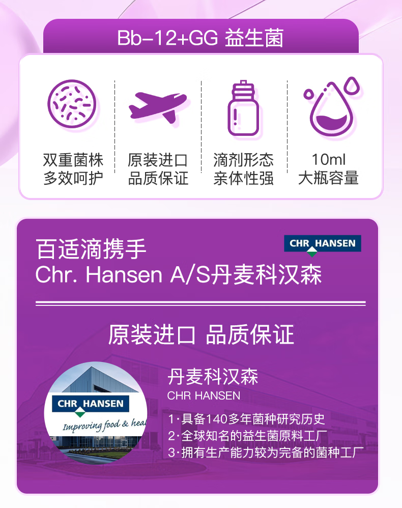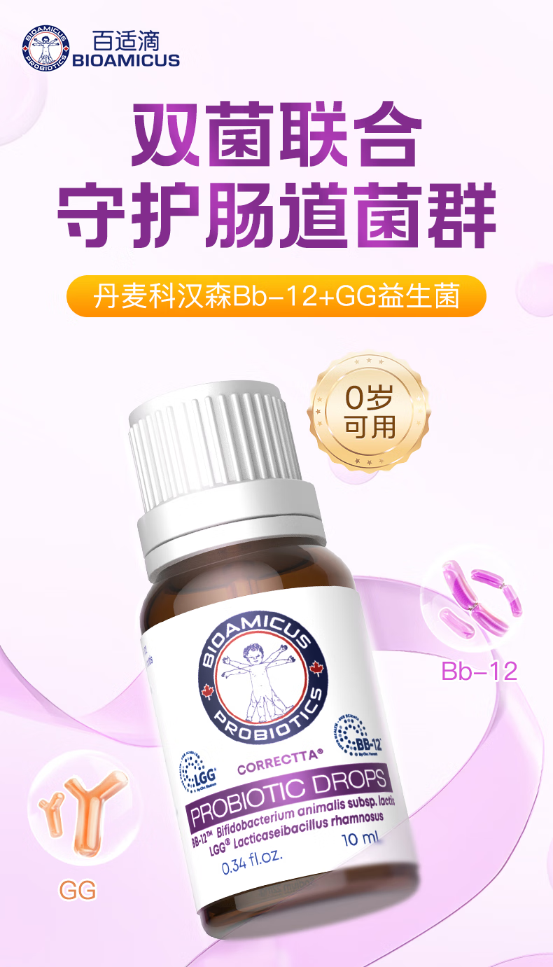 百适滴科汉森益生菌滴剂婴幼儿新生儿动物双歧杆菌Bb12+GG鼠李糖10ML