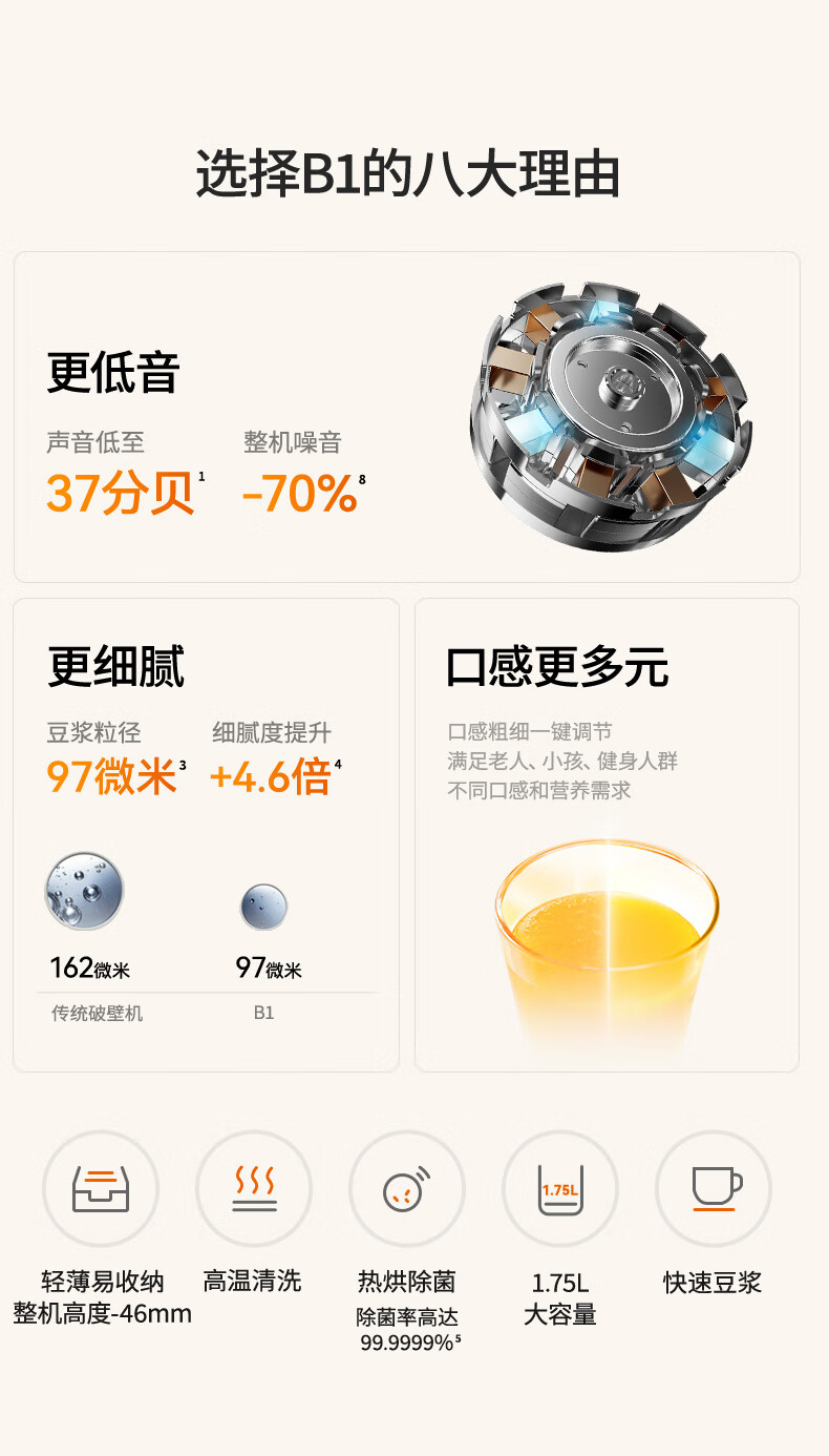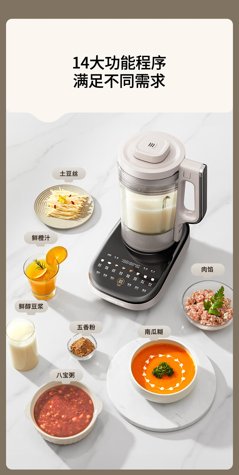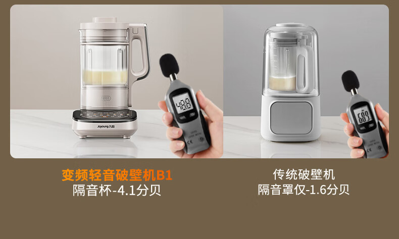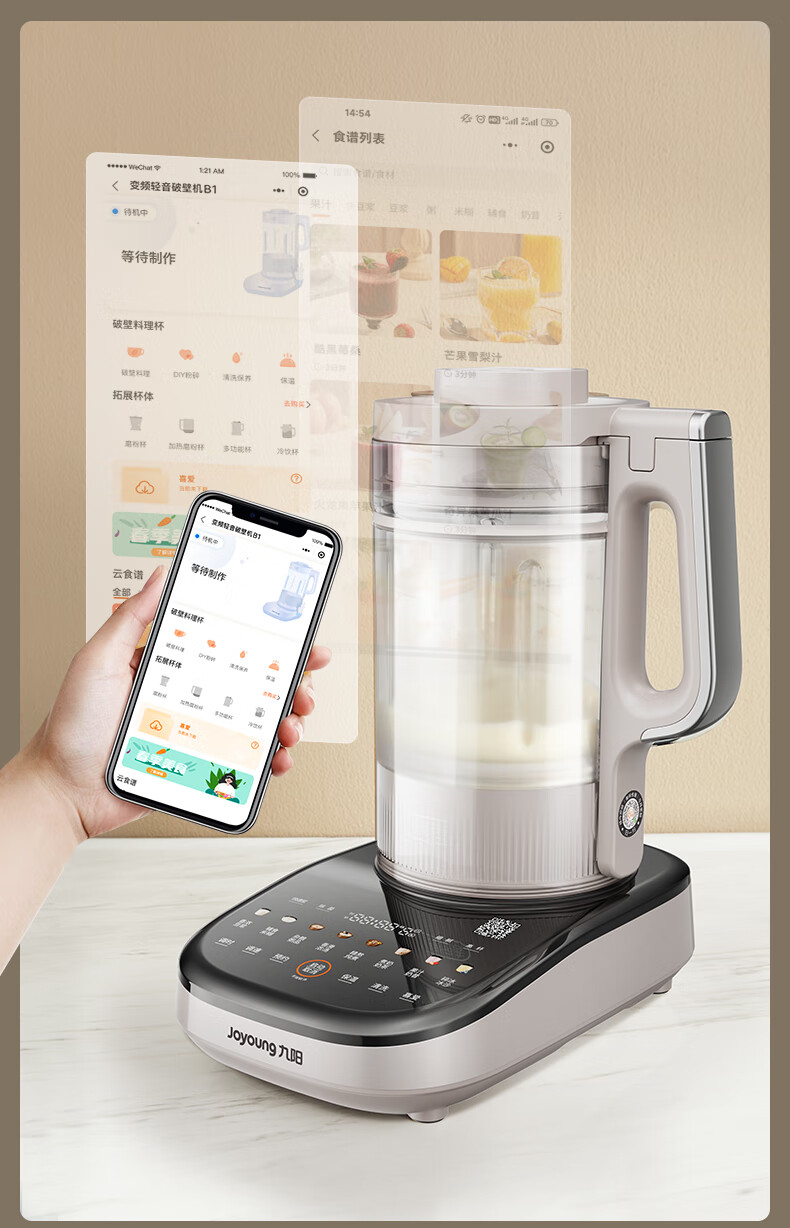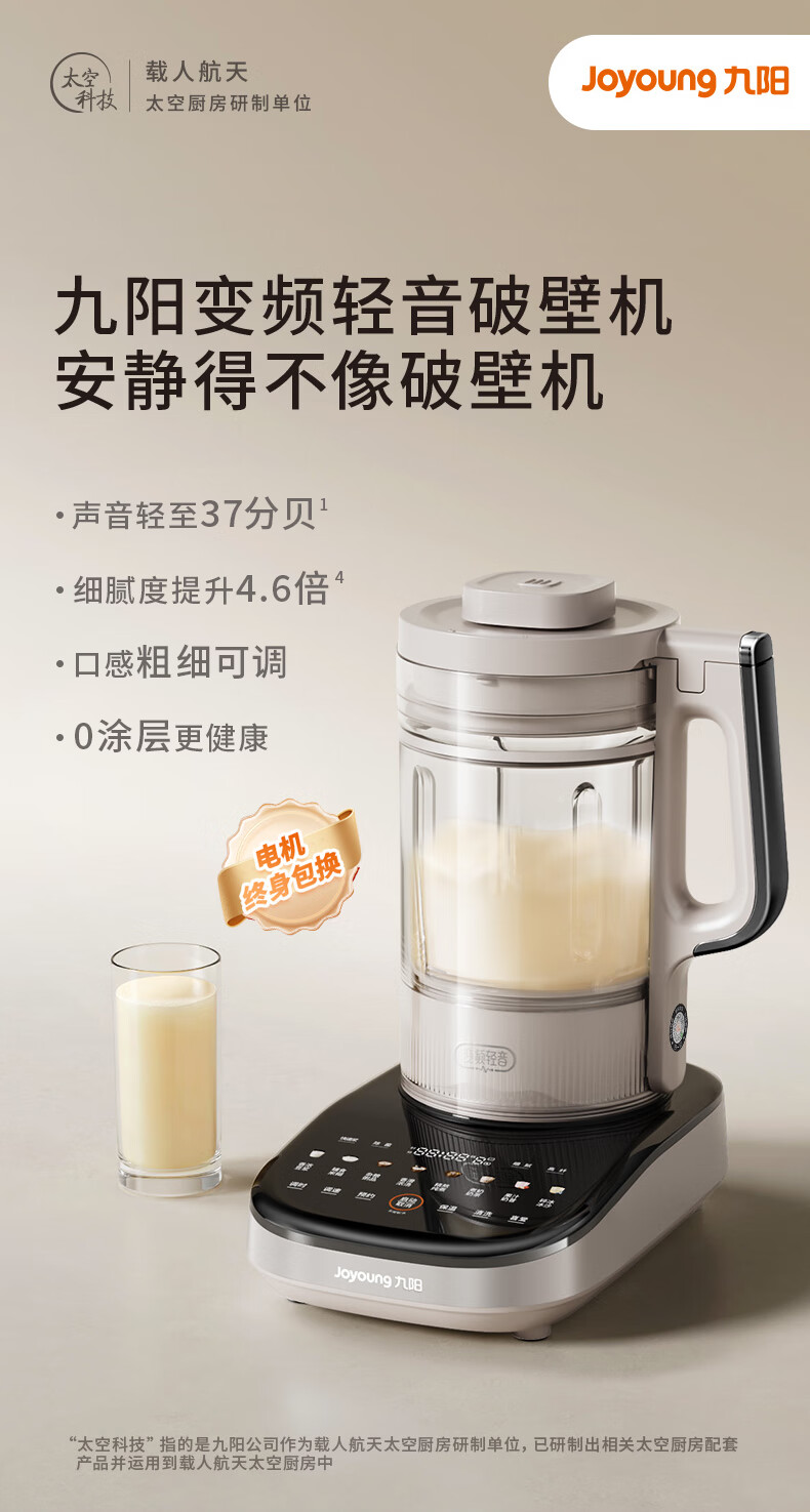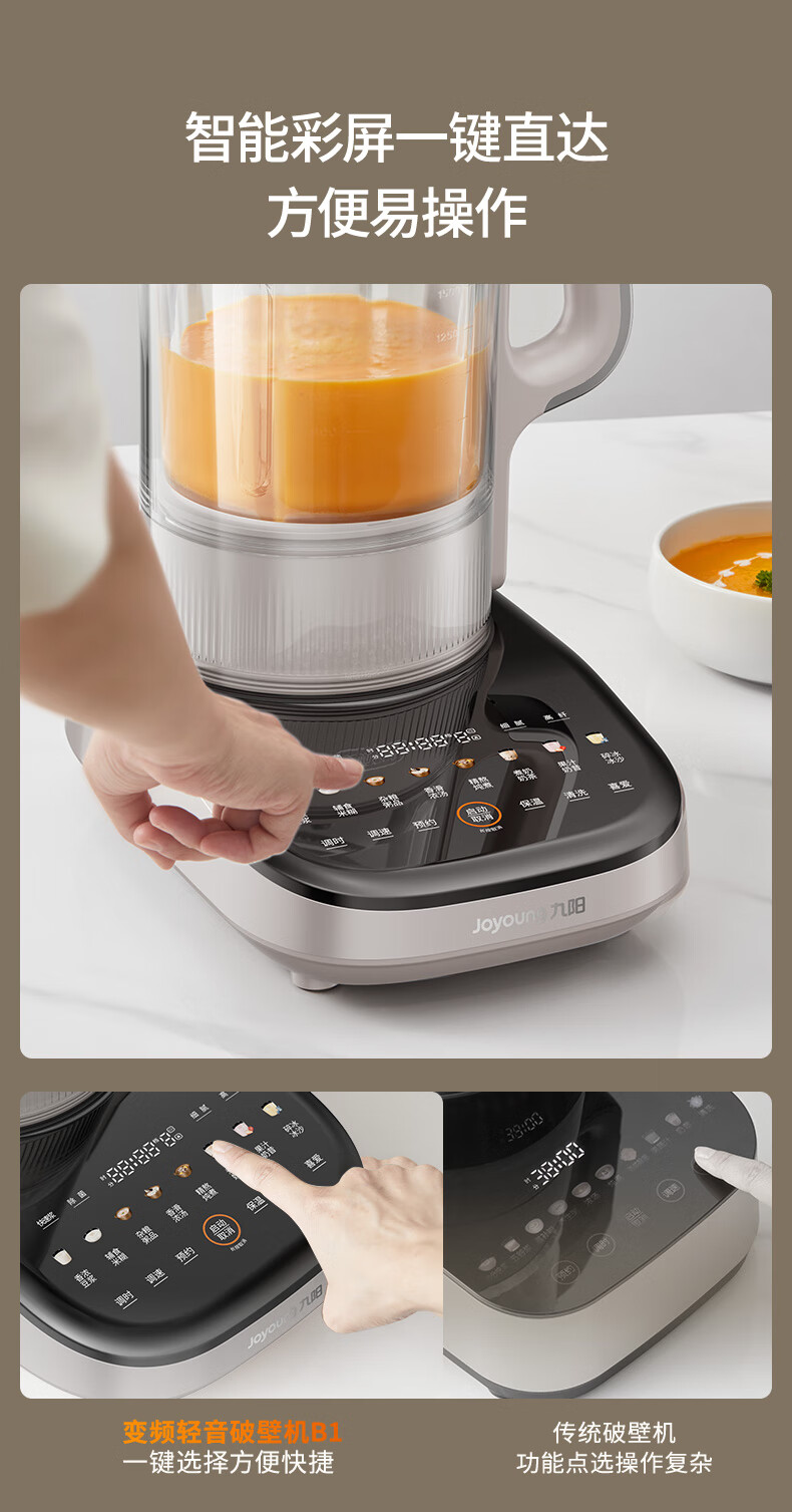 九阳(Joyoung)变频轻音破壁机家用全自动豆浆机榨汁机料理机1.75L大容量 降噪触控彩屏口感可调 B1 国家补贴 【变频轻音低至37分贝】