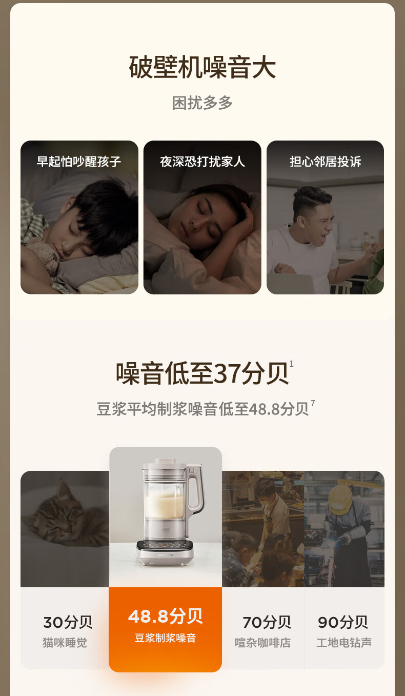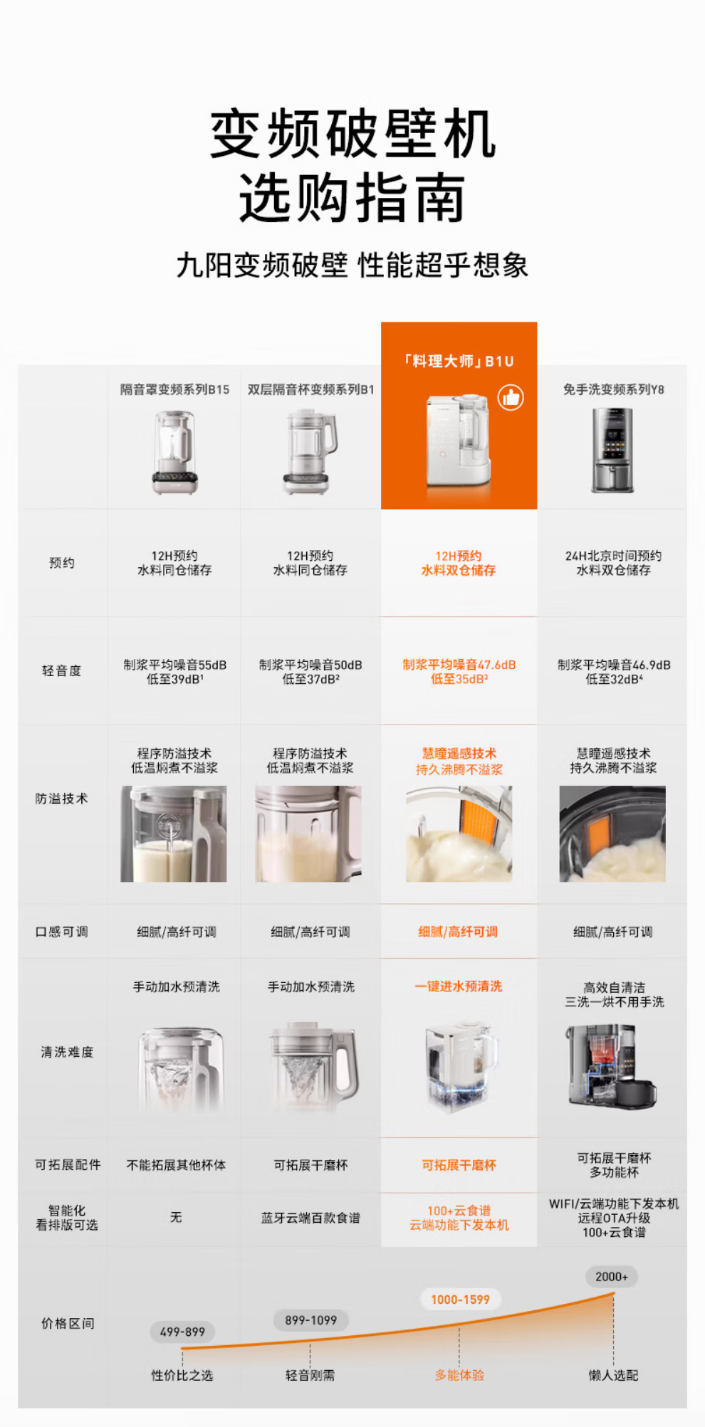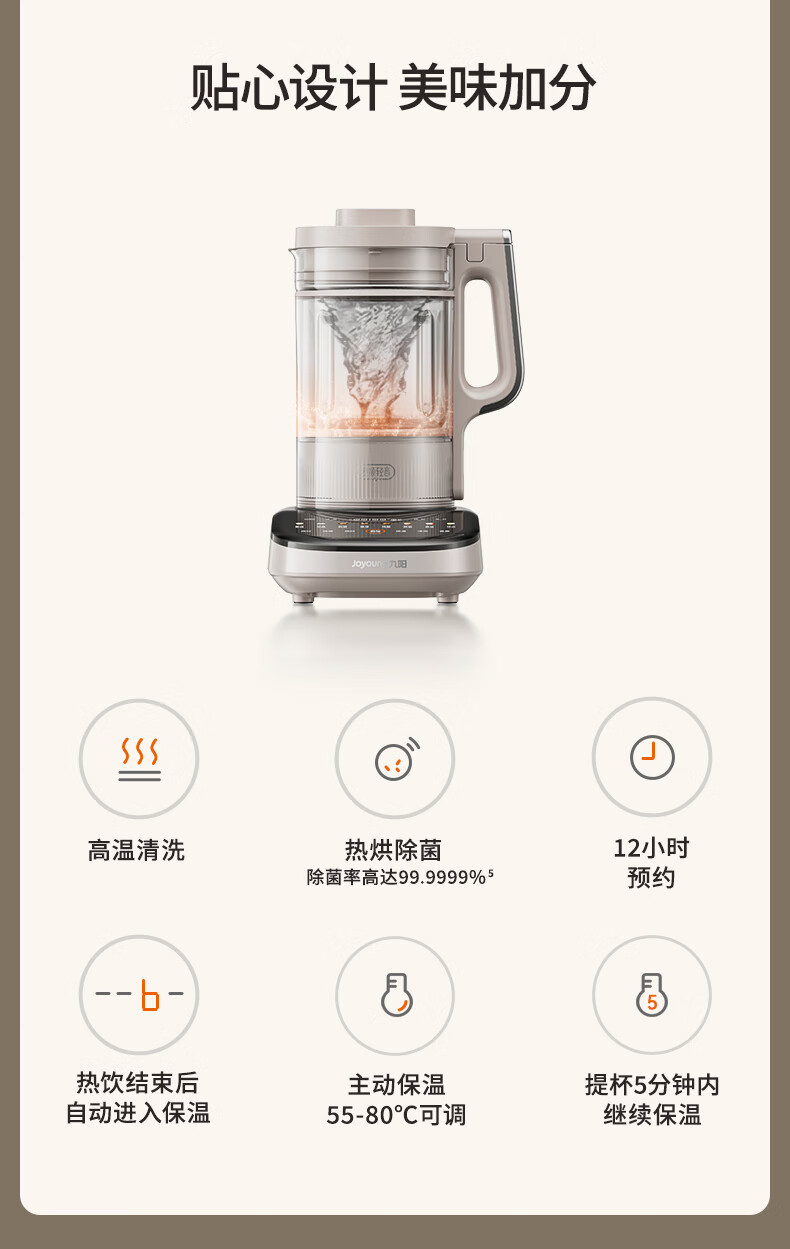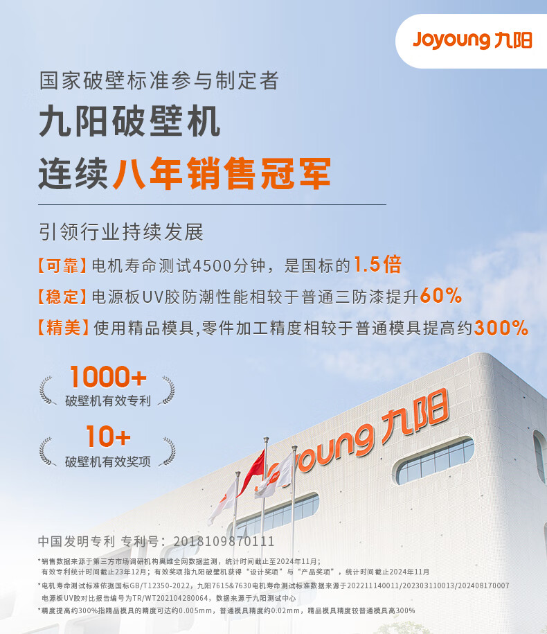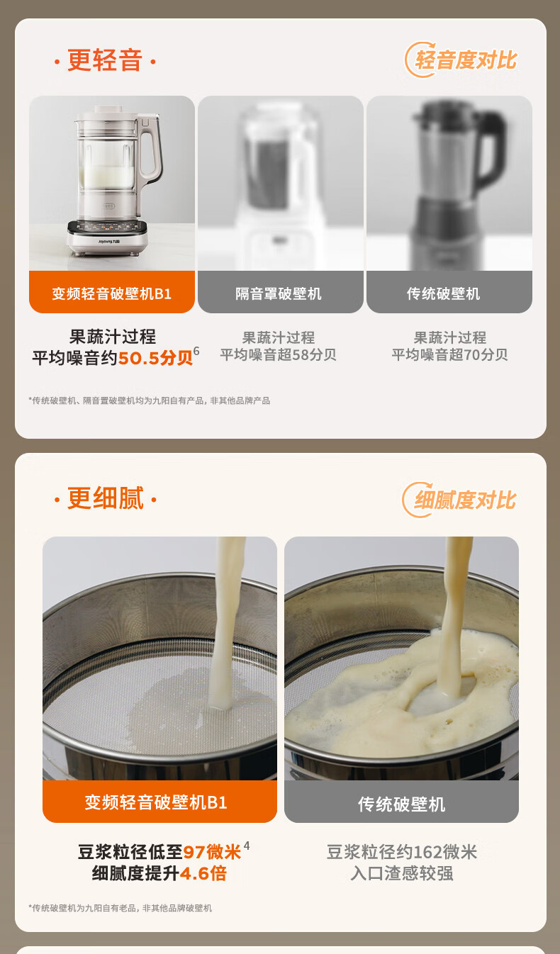 九阳(Joyoung)变频轻音破壁机家用全自动豆浆机榨汁机料理机1.75L大容量 降噪触控彩屏口感可调 B1 国家补贴 【变频轻音低至37分贝】
