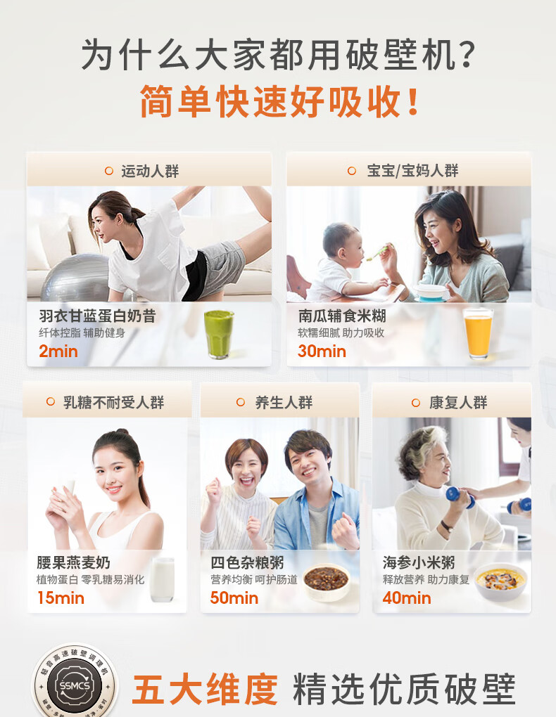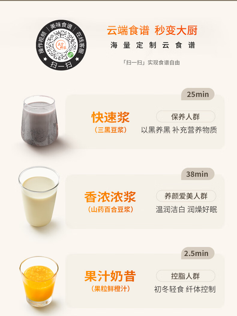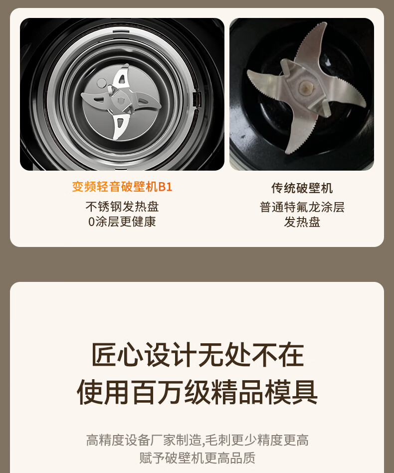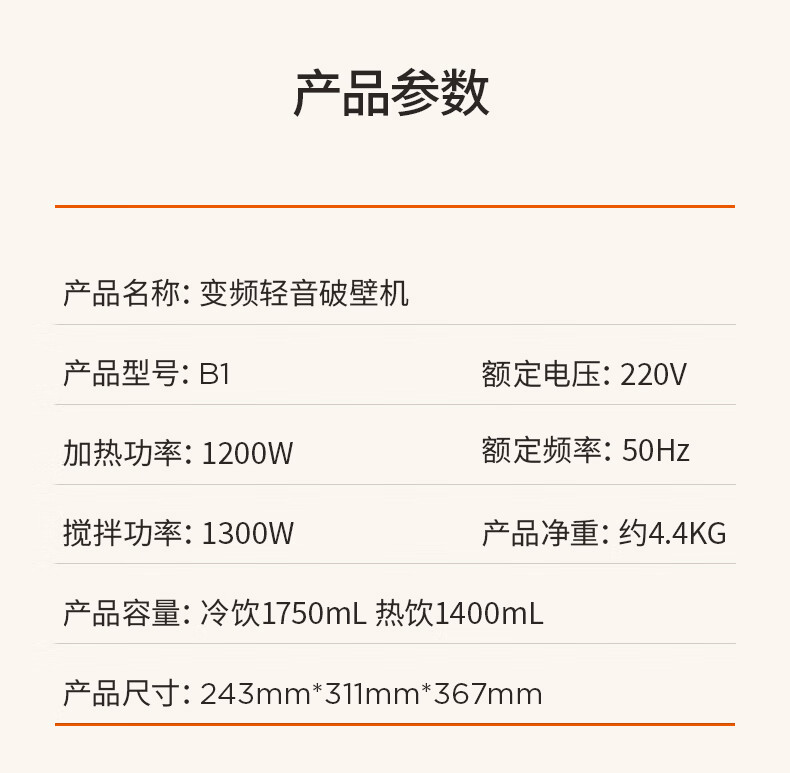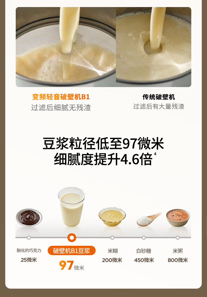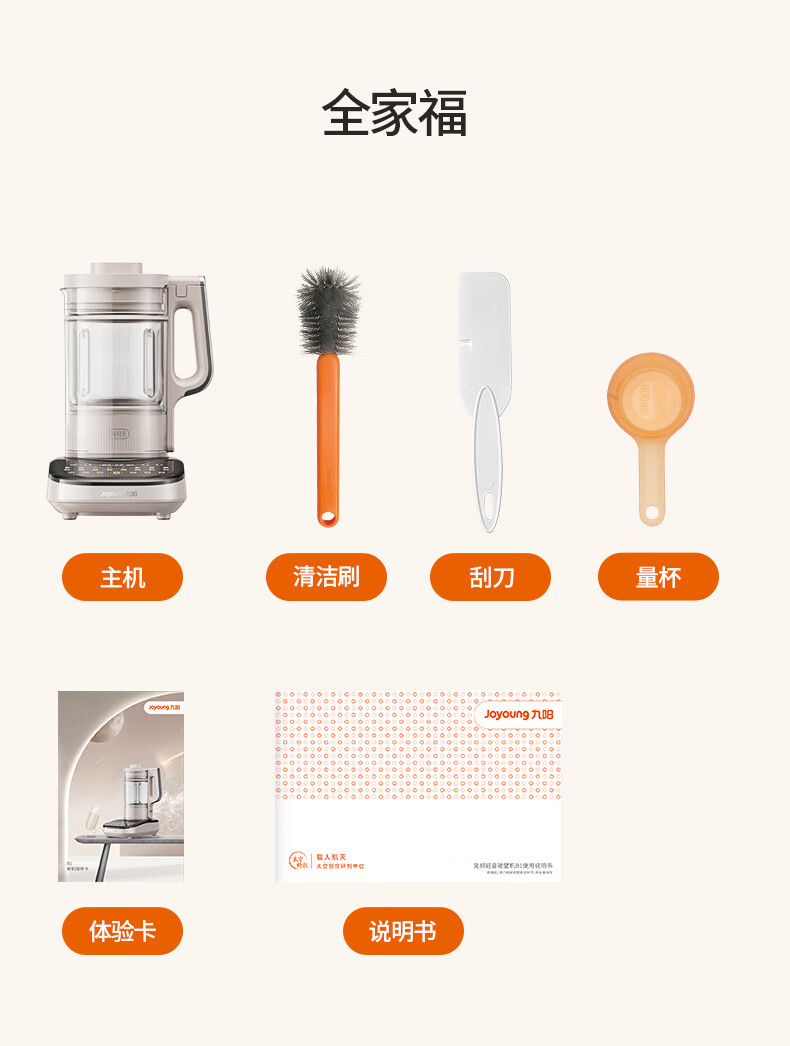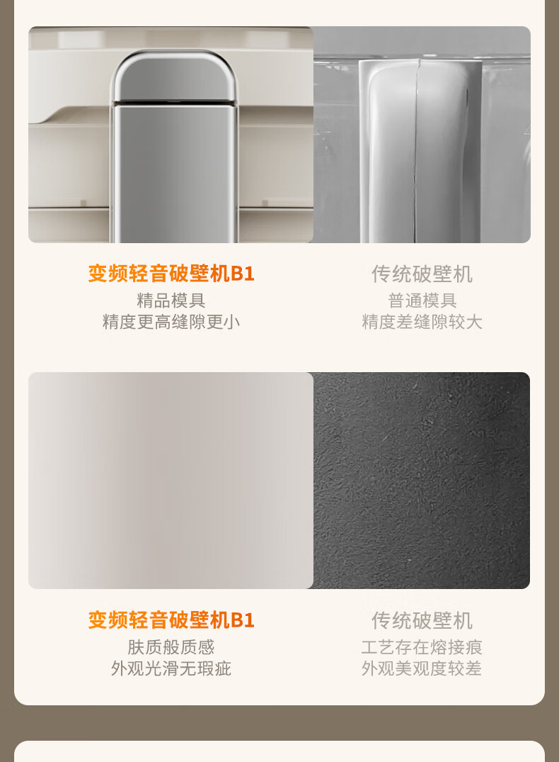 九阳(Joyoung)变频轻音破壁机家用全自动豆浆机榨汁机料理机1.75L大容量 降噪触控彩屏口感可调 B1 国家补贴 【变频轻音低至37分贝】