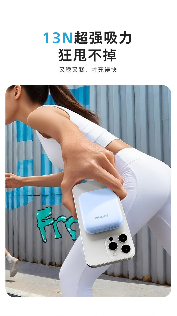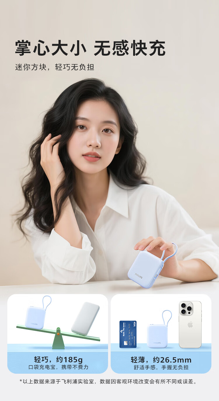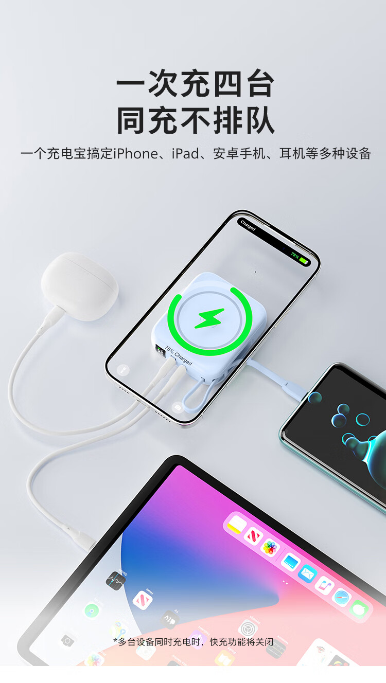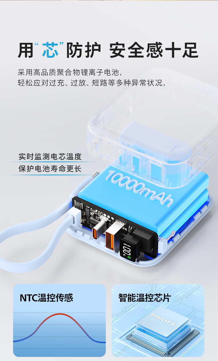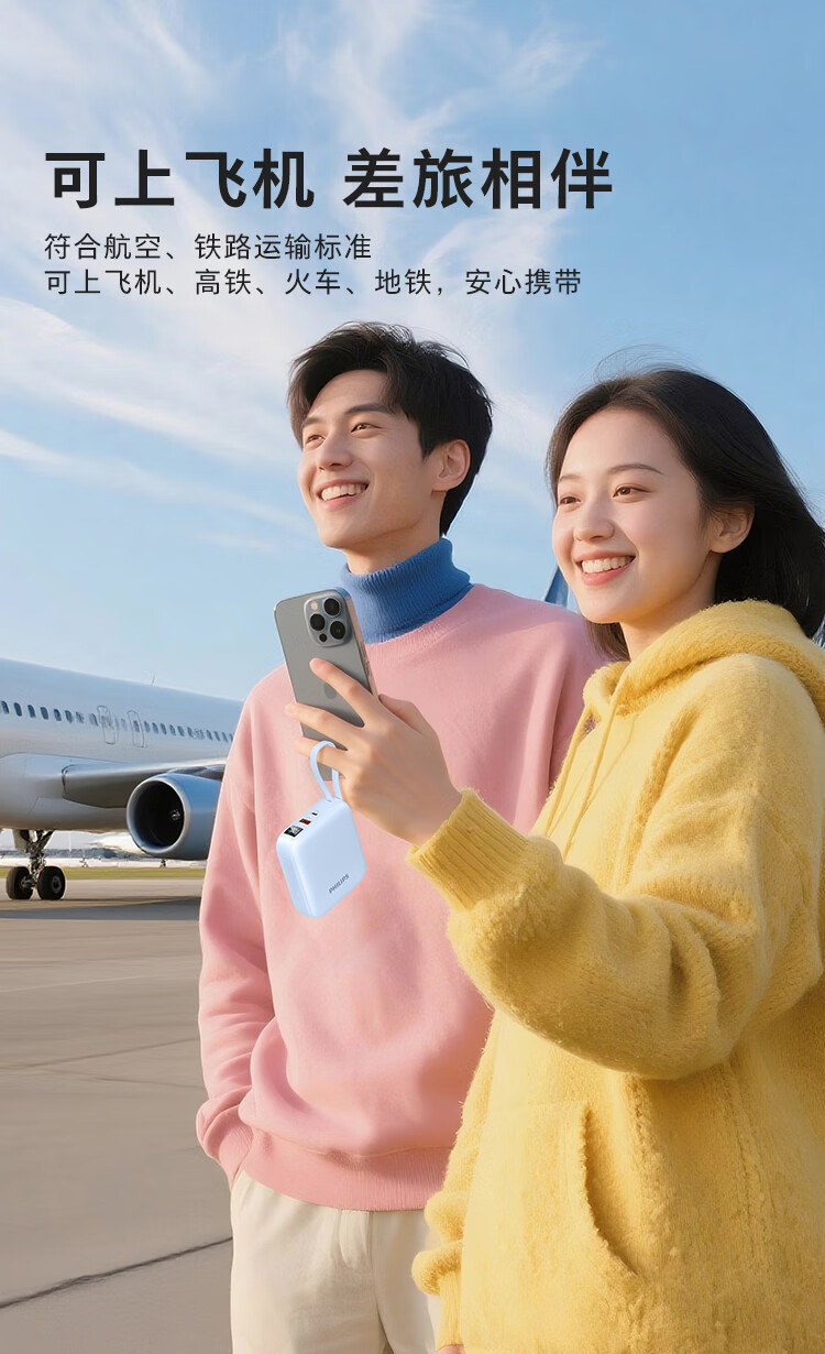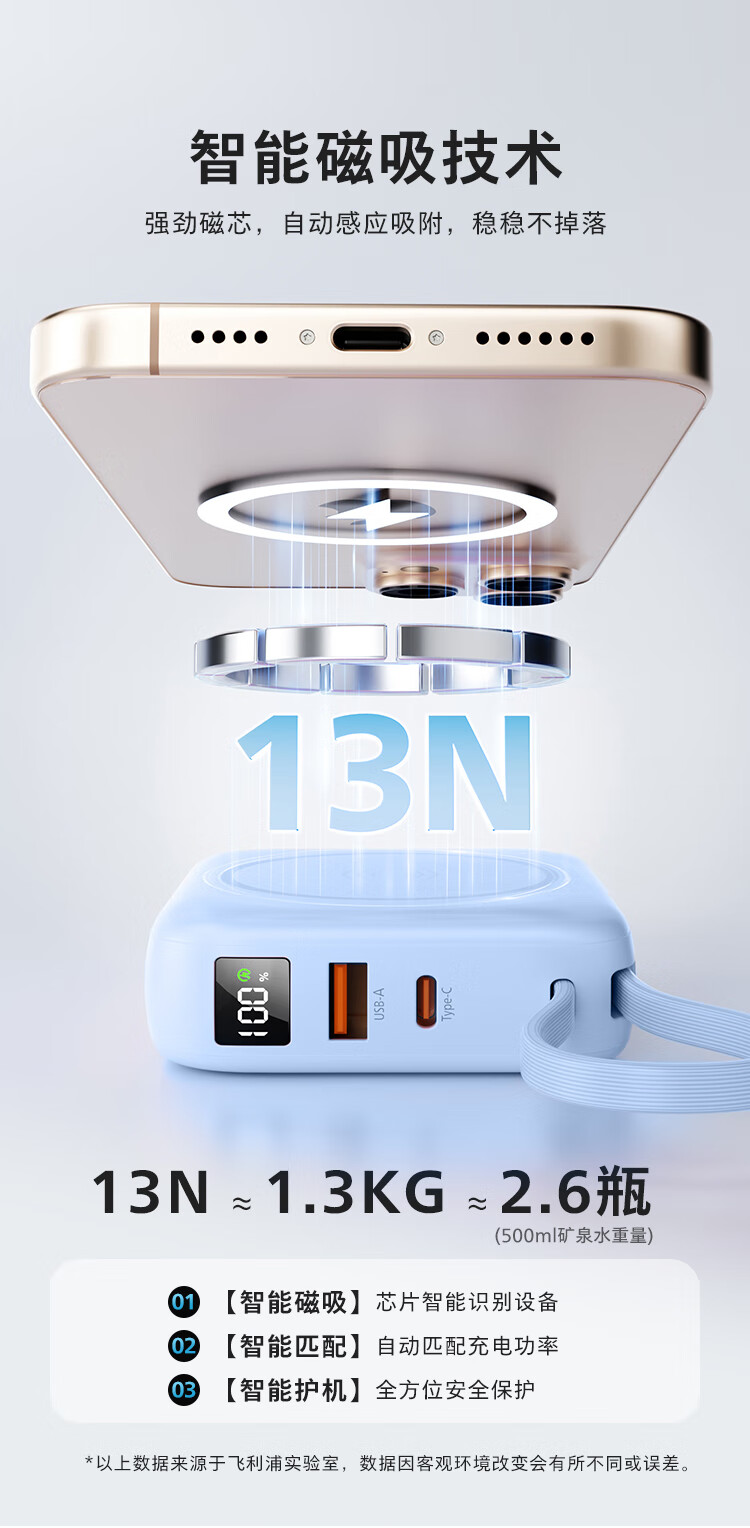 飞利浦【国标3C认证可上飞机】充电宝磁吸自带线快充10000mAh迷你小巧便携移动电源适用苹果15 16 17华为