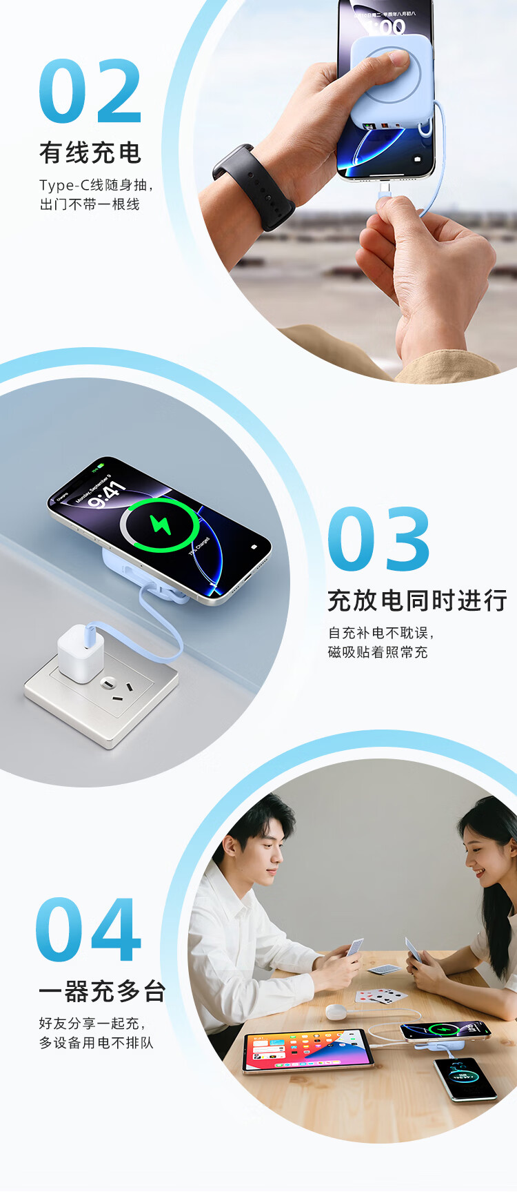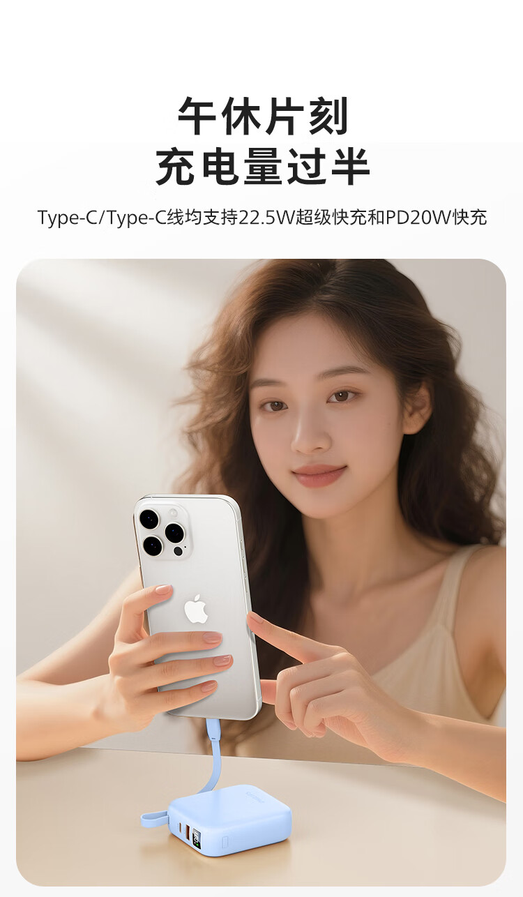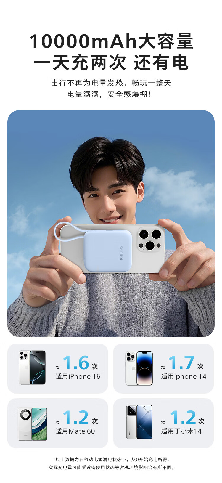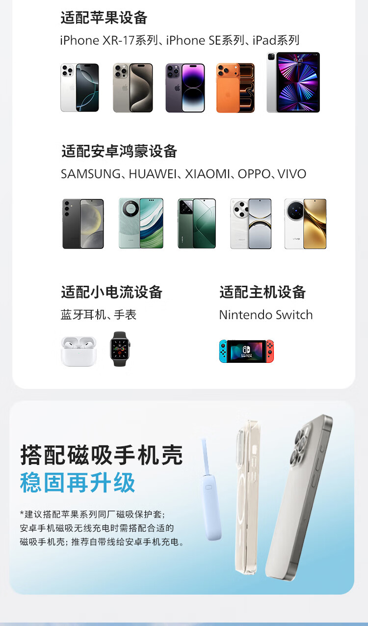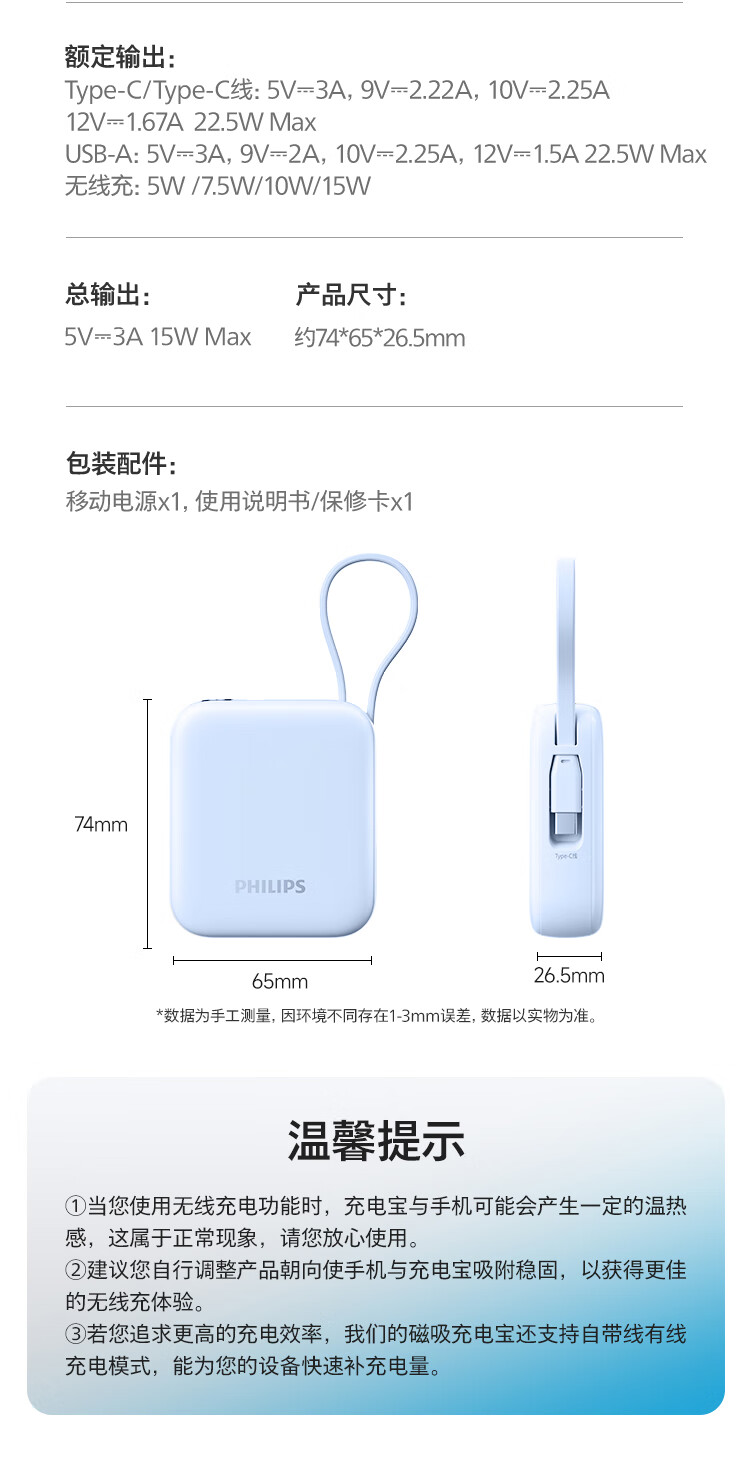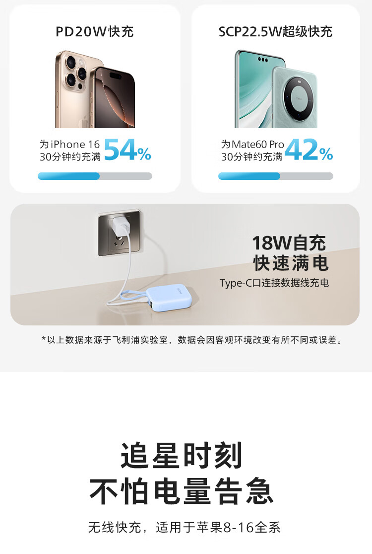 飞利浦【国标3C认证可上飞机】充电宝磁吸自带线快充10000mAh迷你小巧便携移动电源适用苹果15 16 17华为