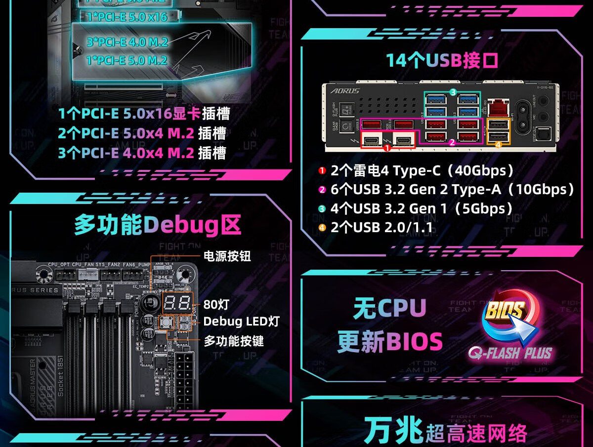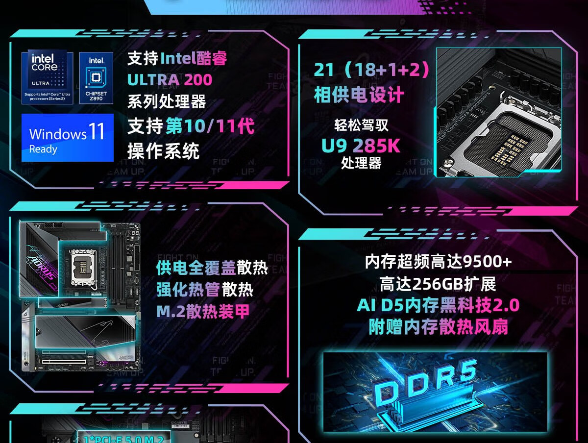 技嘉(GIGABYTE)超级雕Z890 AORUS MASTER DDR5主板 支持CPU Ultra U9-285K U7-265K LGA 1851