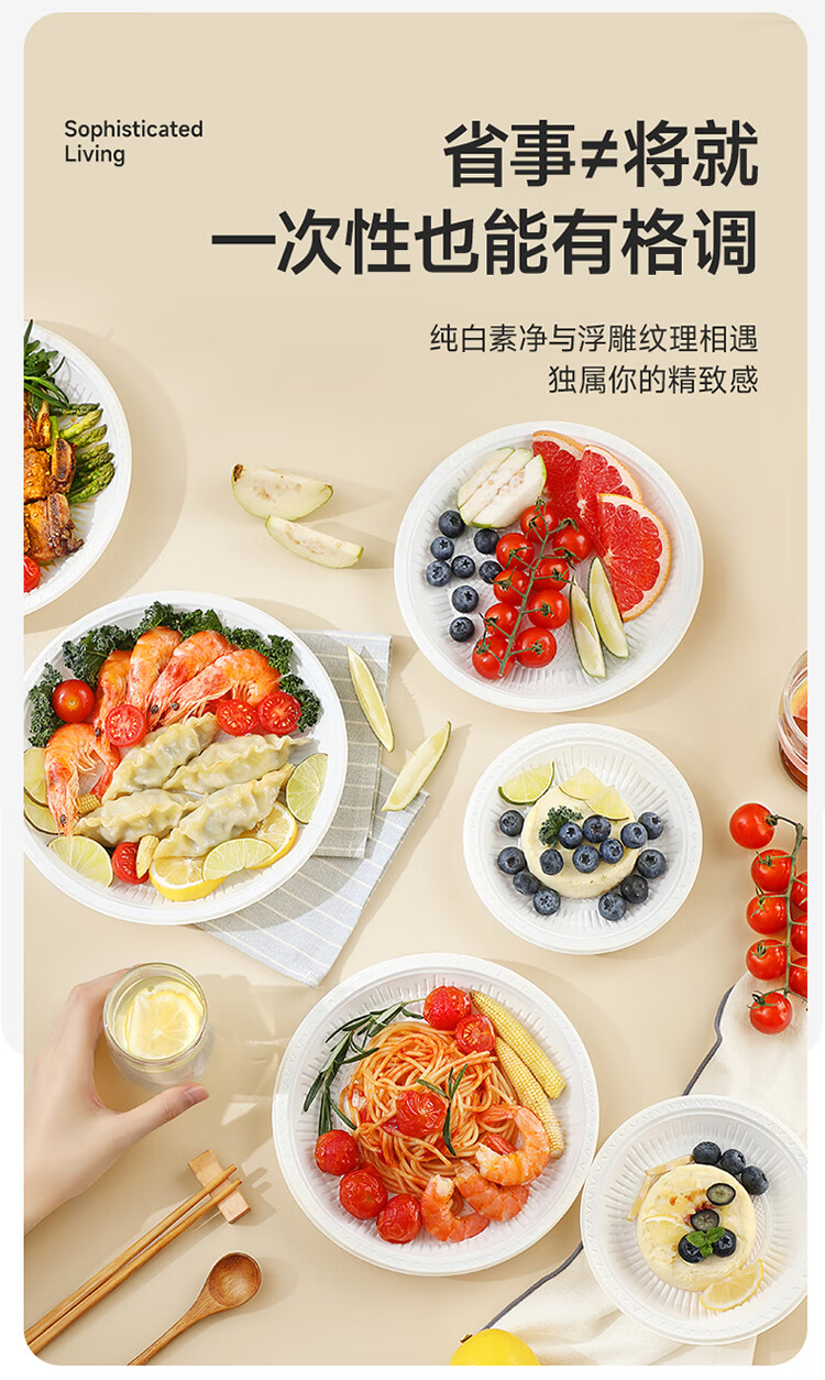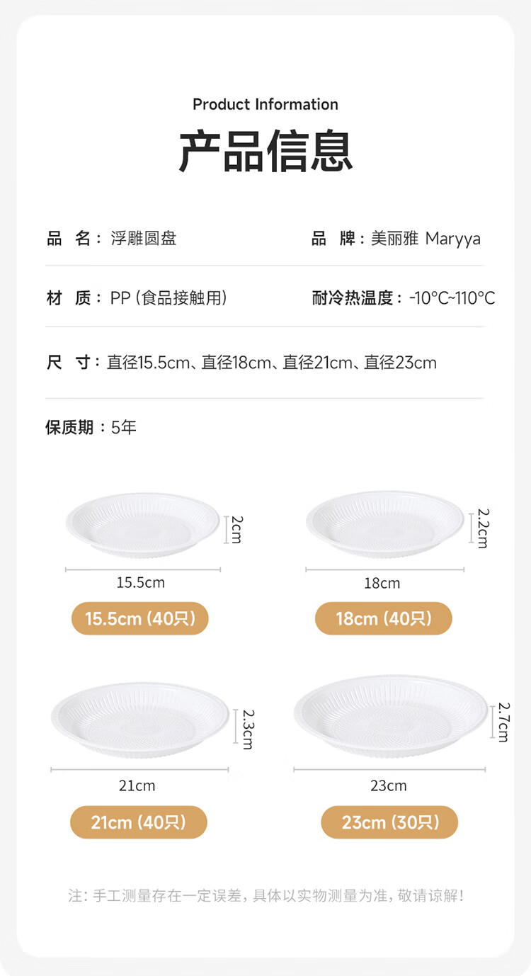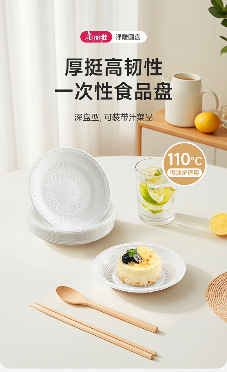美丽雅一次性餐盘盘子 食品级碟子露营野餐水果盘蛋糕盘烧烤盘碟餐具 18cm*40只【浮雕圆盘】