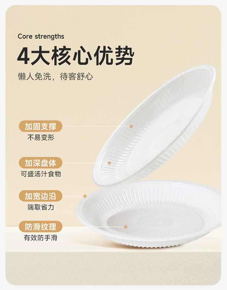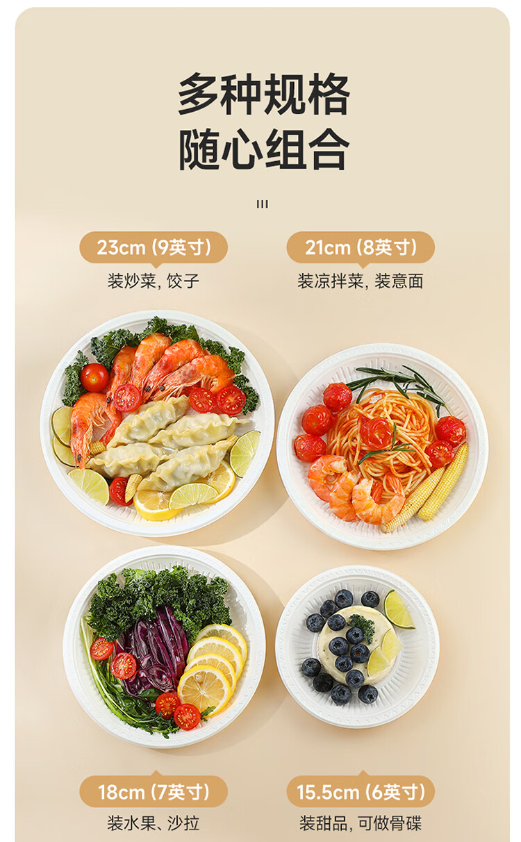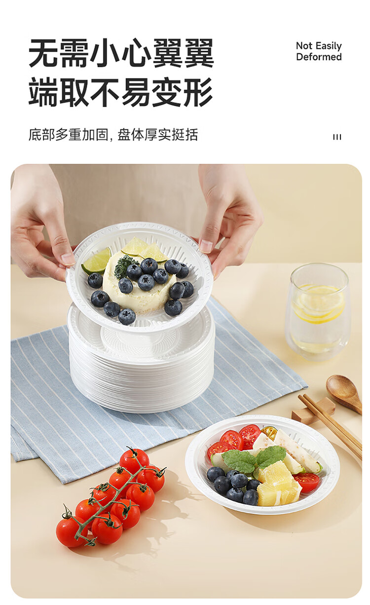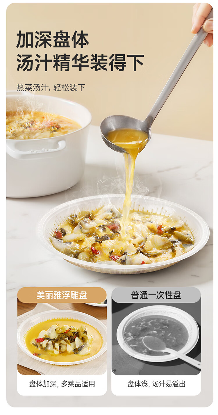 美丽雅一次性餐盘盘子 食品级碟子露营野餐水果盘蛋糕盘烧烤盘碟餐具 18cm*40只【浮雕圆盘】