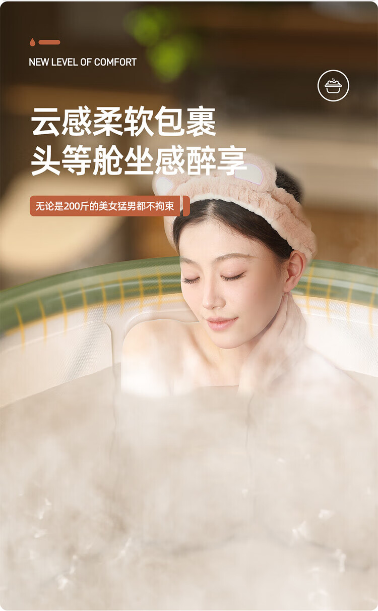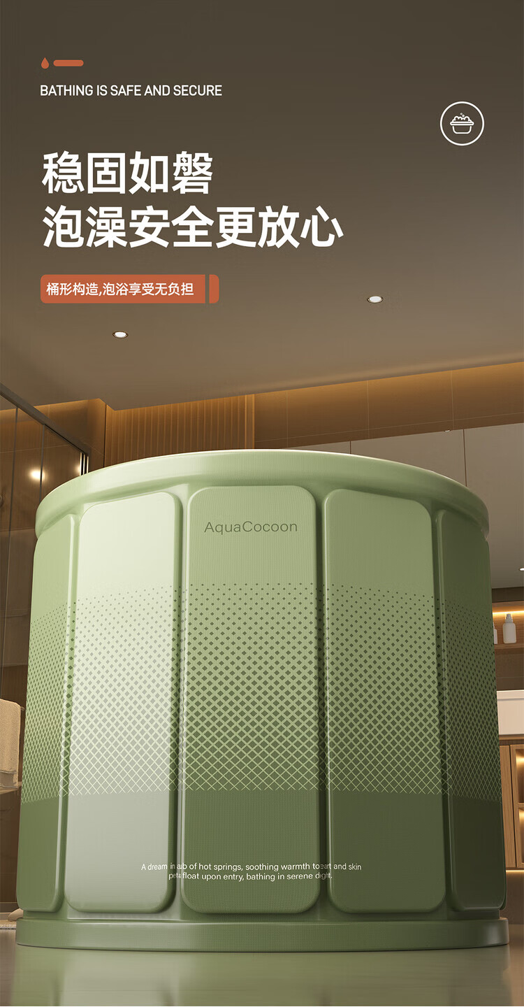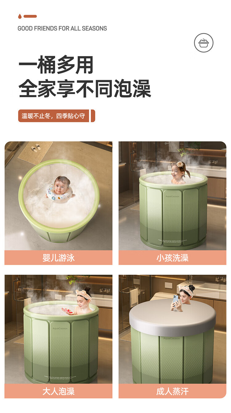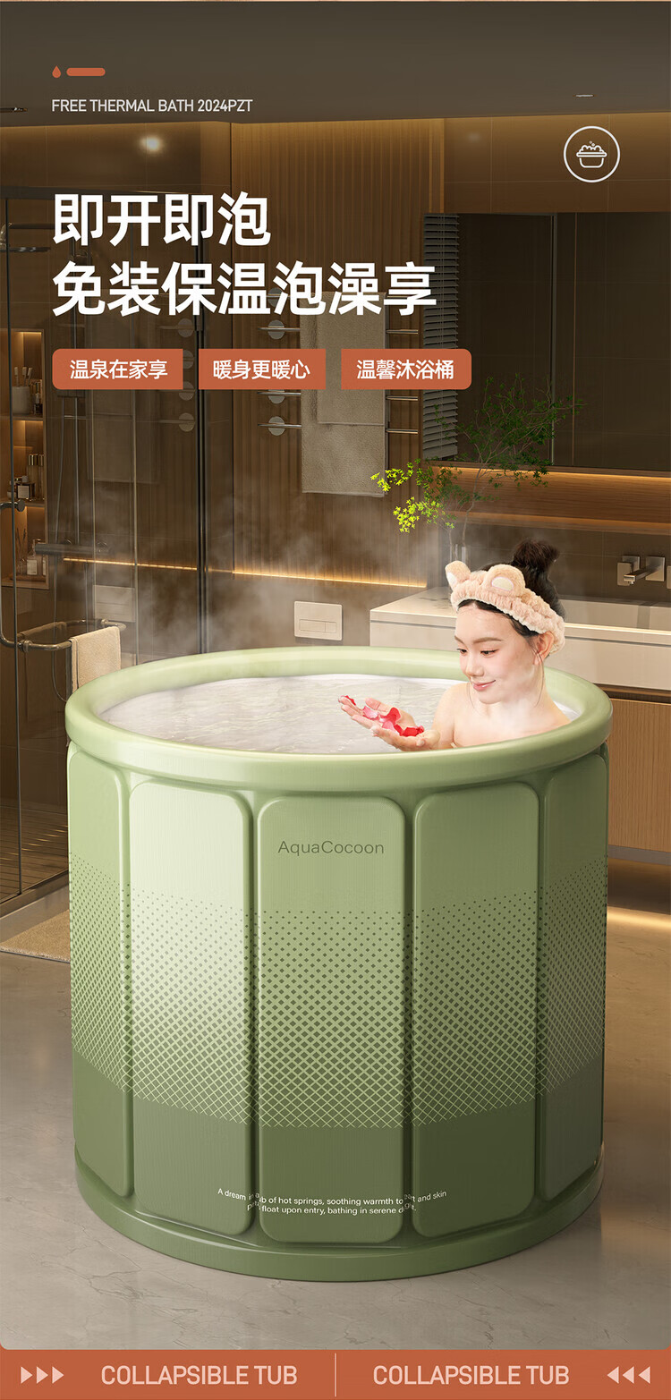 户璃德国泡澡桶折叠浴缸大人浴桶家用全身洗澡桶儿童洗澡盆沐浴桶成人 07#渐变蓝升级款【免安装速开合智能锁温&夹棉加厚】