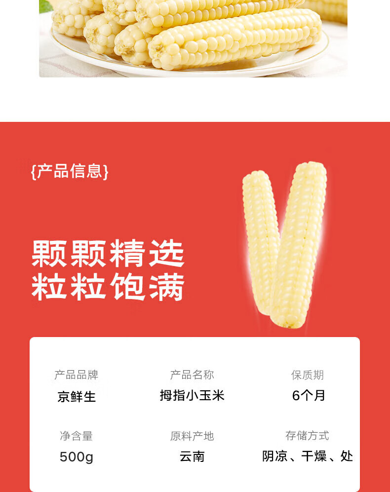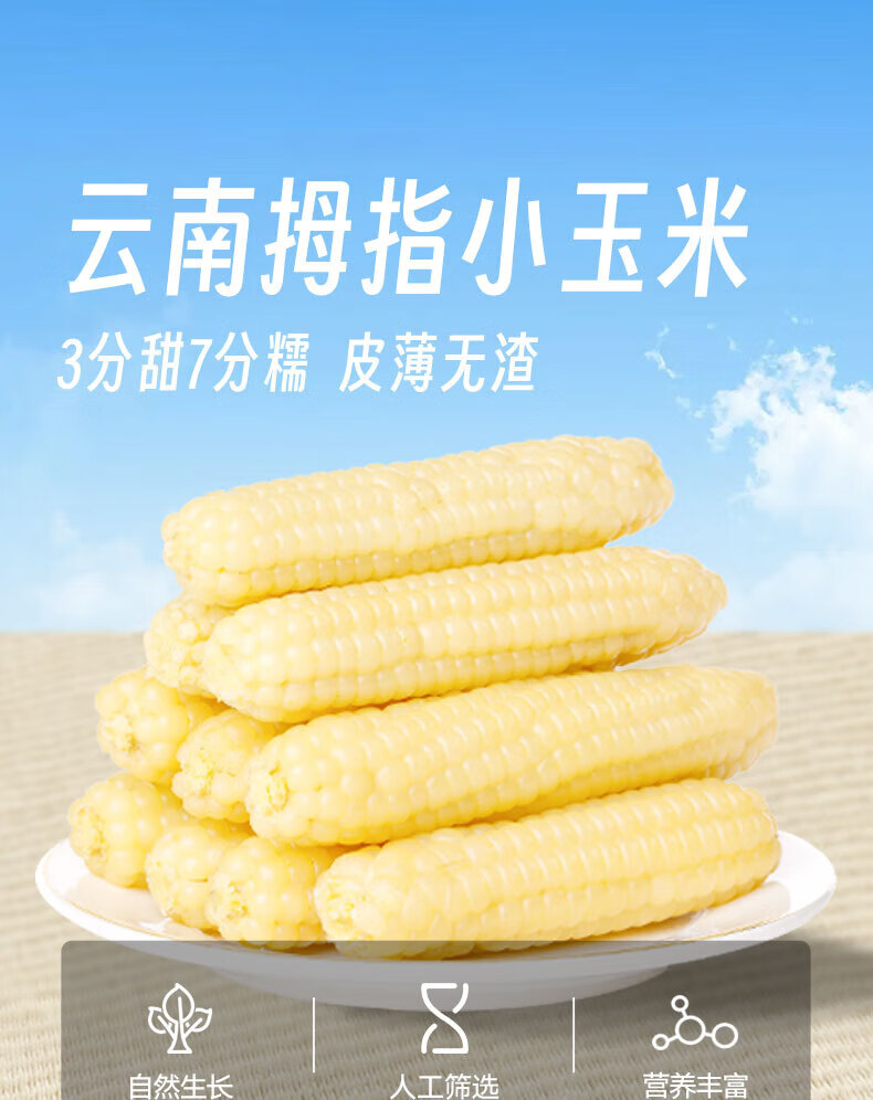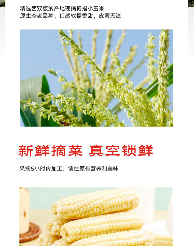 京鲜生 西双版纳拇指小玉米净重1斤装 老品种手指玉米 源头直发包邮