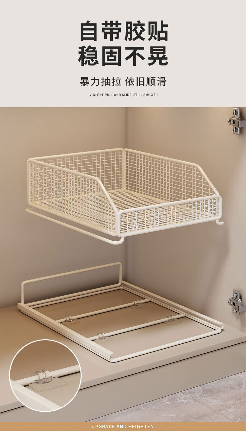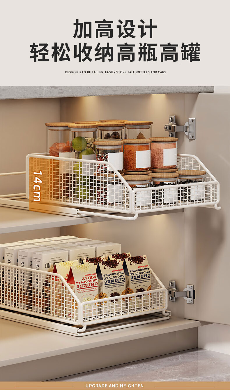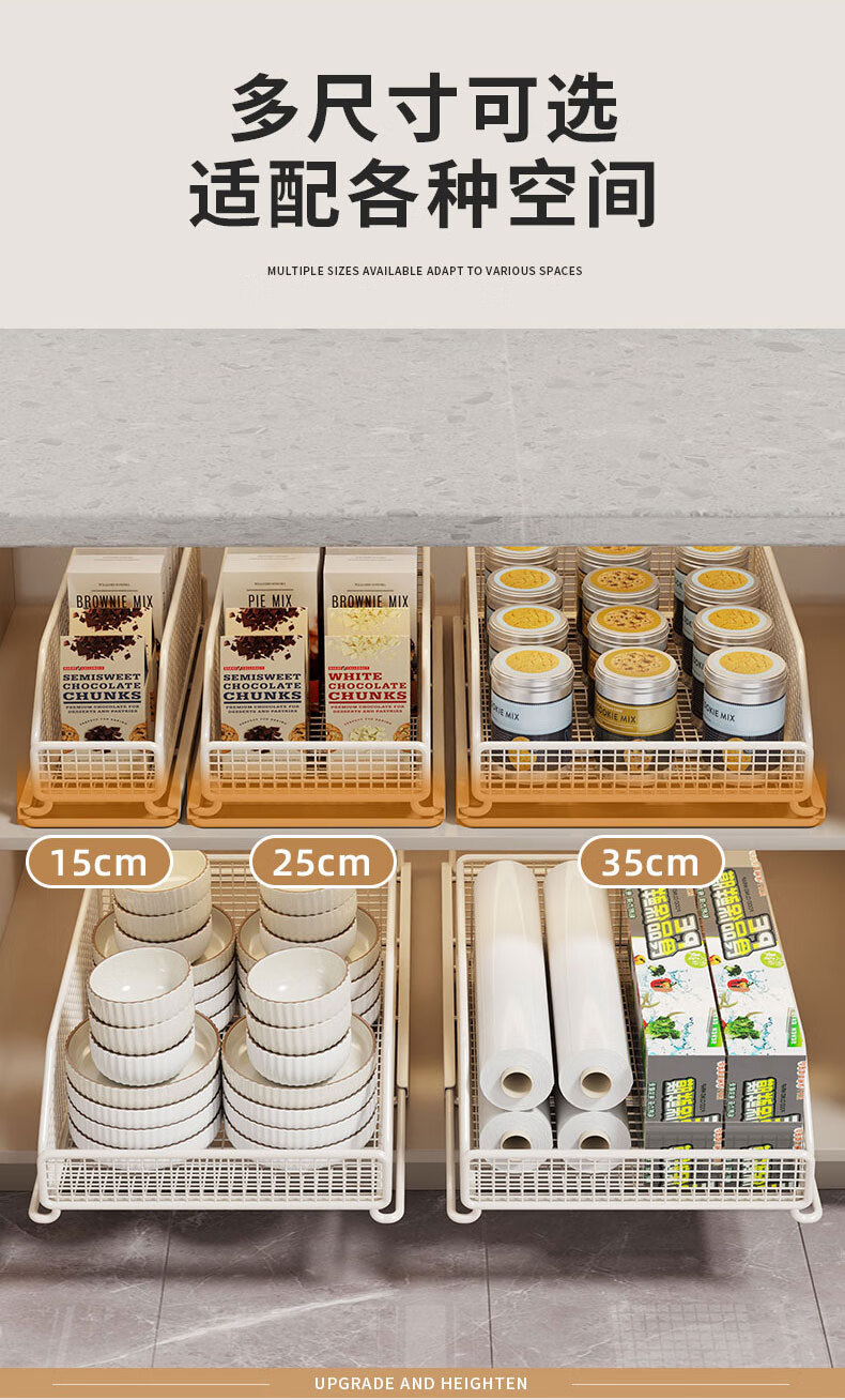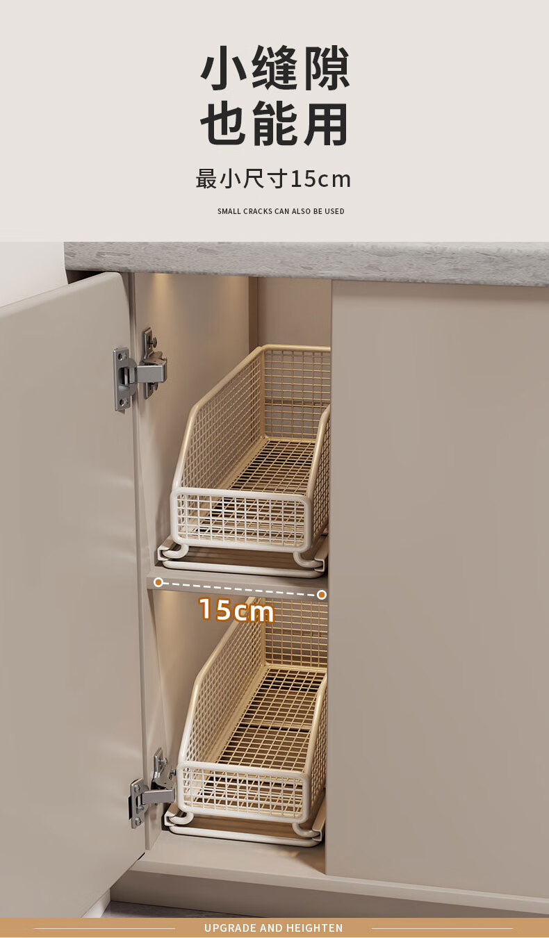 木格格厨房置物架橱柜拉篮柜内窄缝抽拉式夹缝调料架下水槽收纳架子神器 白色小号