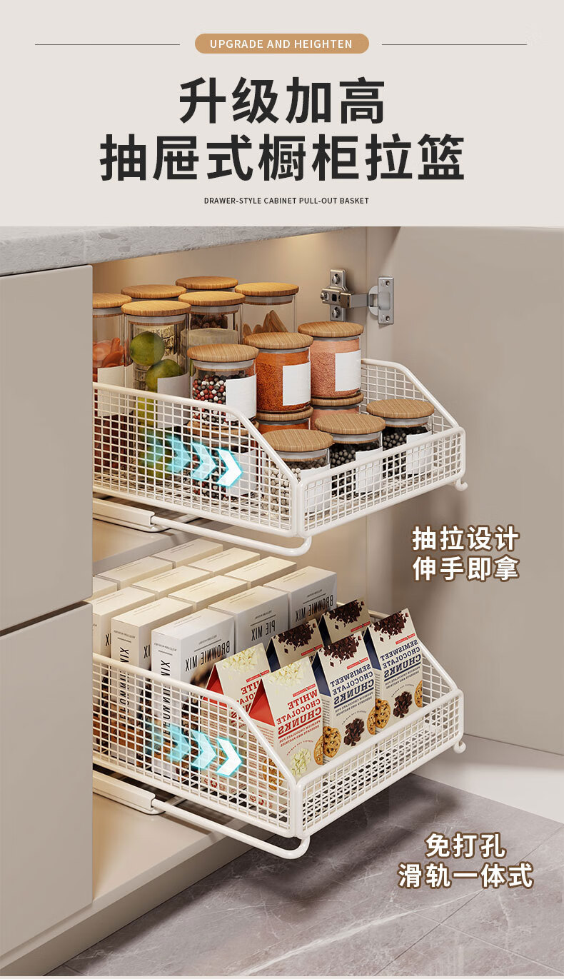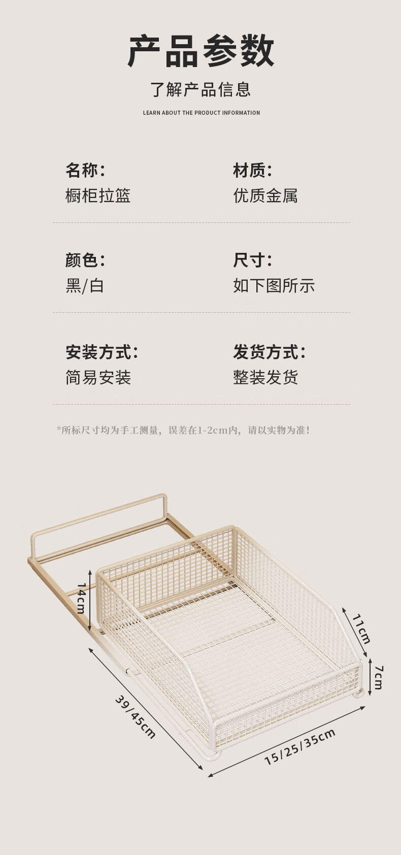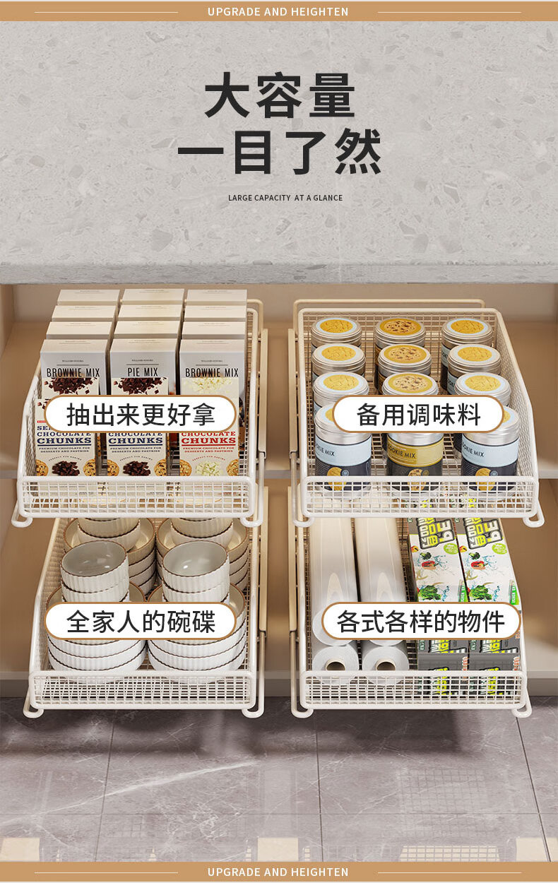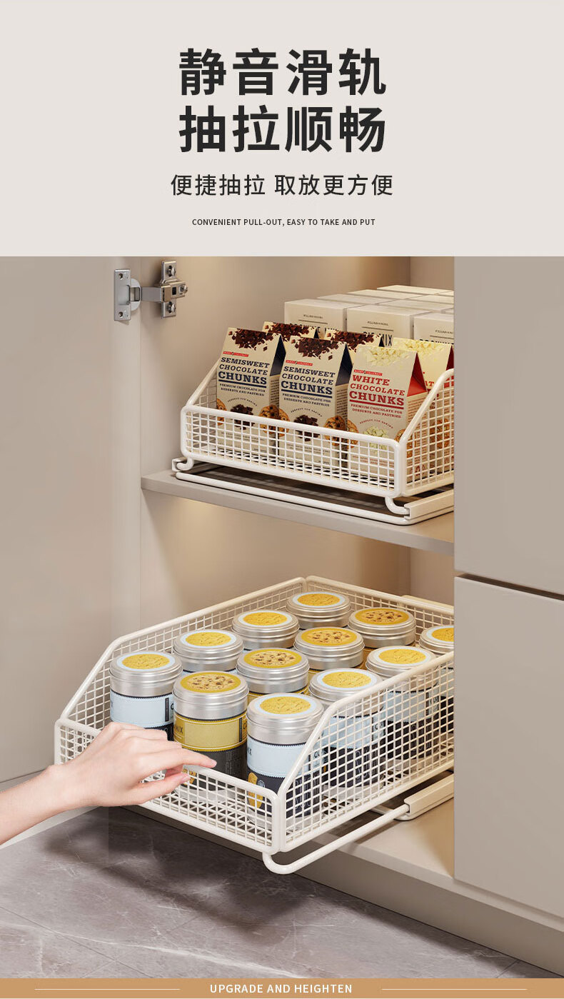 木格格厨房置物架橱柜拉篮柜内窄缝抽拉式夹缝调料架下水槽收纳架子神器 白色小号