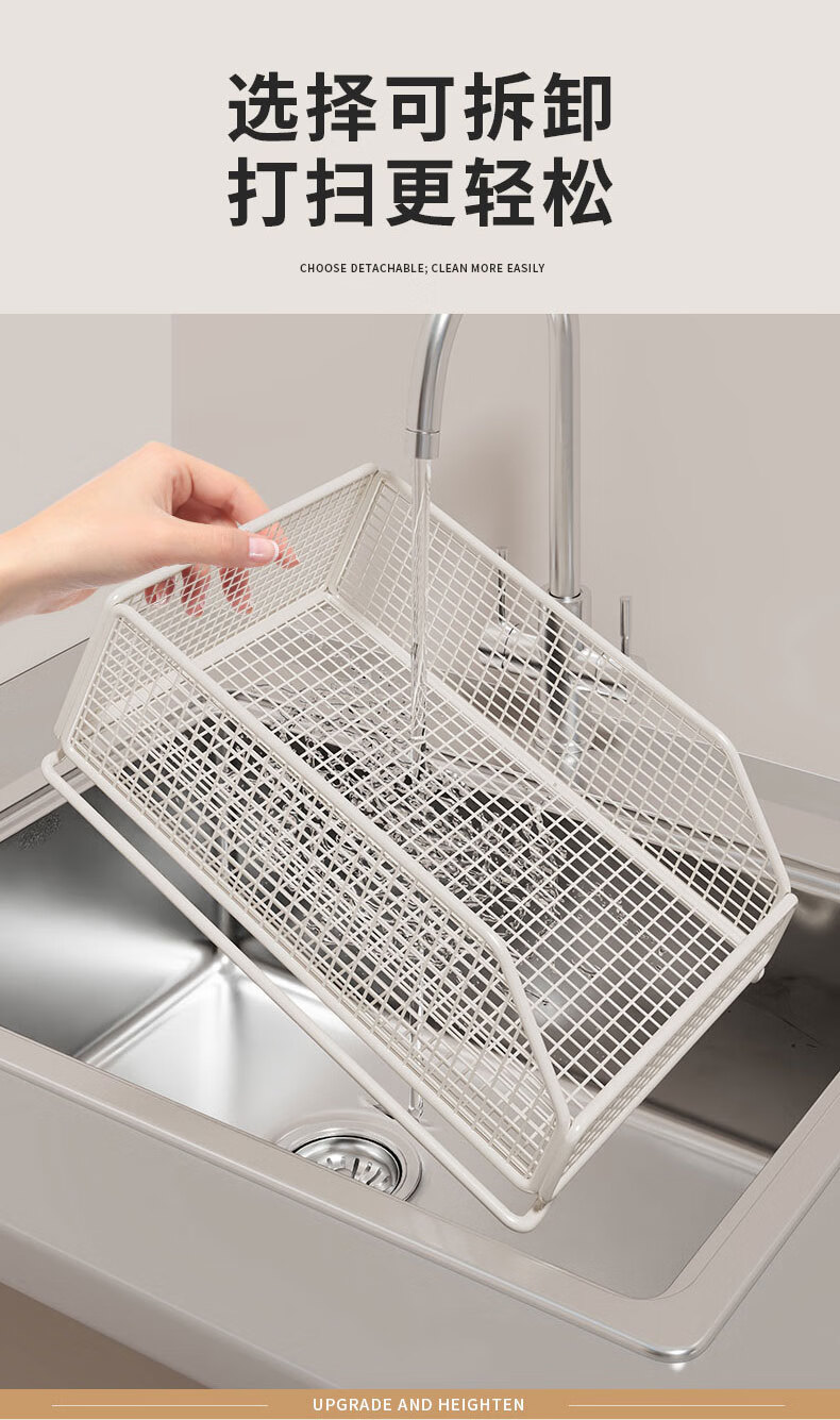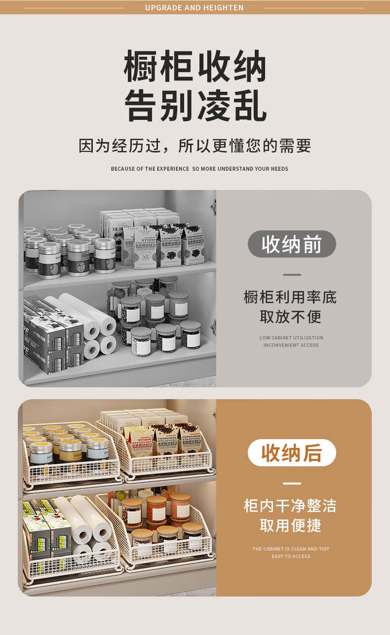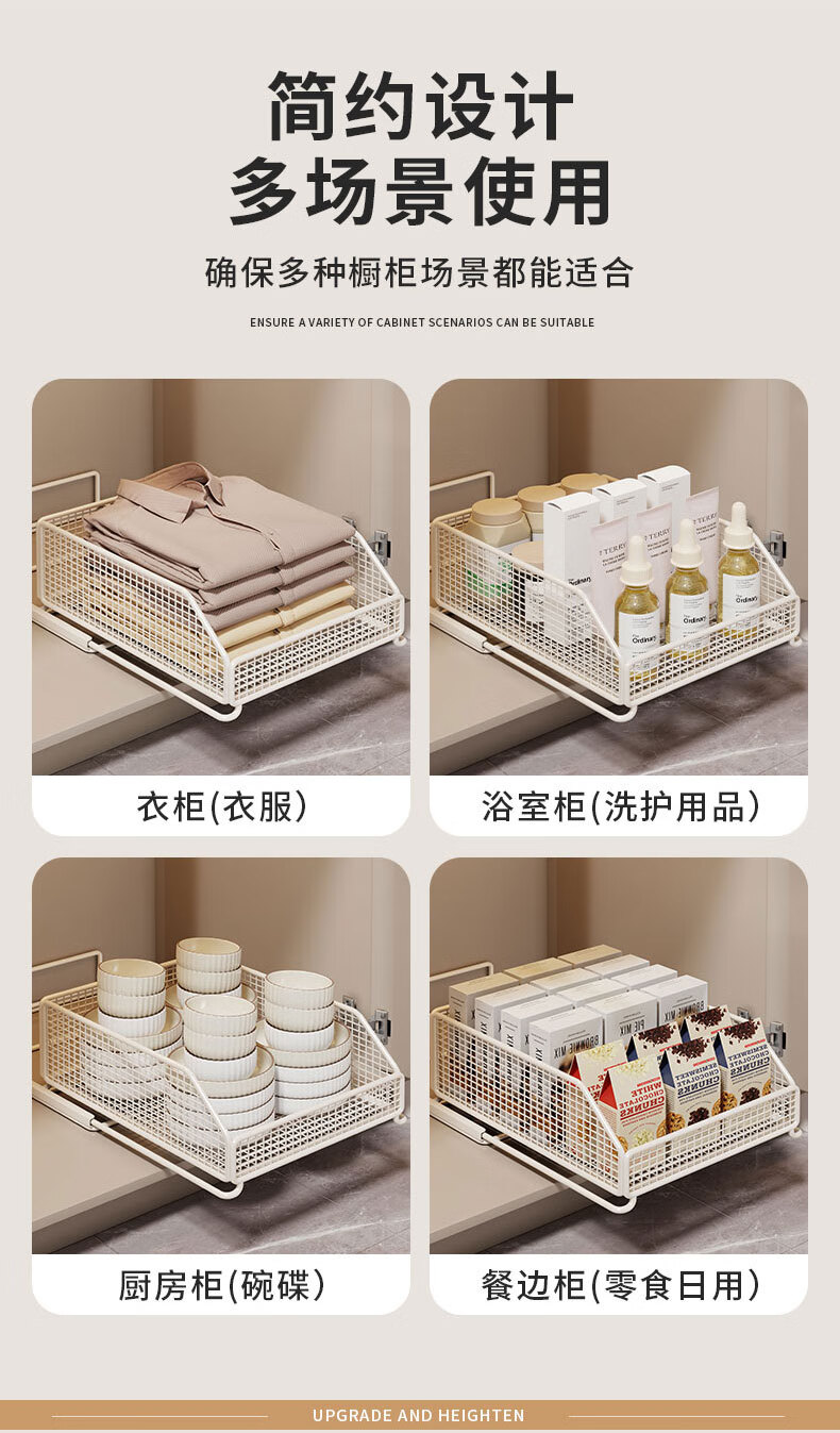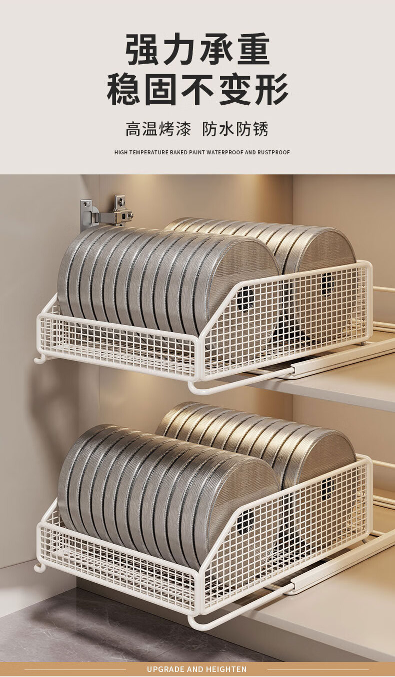 木格格厨房置物架橱柜拉篮柜内窄缝抽拉式夹缝调料架下水槽收纳架子神器 白色小号