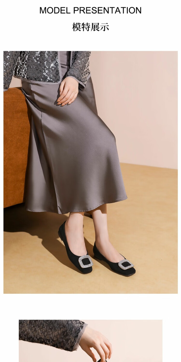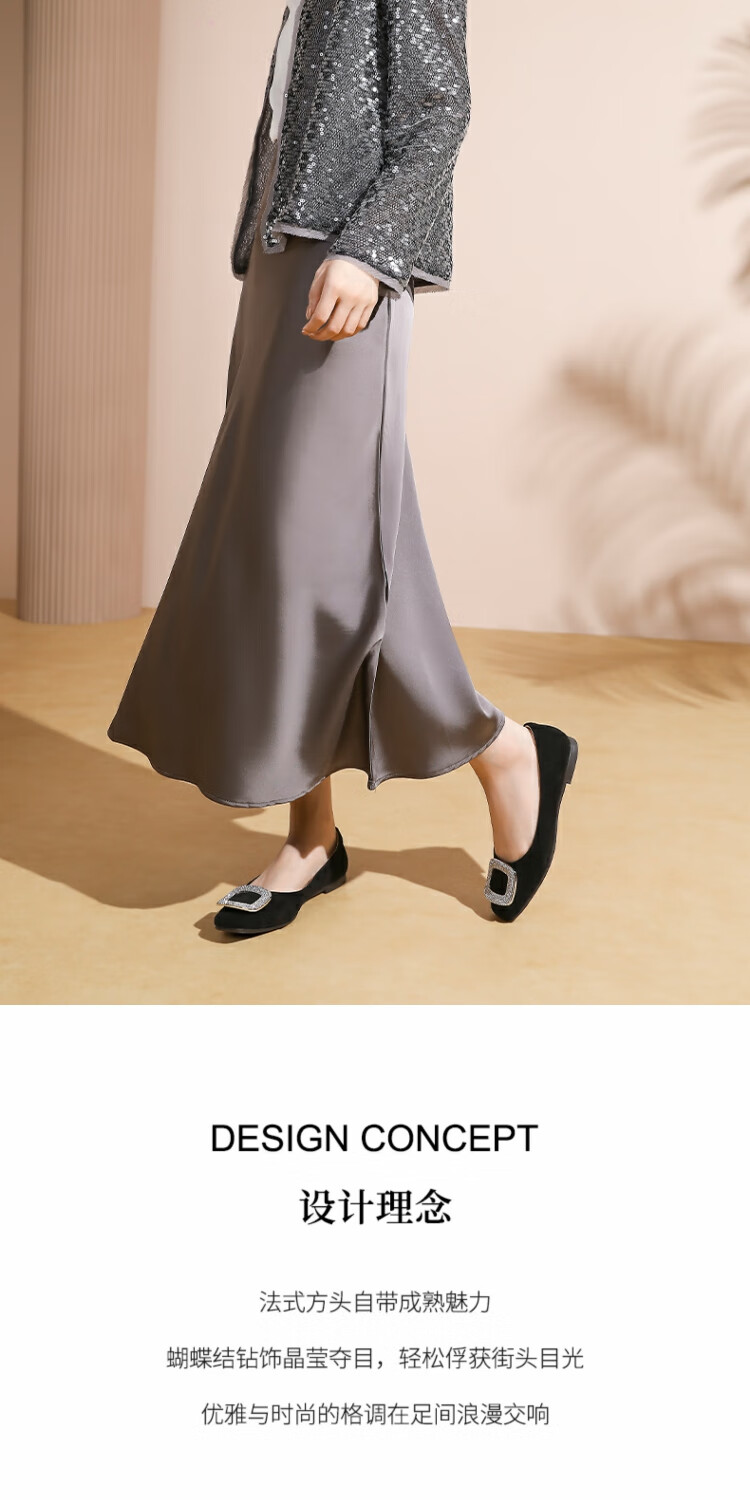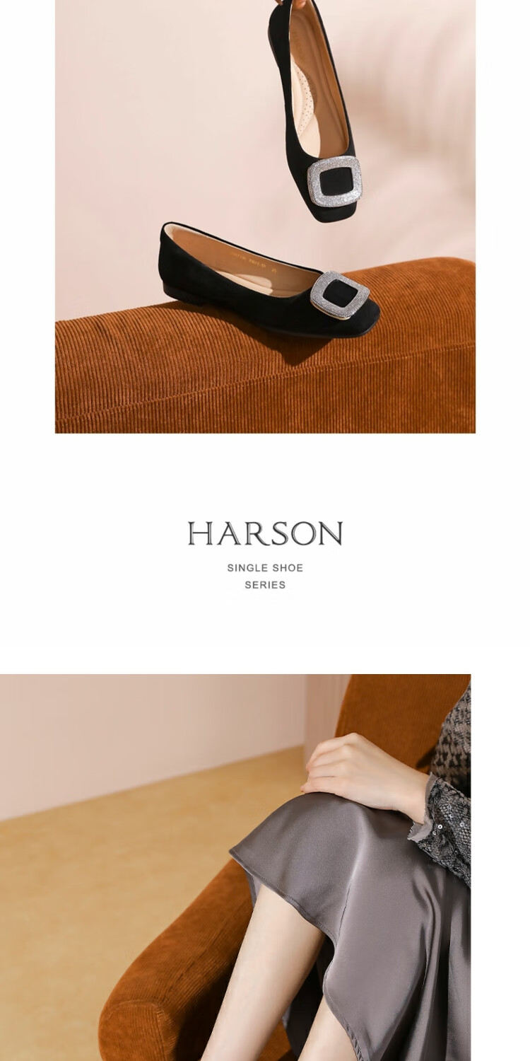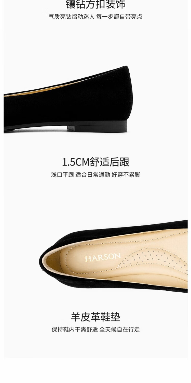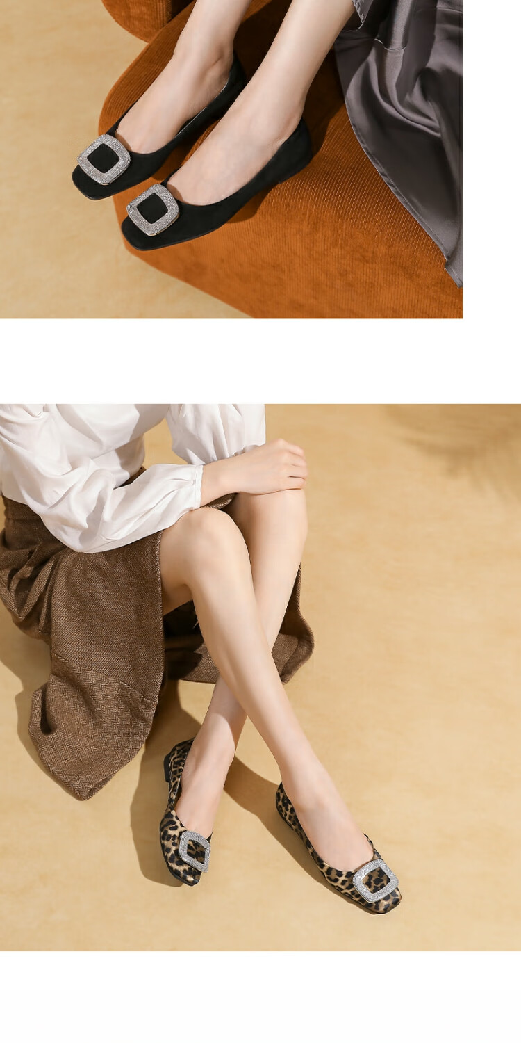 哈森方头浅口休闲单鞋2025秋季新款豹纹平跟通勤女鞋HS267106 黑色 羊反绒面革 36