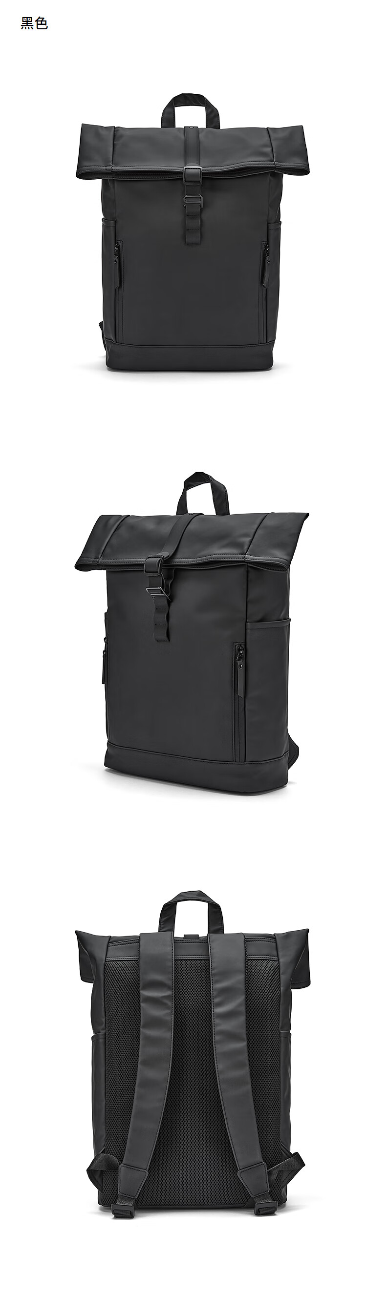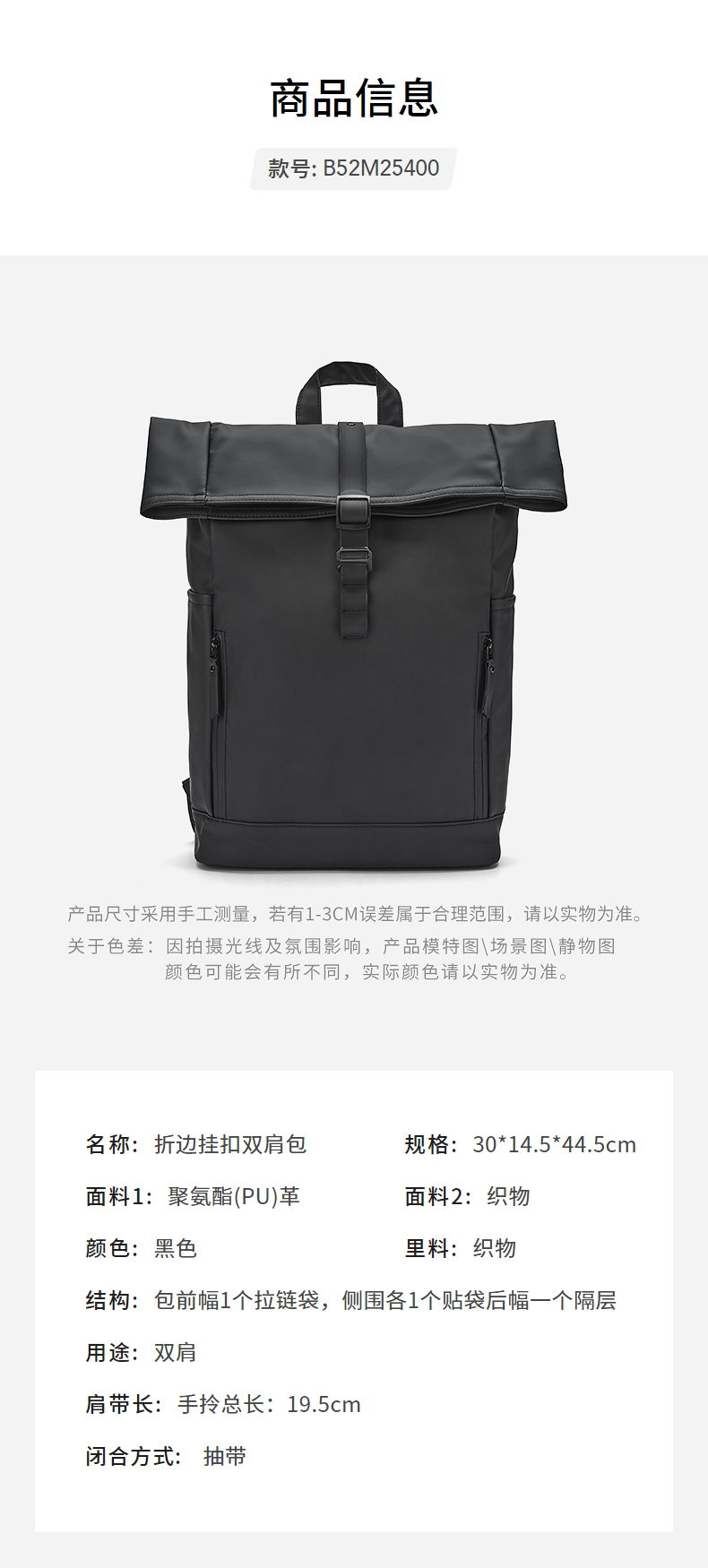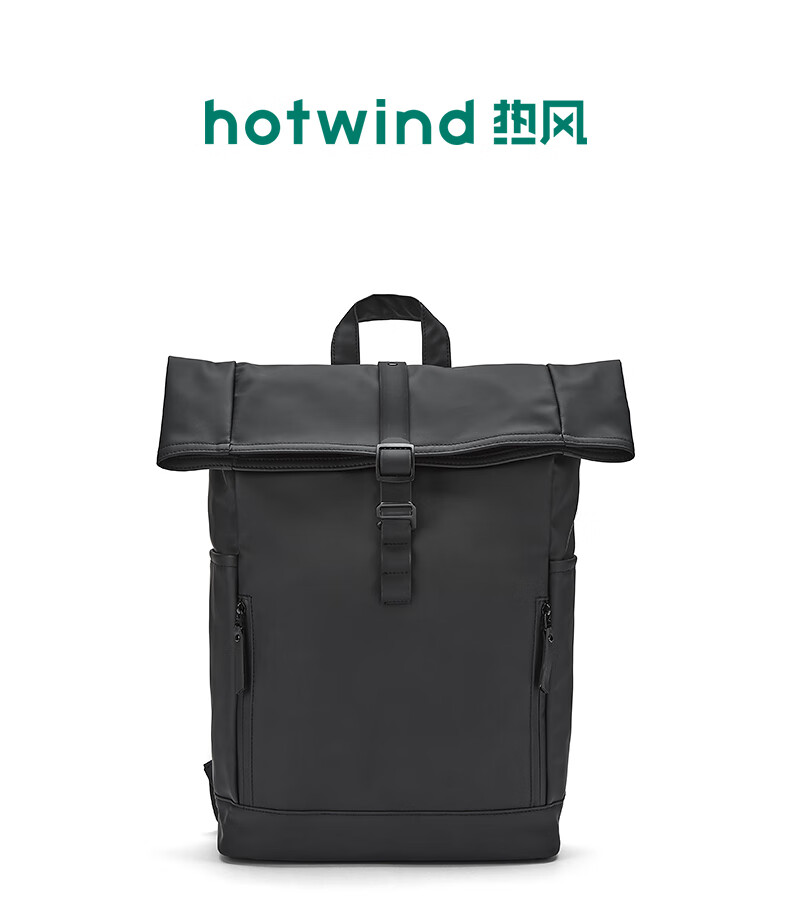 热风(Hotwind)【商场同款】男士双肩包2025年冬季新款男士折边挂扣双肩背包书包 01黑色 F