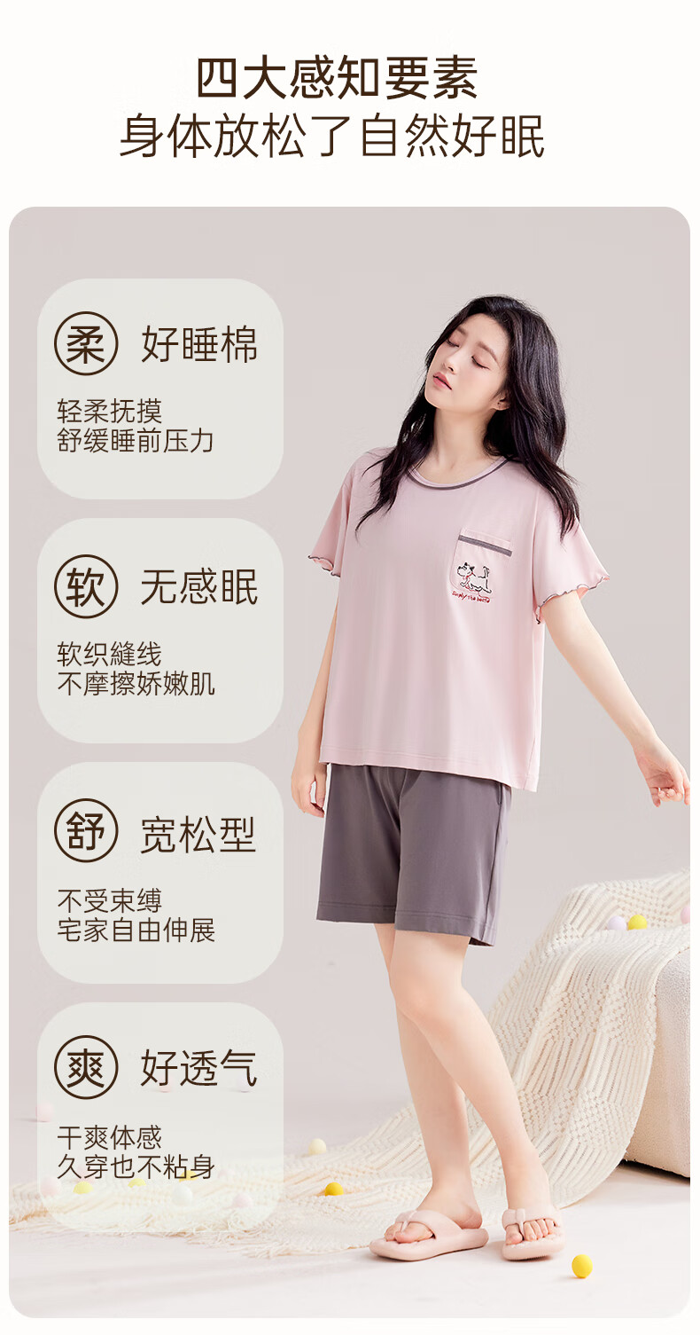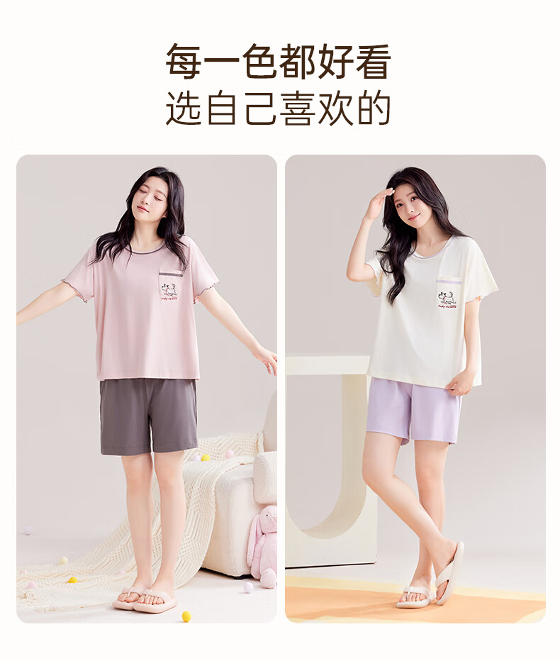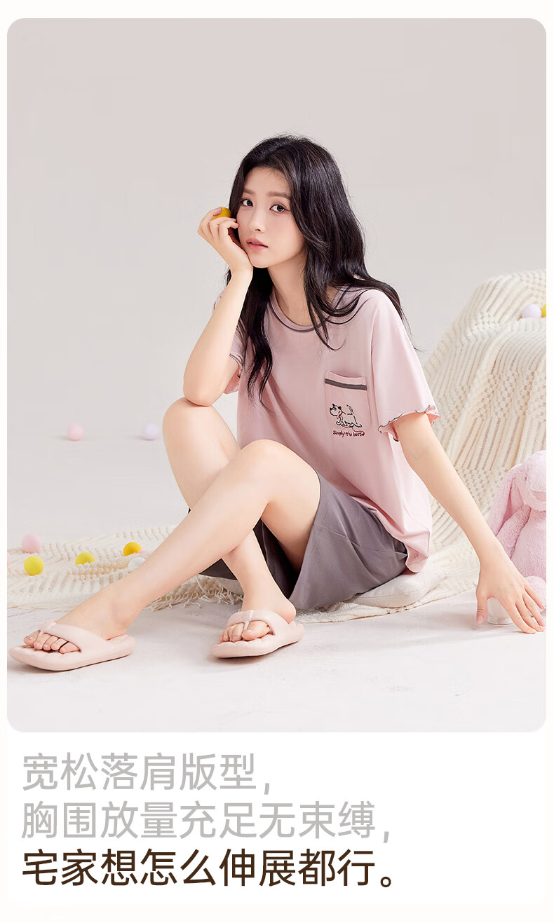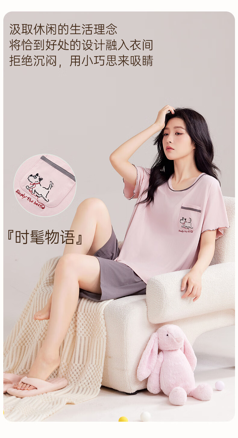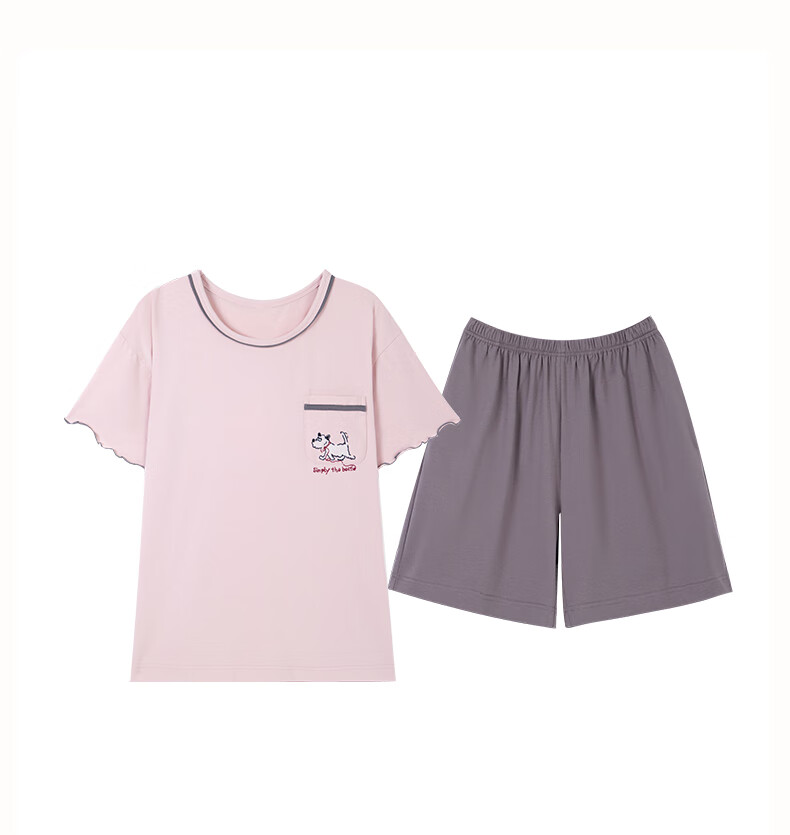 玛伦萨睡衣女夏季2025新款可外穿薄款圆领短袖短裤套装女士家居服 藕粉 M