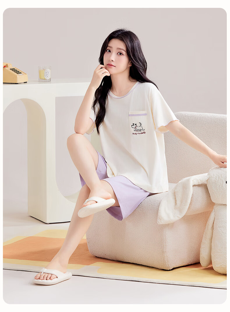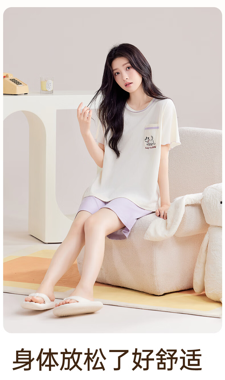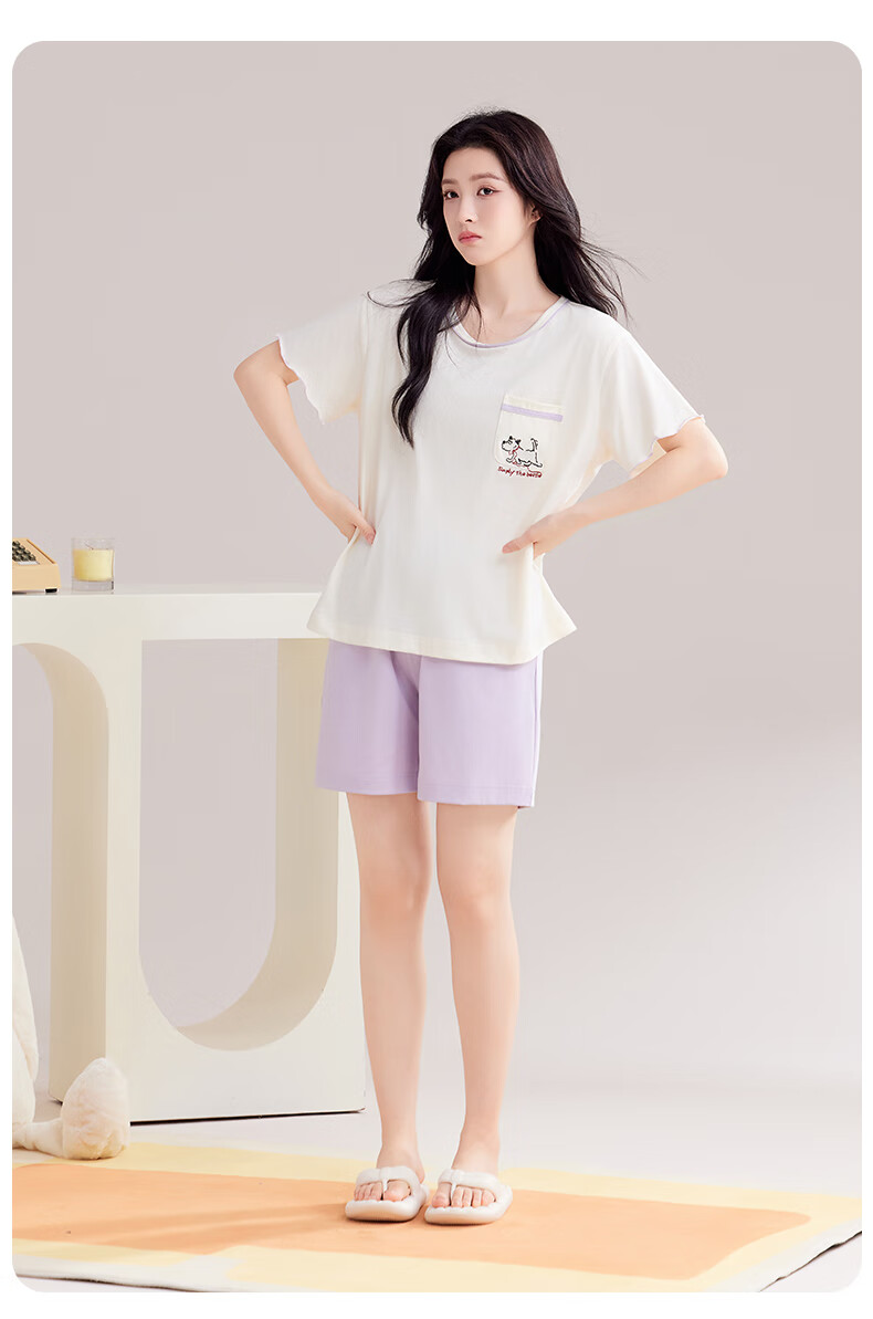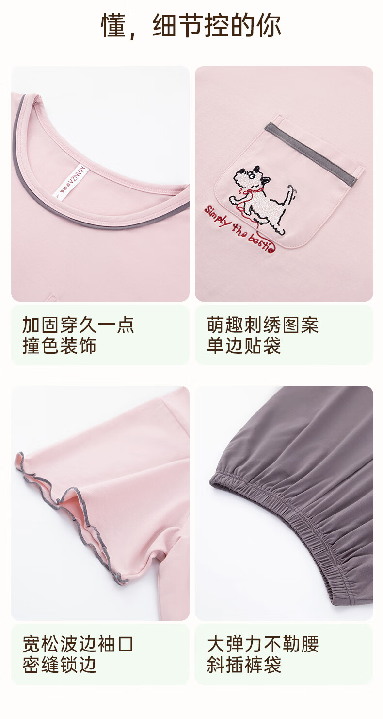 玛伦萨睡衣女夏季2025新款可外穿薄款圆领短袖短裤套装女士家居服 藕粉 M