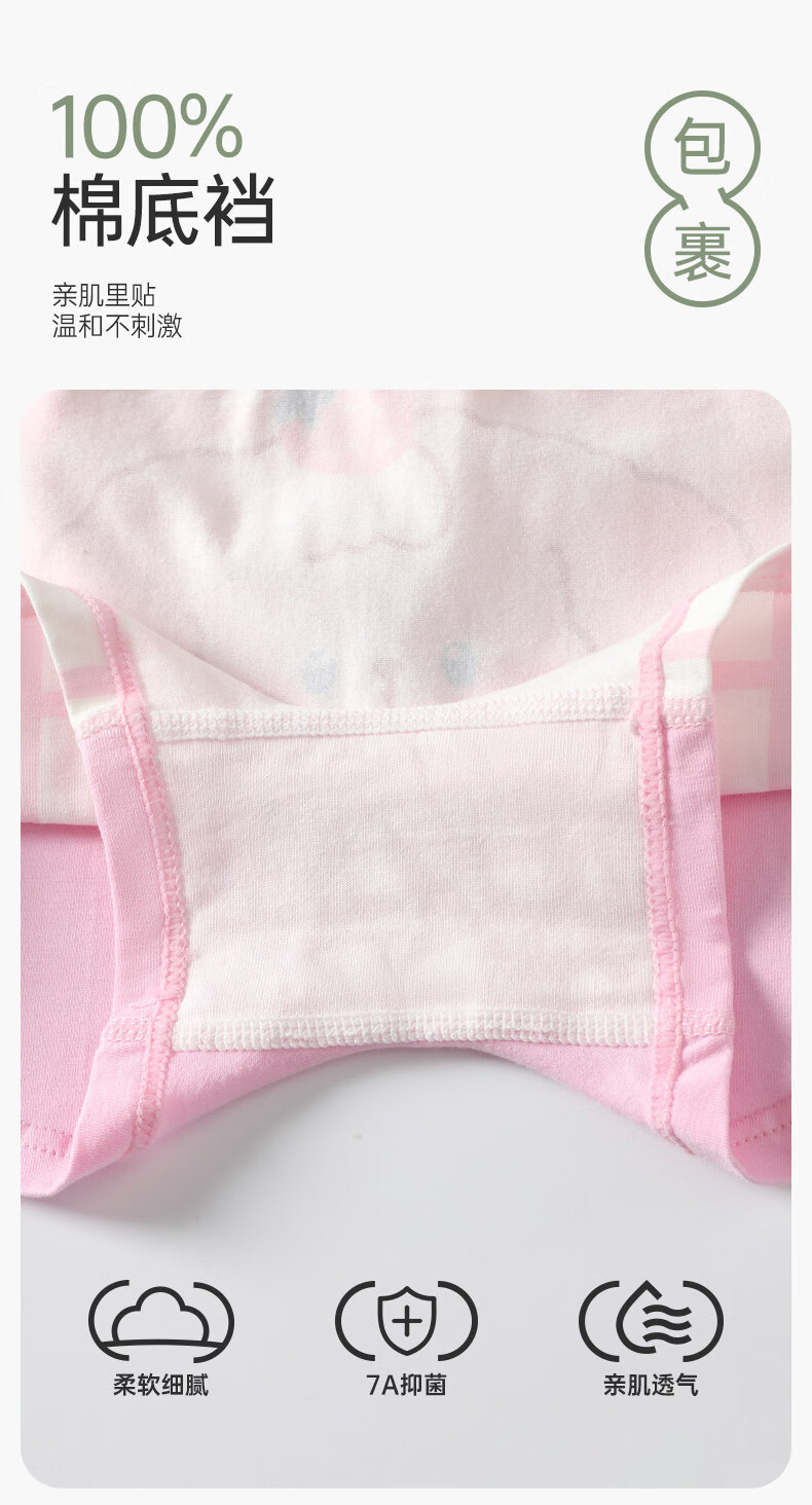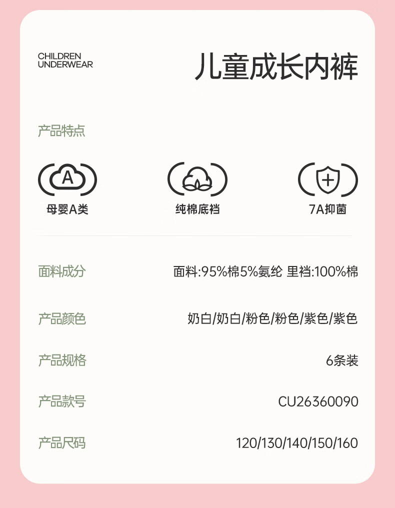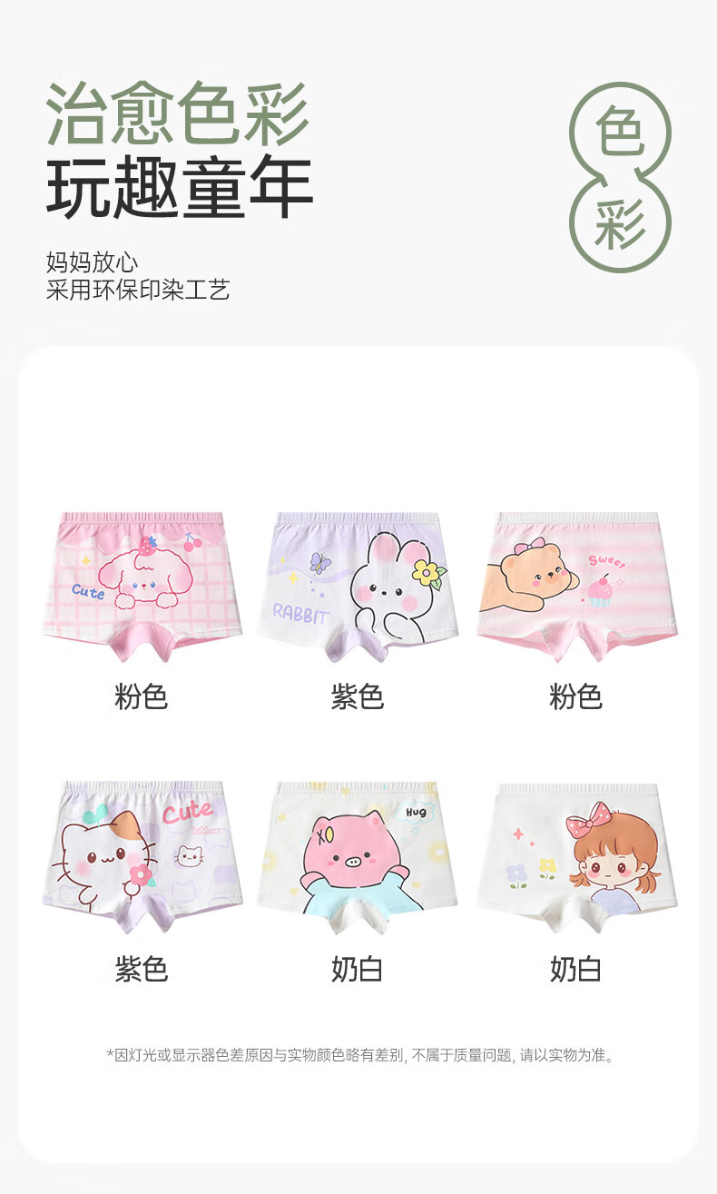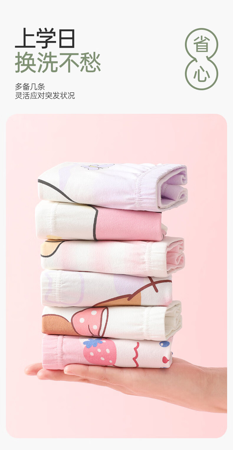 芬腾可安儿童内裤女童2025【A类婴儿棉 7A抑菌】6条平角卡通100纯棉裆 奶白/奶白/粉/粉/紫色/紫色 6条 130