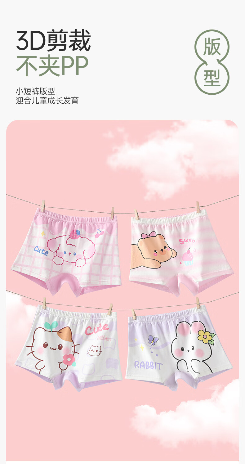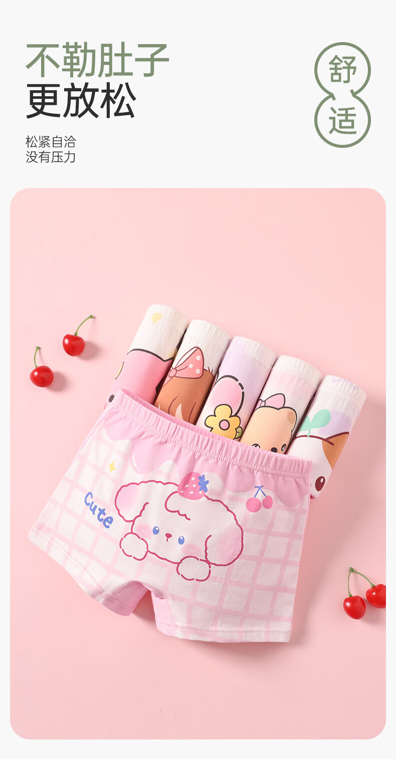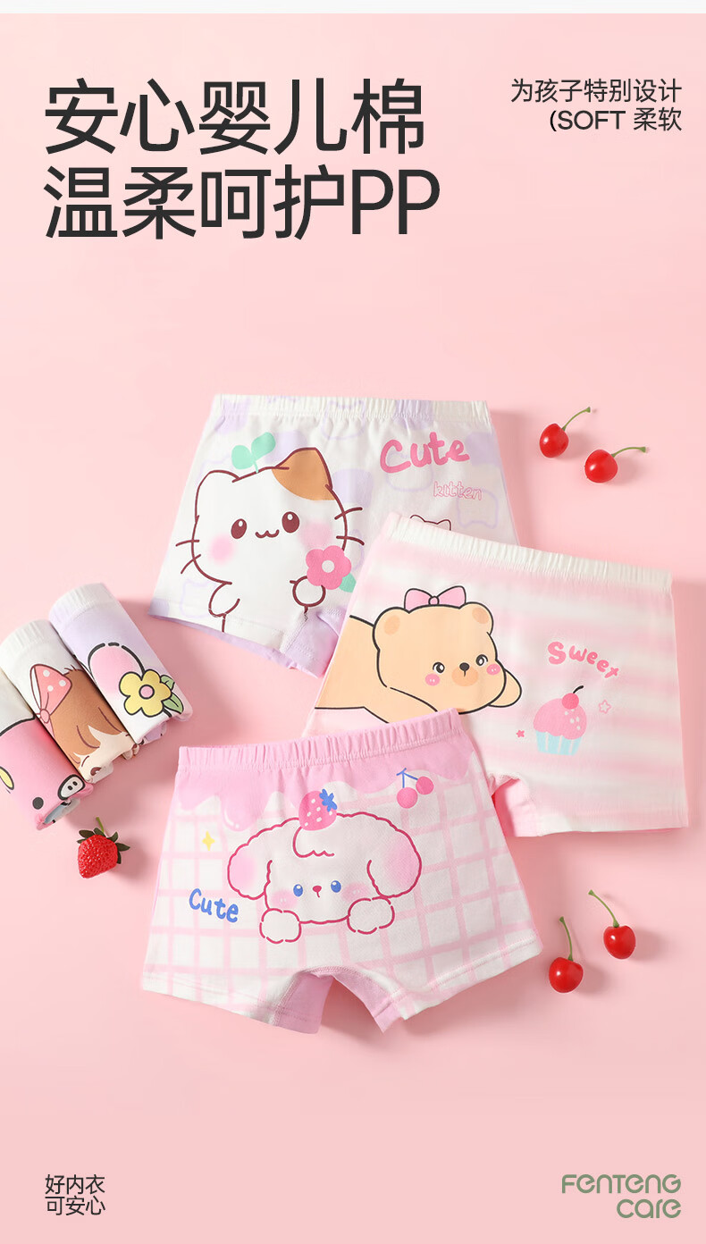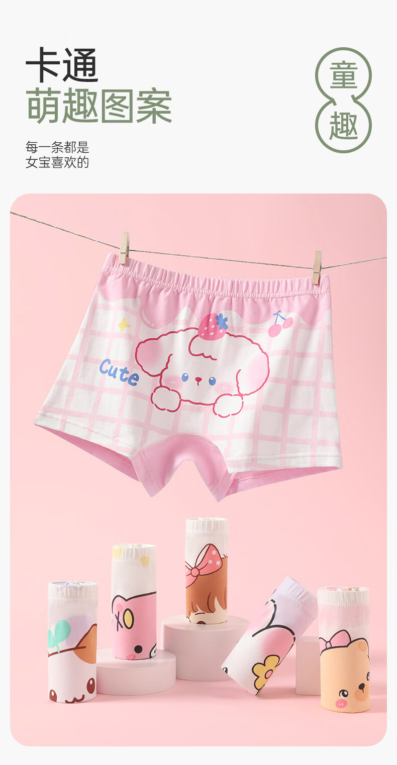 芬腾可安儿童内裤女童2025【A类婴儿棉 7A抑菌】6条平角卡通100纯棉裆 奶白/奶白/粉/粉/紫色/紫色 6条 130