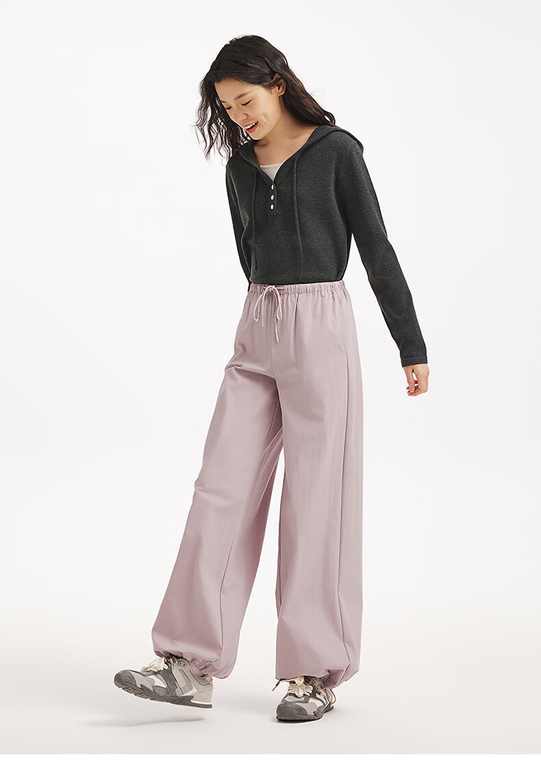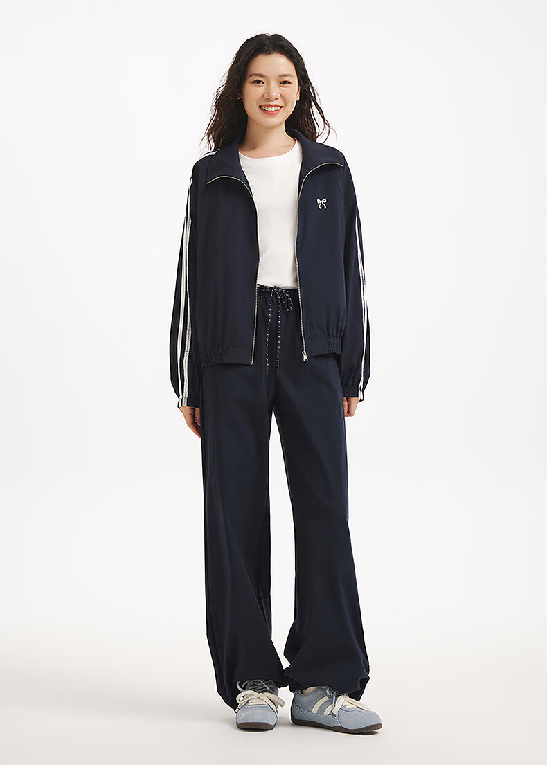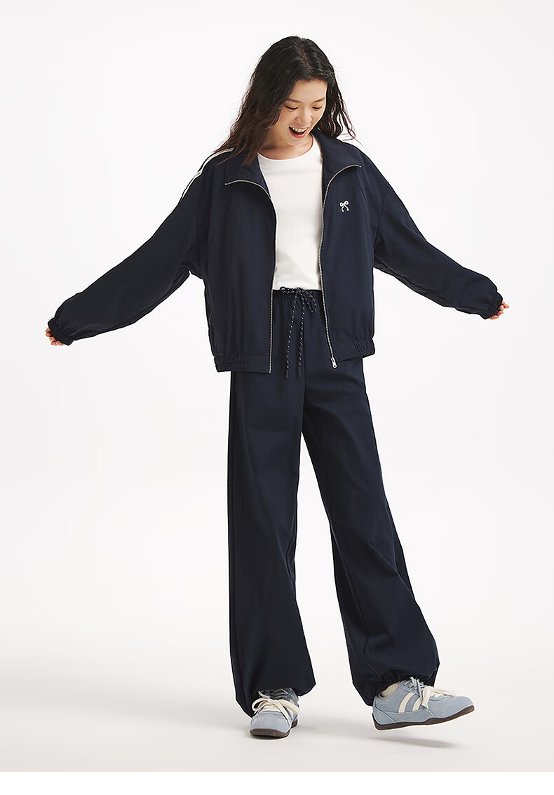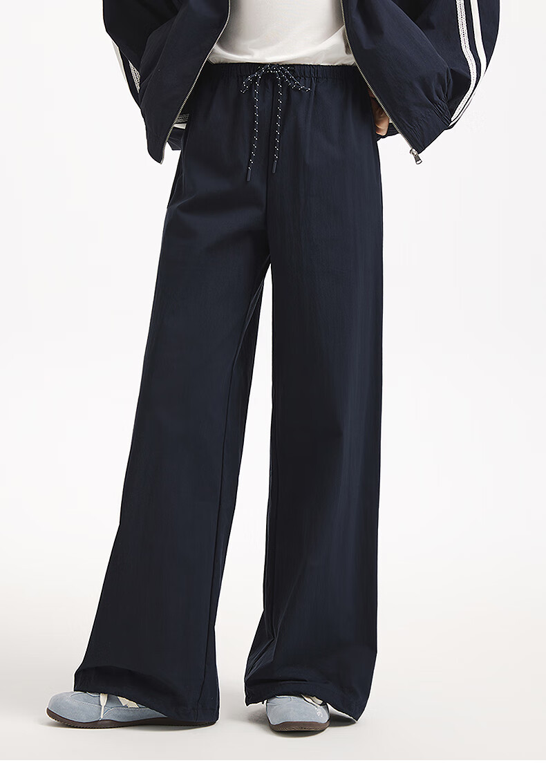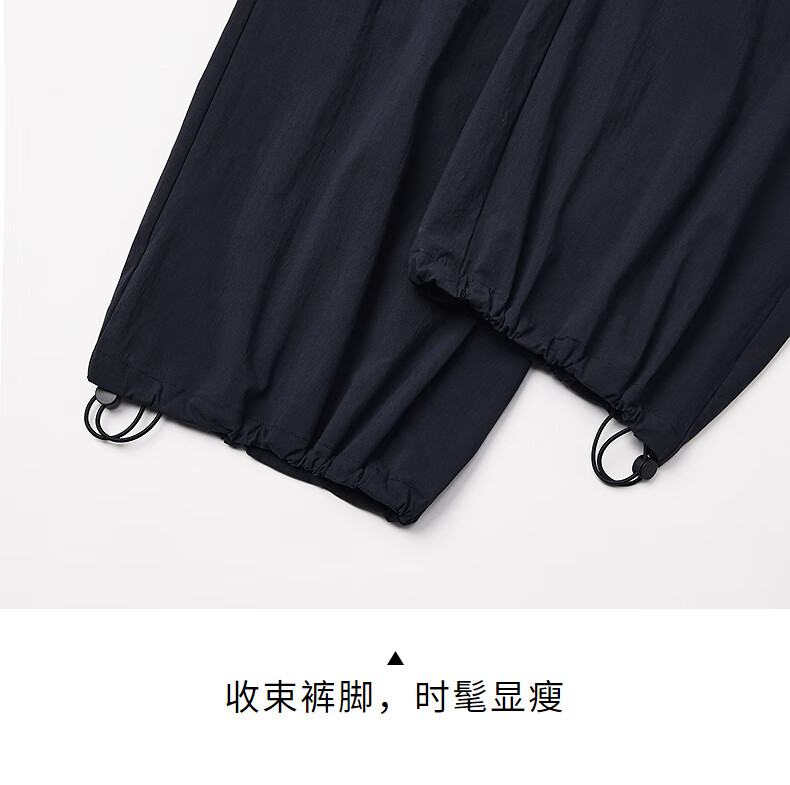 热风女士休闲长裤2025年秋季新款款式舒适直筒束脚松紧腰户外长裤 29藏青兰 L
