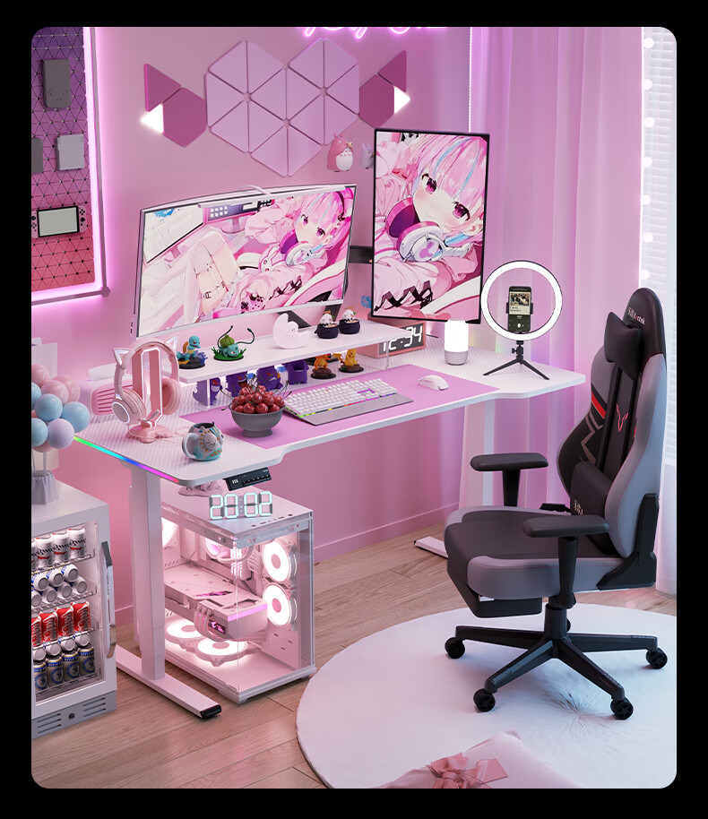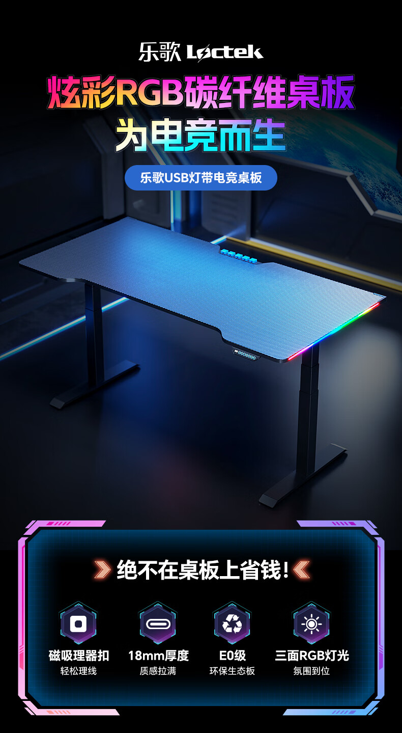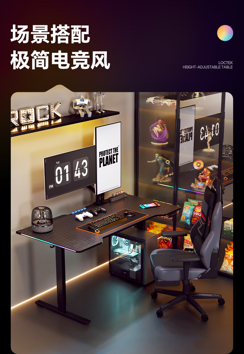 乐歌碳纤维纹理电动升降电竞桌家用电竞房台式电脑桌游戏双人直播套装 电竞板单桌 1.4m*0.7m【黑武士MAX椭圆腿】