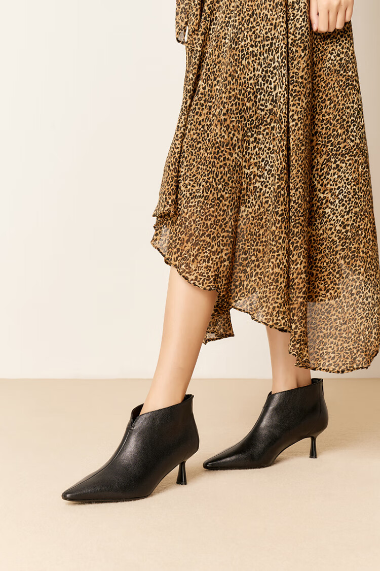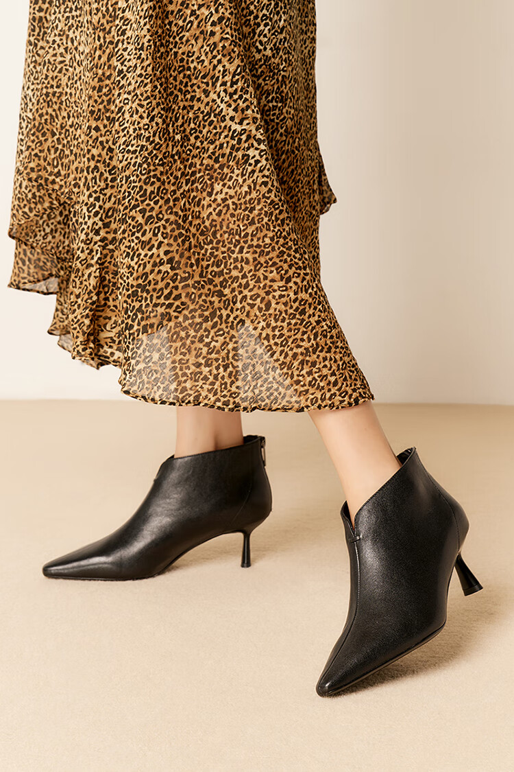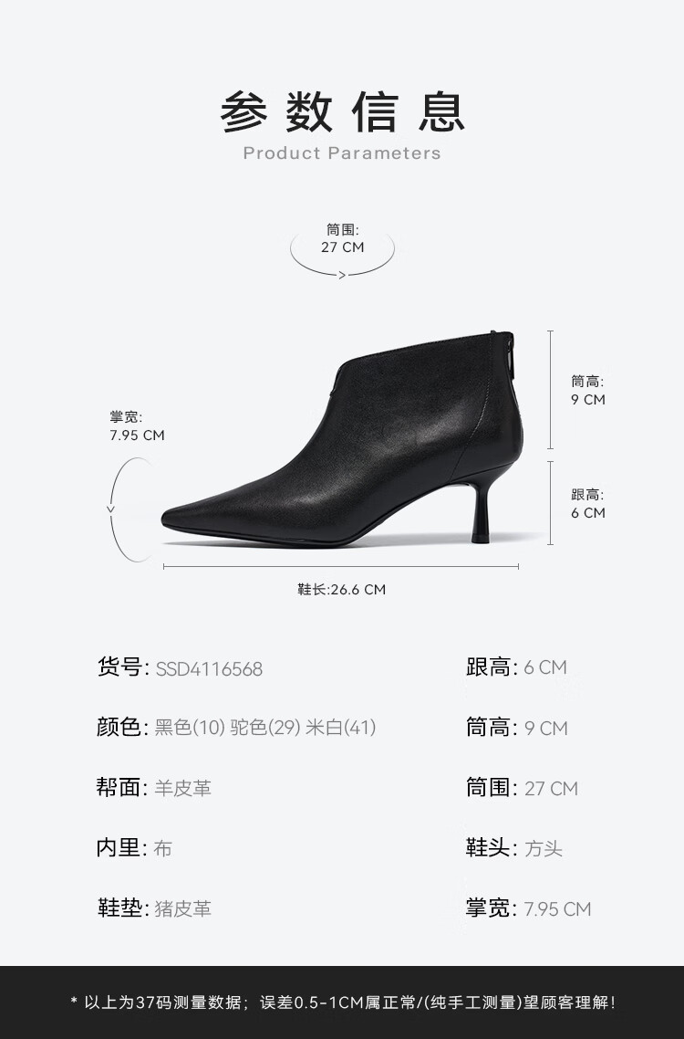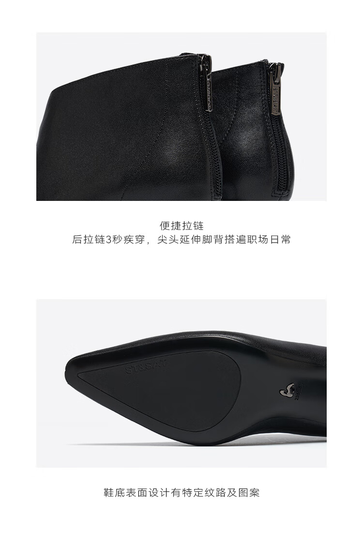St&Sat星期六休闲百搭切尔西靴2025冬款细跟休闲时尚短靴女SSD4116568 黑色 34