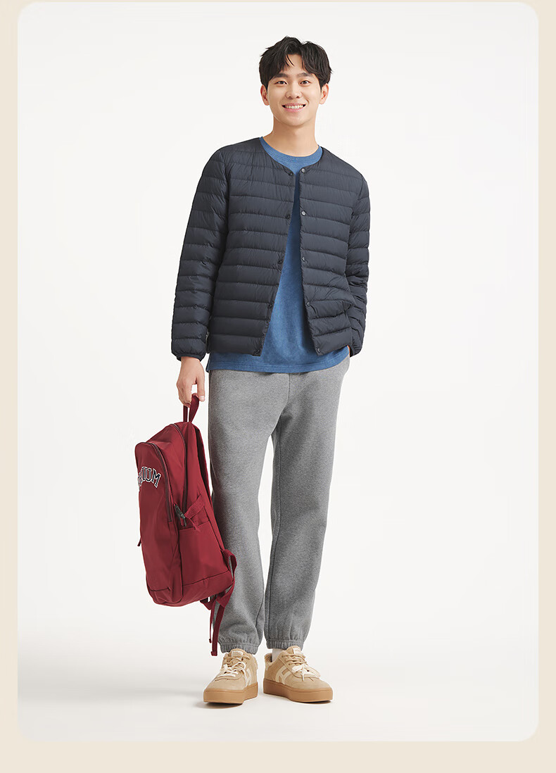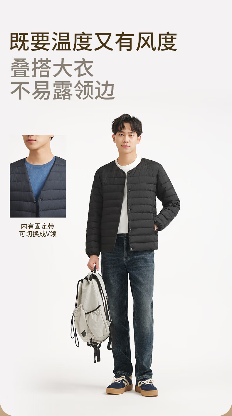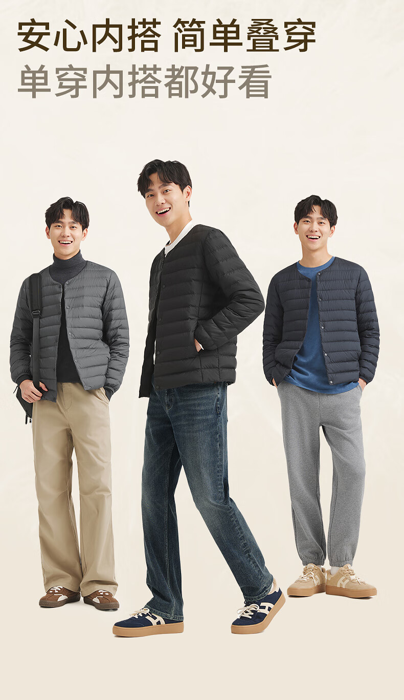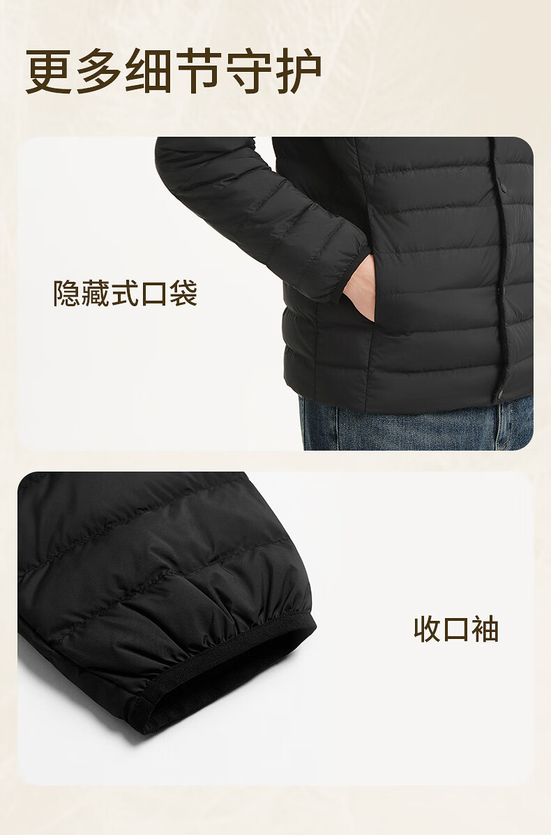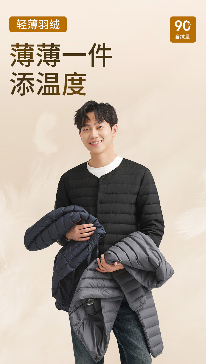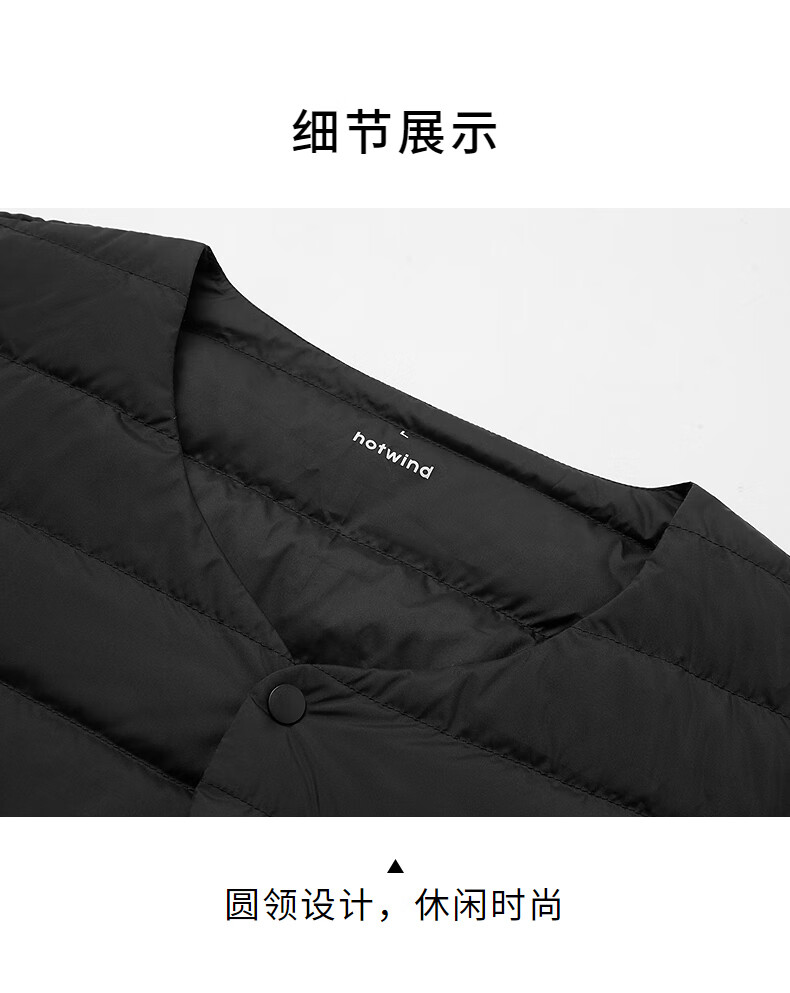 热风(Hotwind)【商场同款】男士轻薄羽绒服2025年冬季新款圆领轻薄内搭羽绒外套 01黑色 S