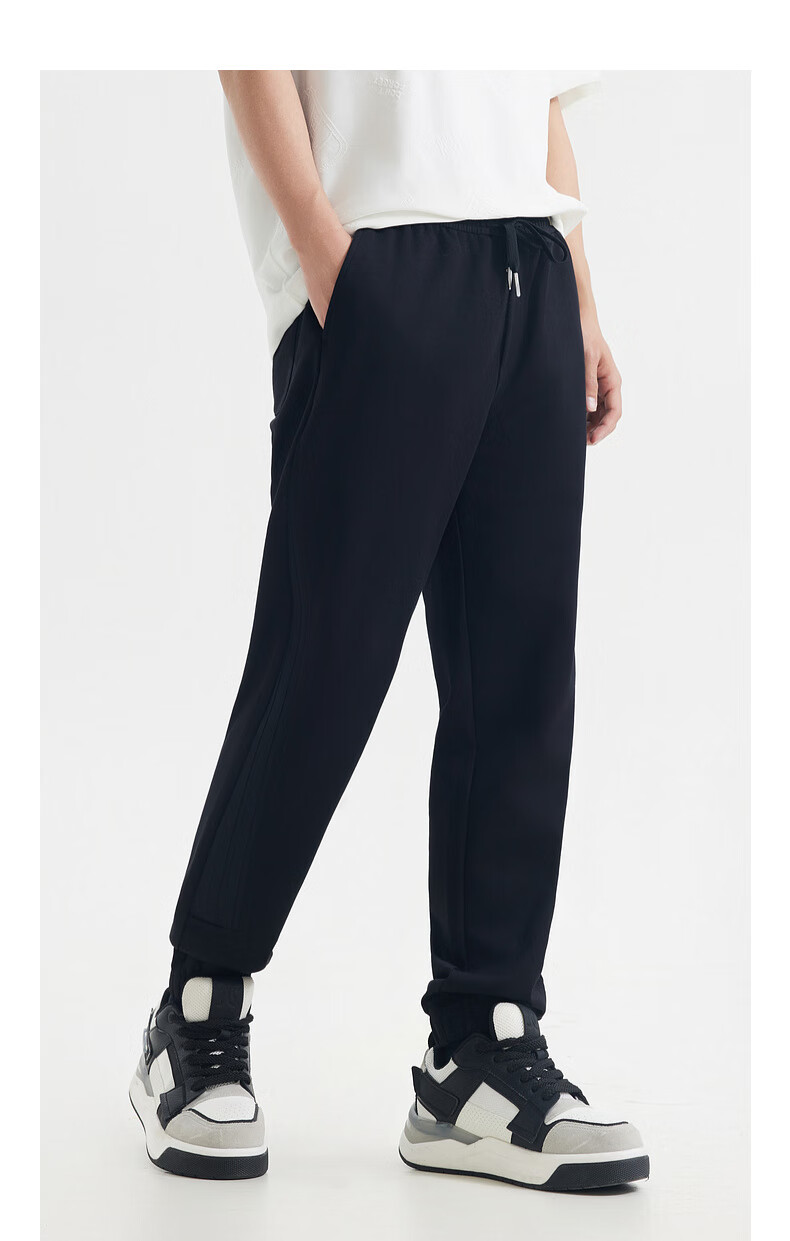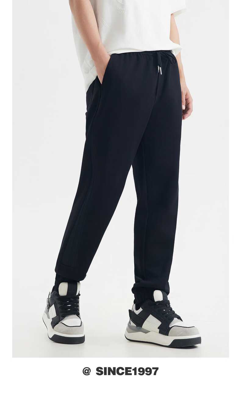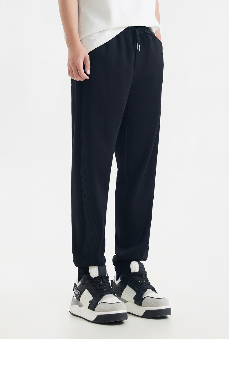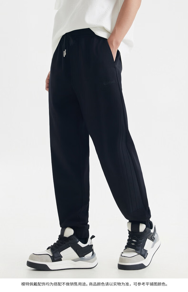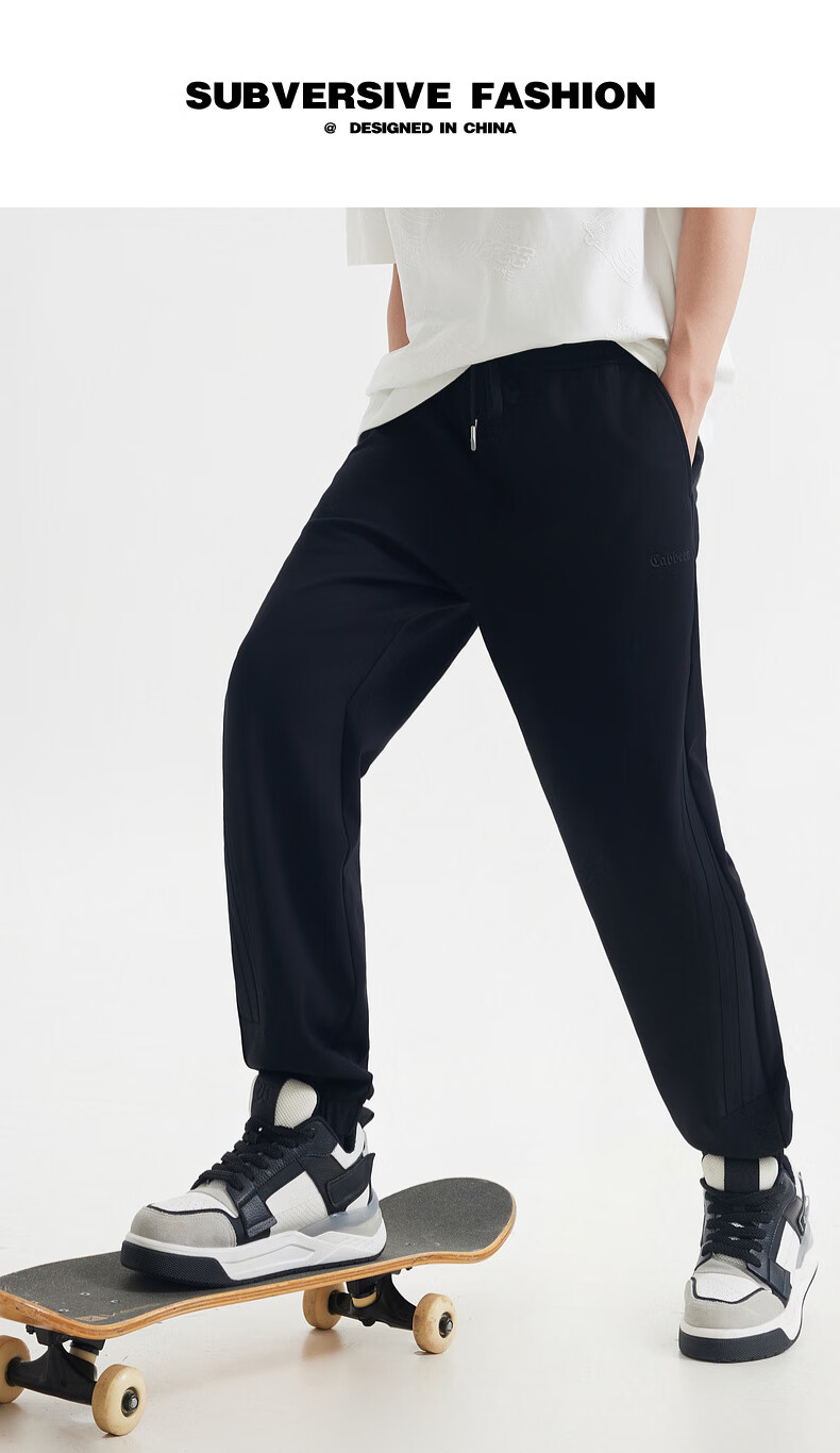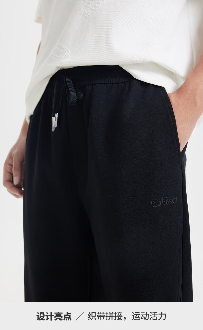 卡宾【织带拼接】薄款束脚运动宽松透气卫裤休闲裤男 煤黑色01