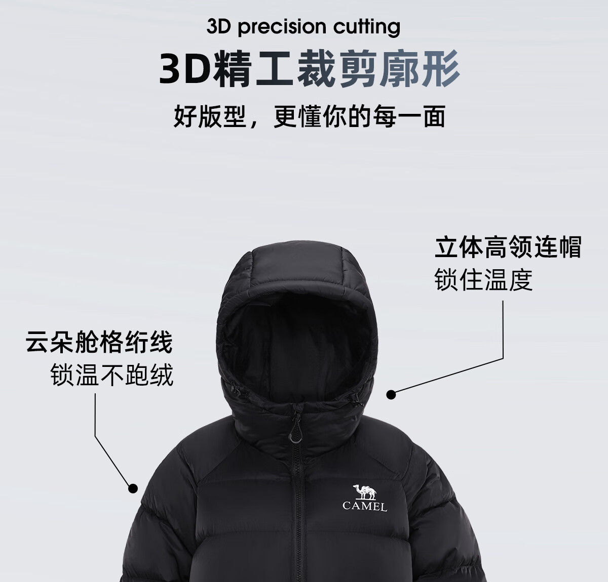 骆驼女装羽绒服2025秋冬新款男女同款高蓬防风保暖抗静电面包服