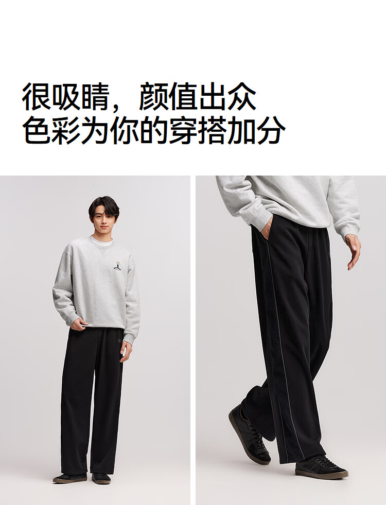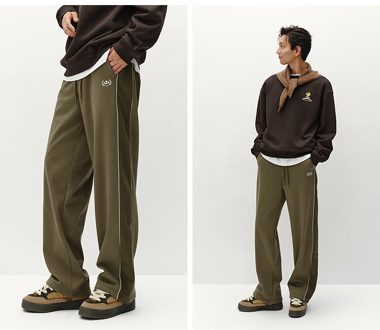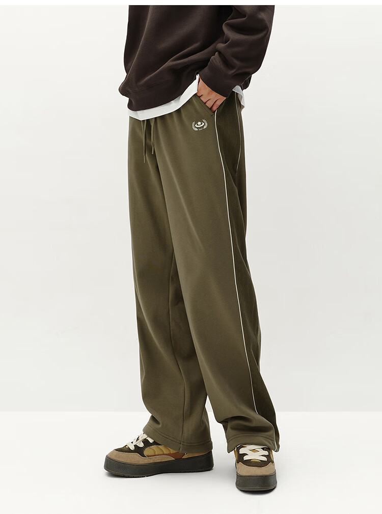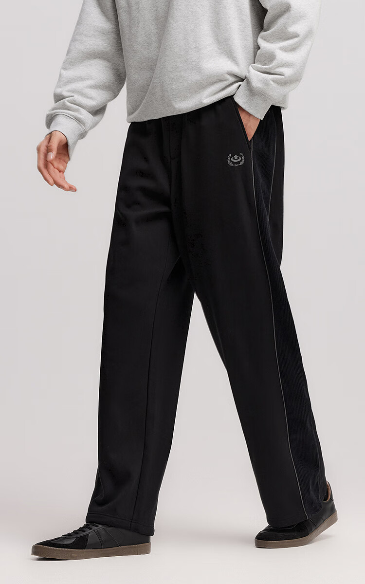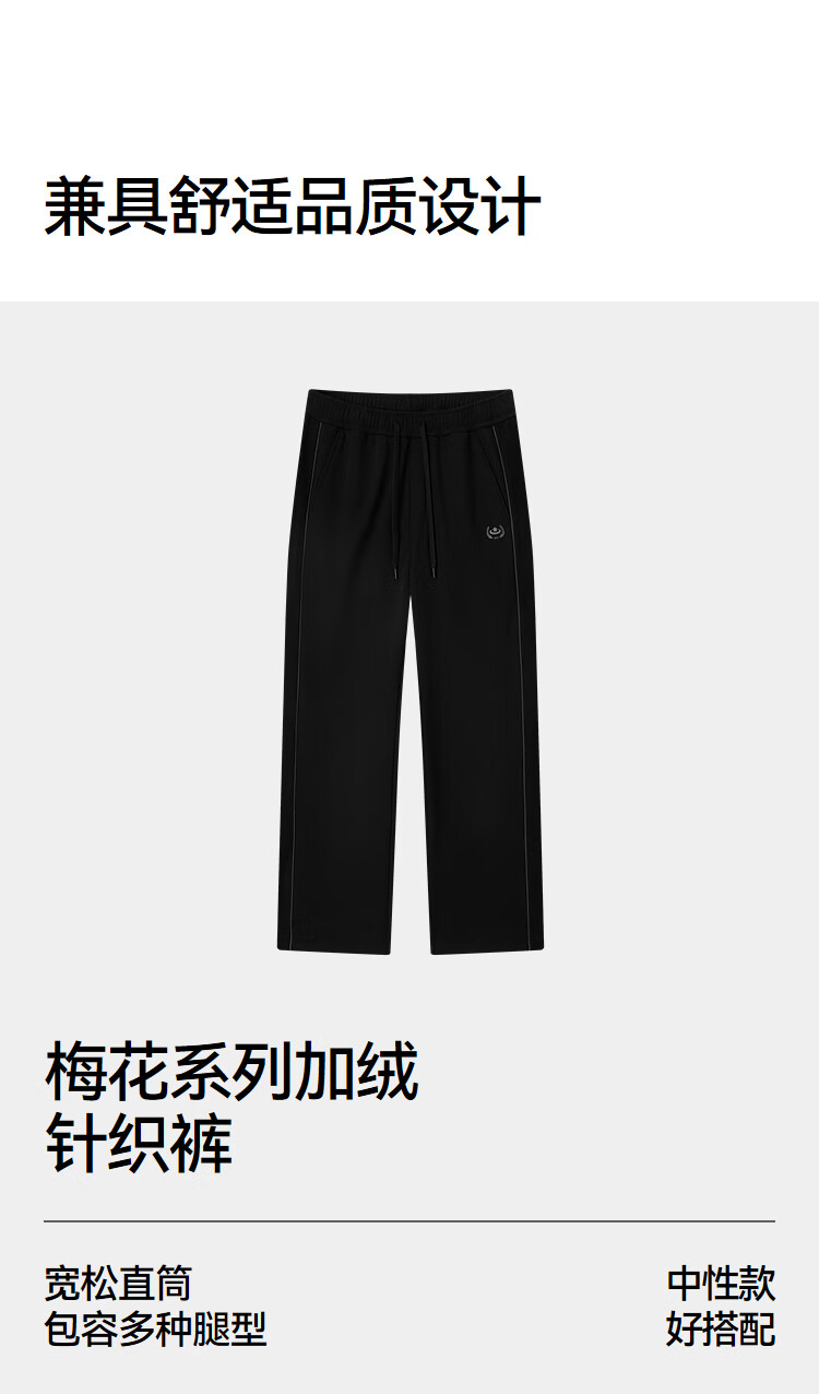 森马梅花系列休闲裤男冬季加绒宽松直筒裤复古运动风情侣101724127208