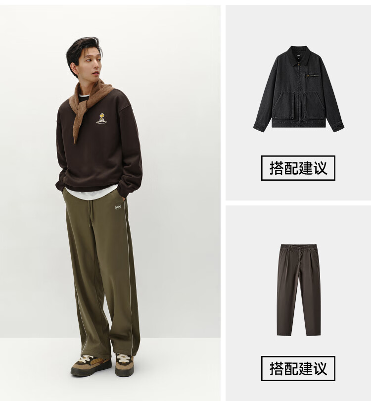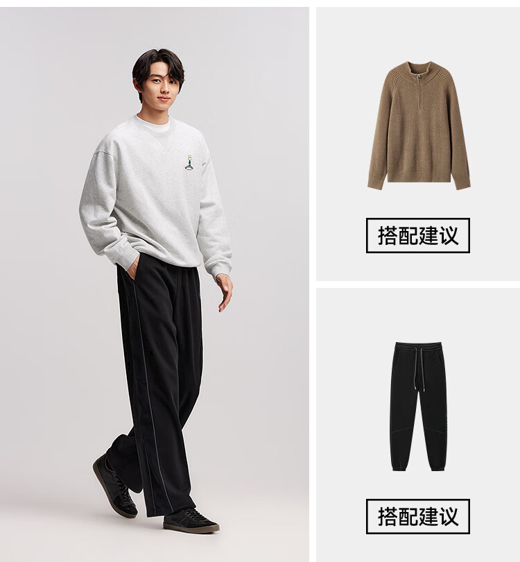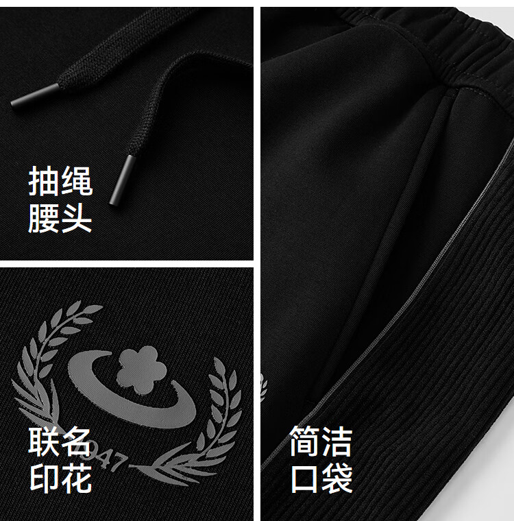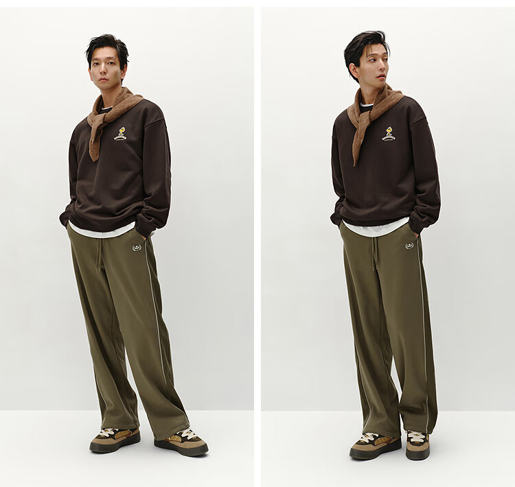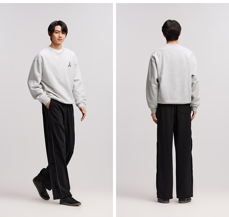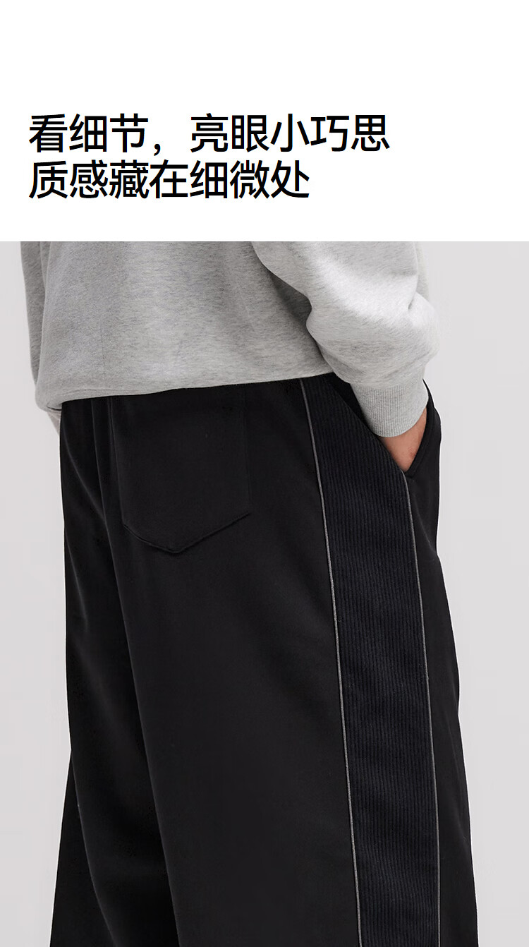 森马梅花系列休闲裤男冬季加绒宽松直筒裤复古运动风情侣101724127208
