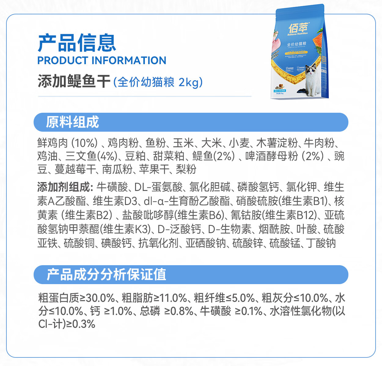 佰萃麦富迪 全价猫粮 通用型猫咪营养猫粮三文鱼鳀鱼天然粮 【尝鲜】金标鳀鱼丨幼猫 2kg