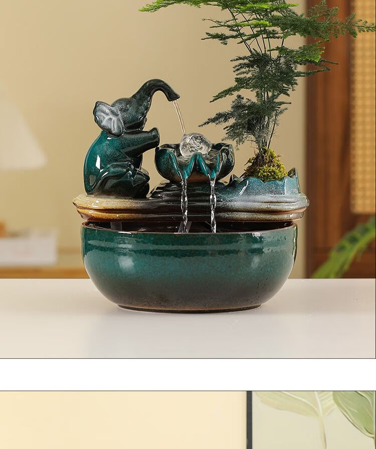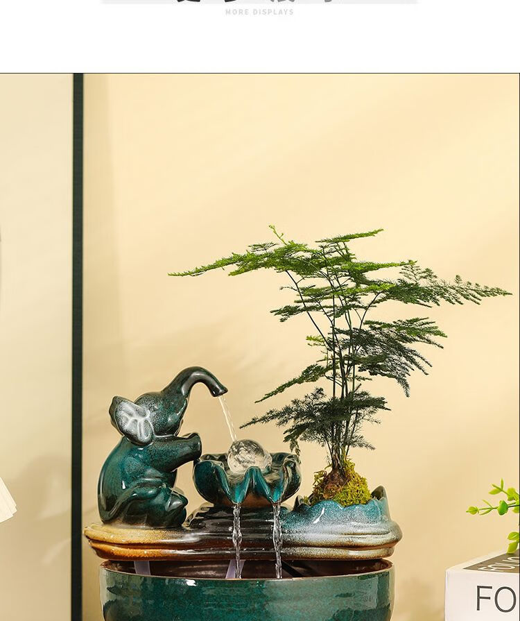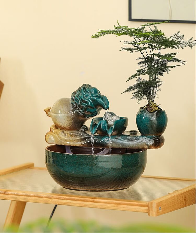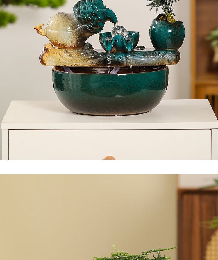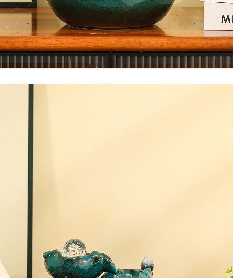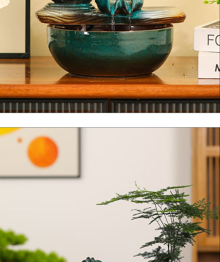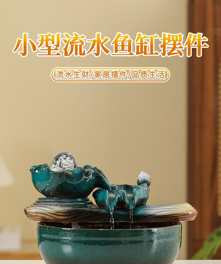 OEMG新中式陶瓷招财流水鱼缸水循环小型家用桌面摆件风水球乔迁送礼物 翡翠绿白菜(百财)流水摆件 默认赠送水泵与水晶球
