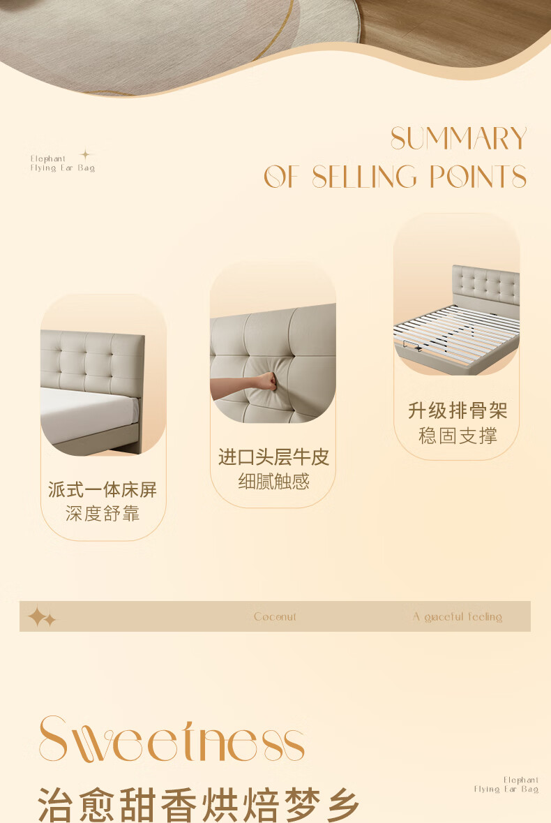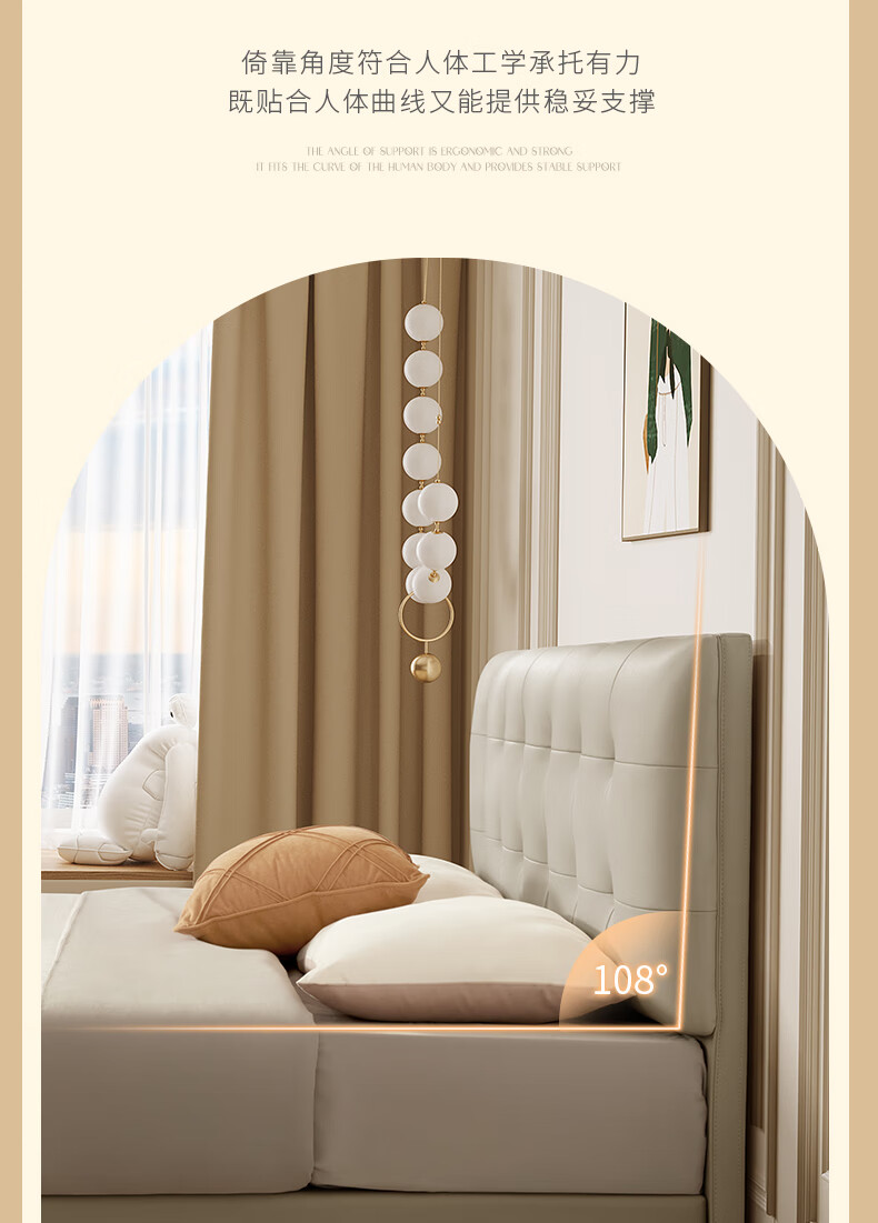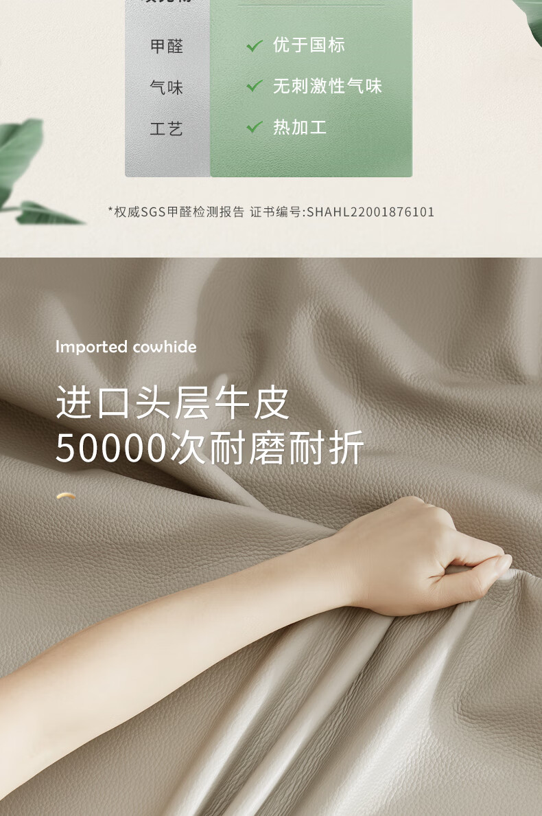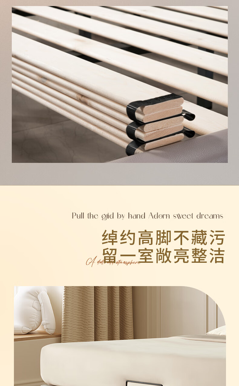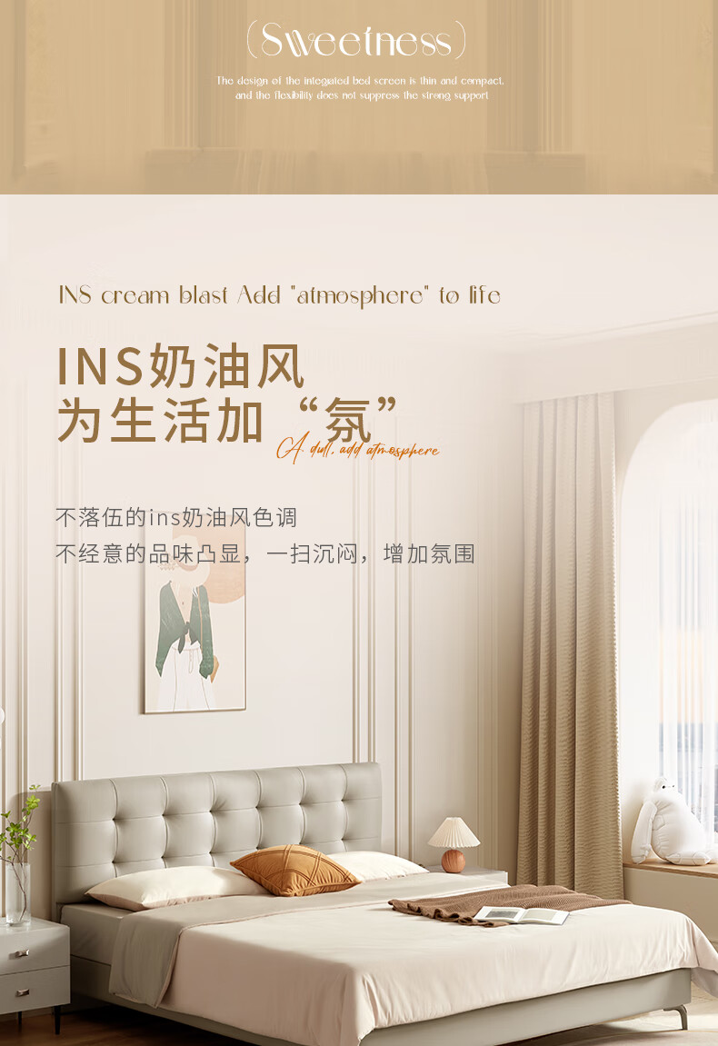 顾家家居华夫格奶油风头层牛皮床双人床卧室DS8109B馥芮白高脚款1.8