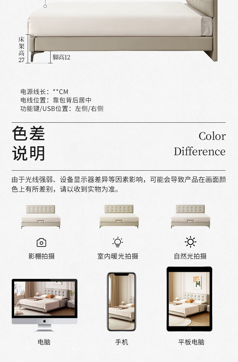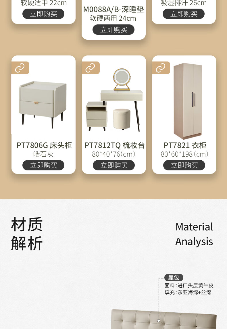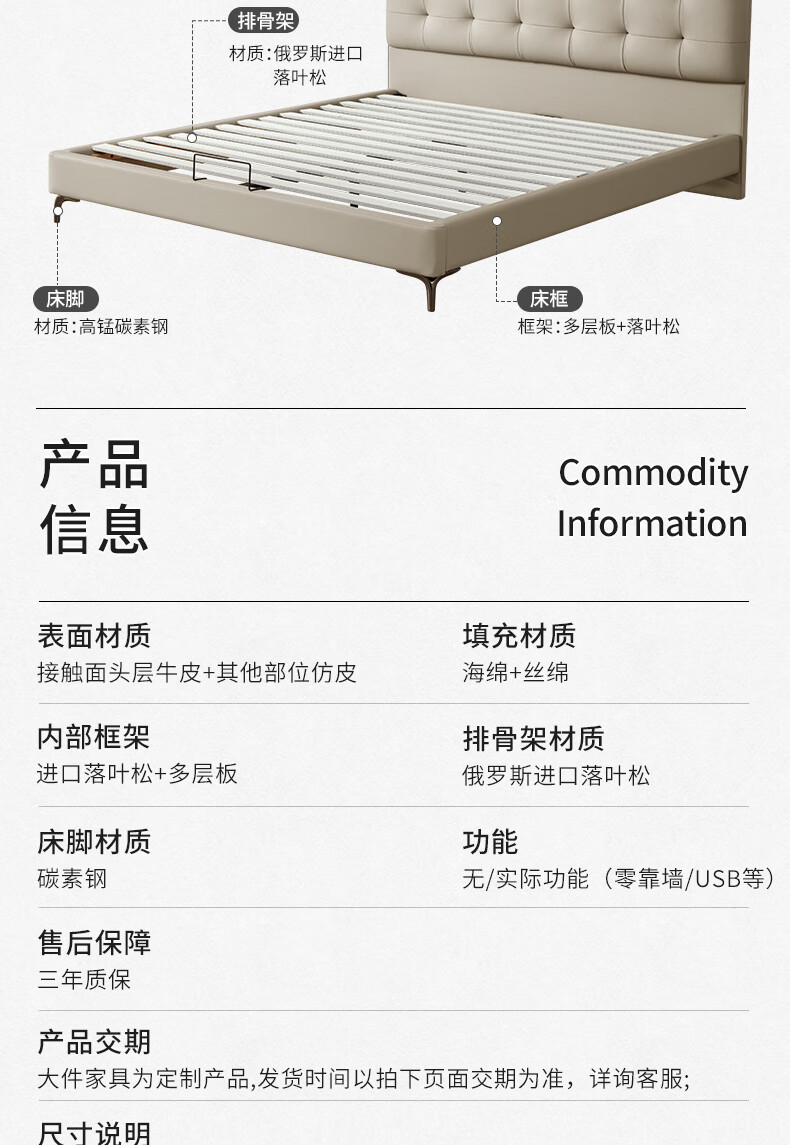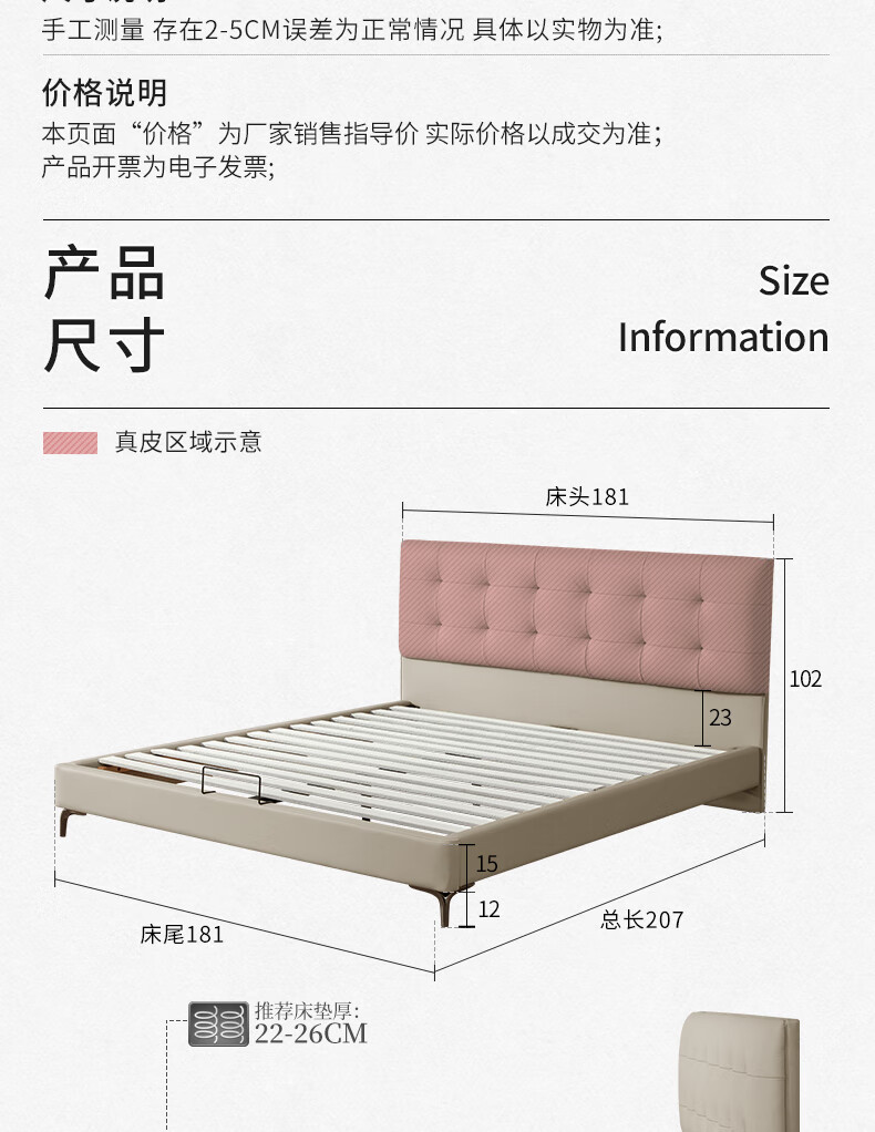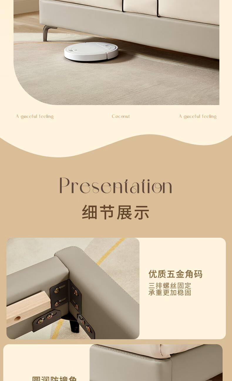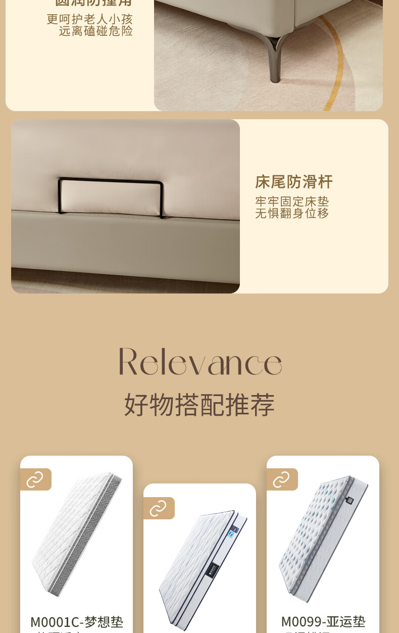 顾家家居华夫格奶油风头层牛皮床双人床卧室DS8109B馥芮白高脚款1.8