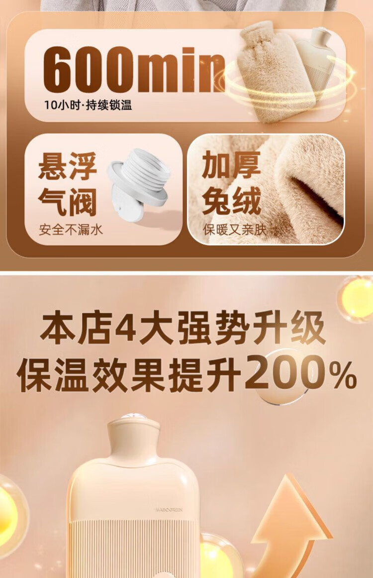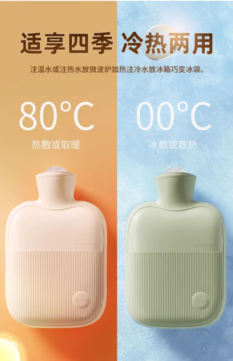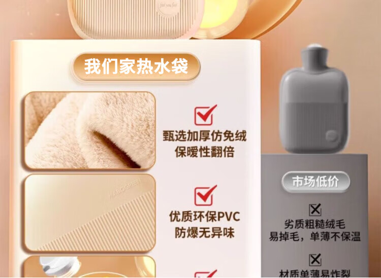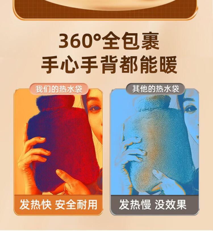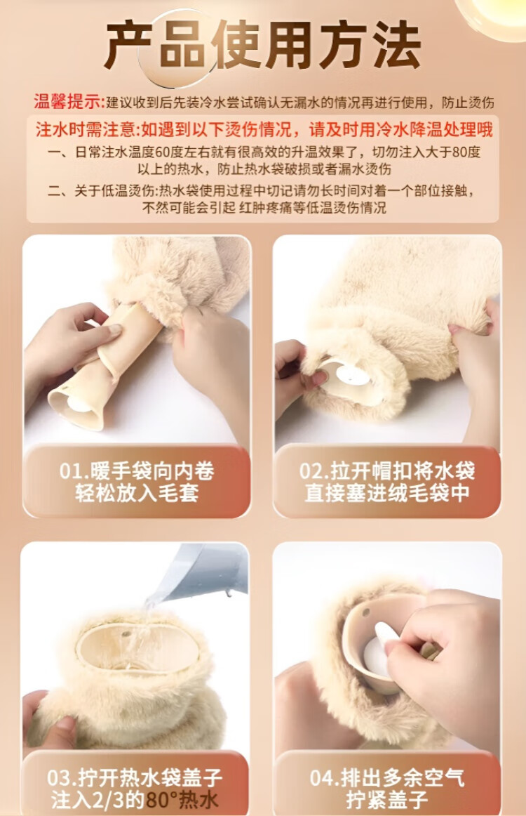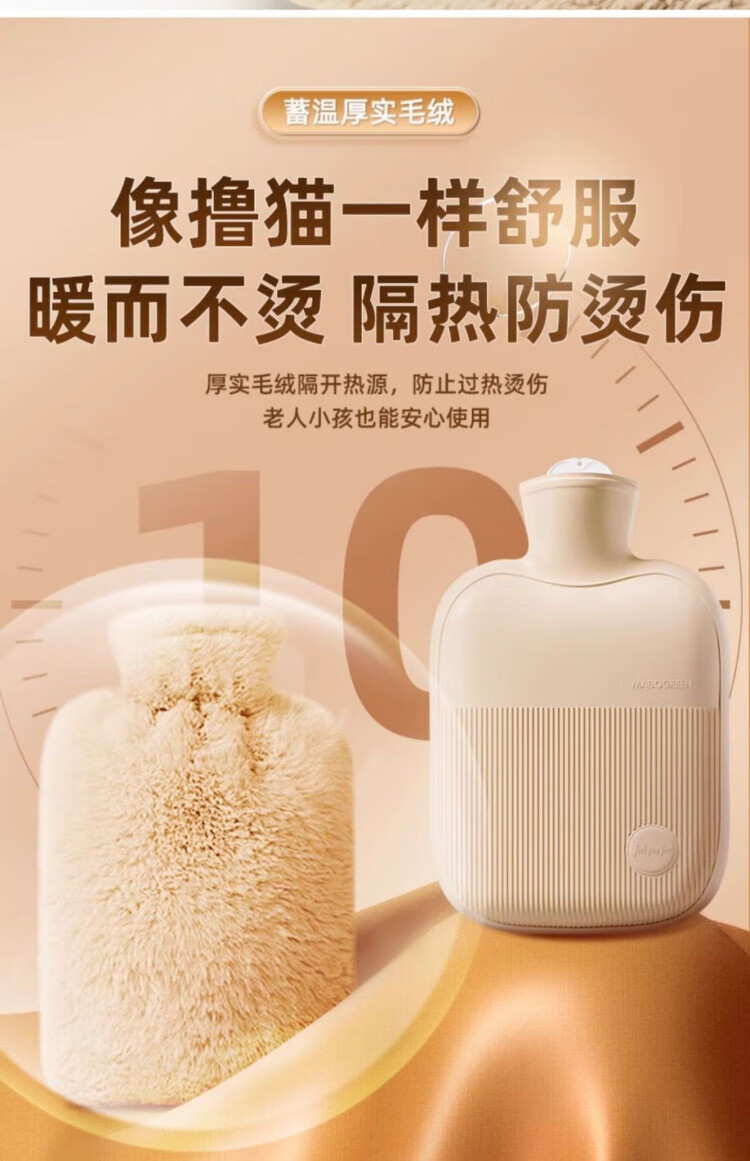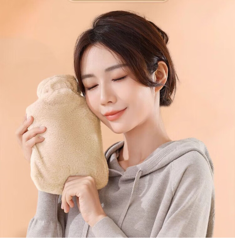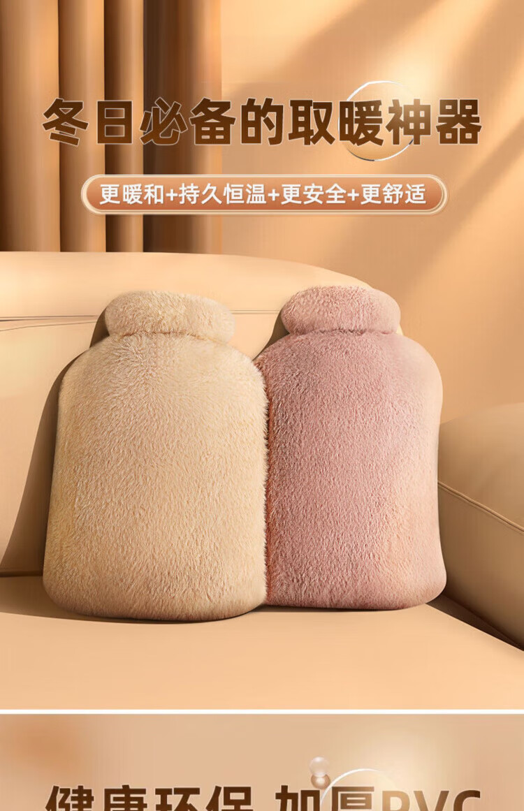 WCZ德国新款热水袋注水暖水袋女暖脚腰敷肚子灌硅胶暖手宝毛绒 暮色粉家用款1000毫升装 【加厚内胆】可拆洗兔绒超柔