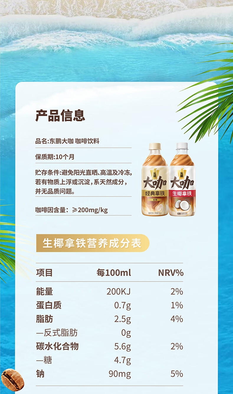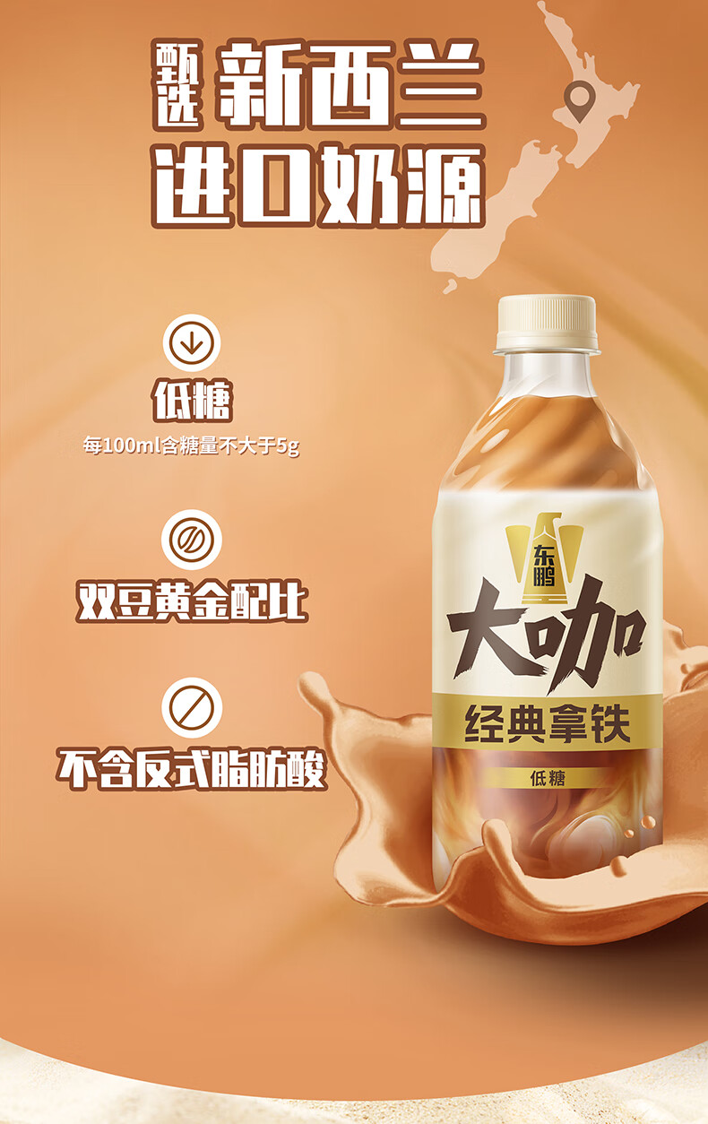 东鹏饮料【韩红同款】东鹏大咖经典拿铁500ml 整箱/6瓶 低糖咖啡饮料 500ml*15瓶