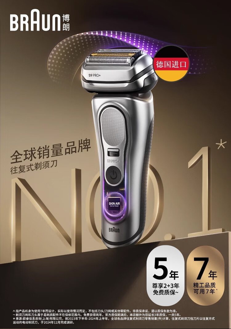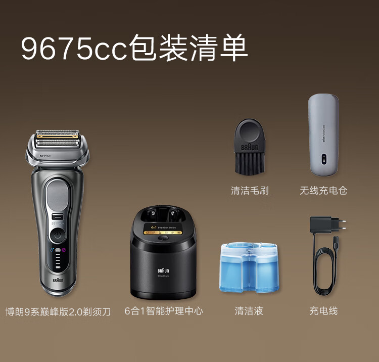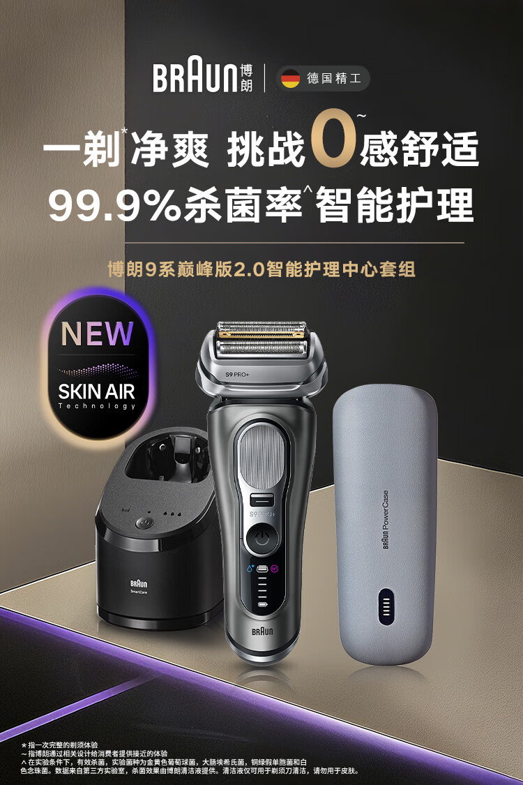 博朗(BRAUN)9系巅峰版2.0电动剃须刀往复式清洁护理中心便携差旅 生日礼物送男朋友老公父亲 灰色