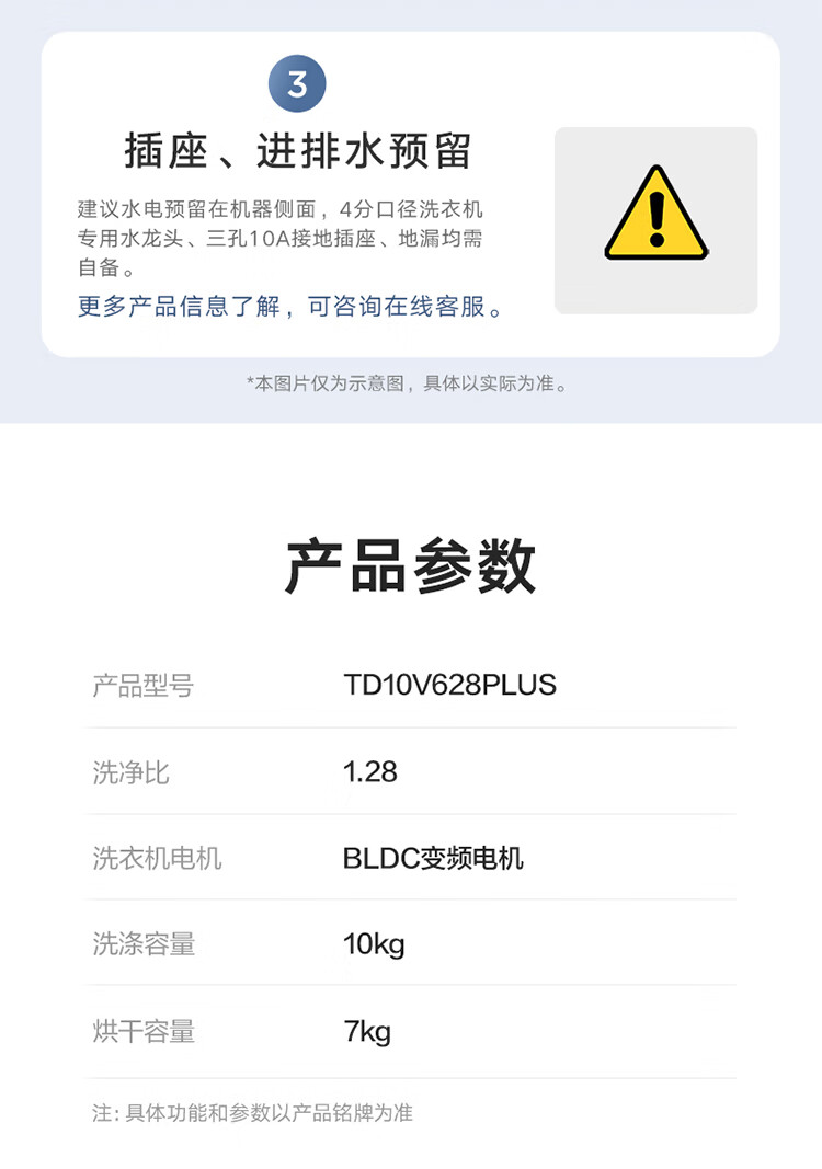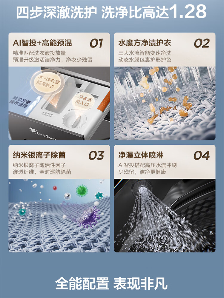 小天鹅(LittleSwan)滚筒洗衣机全自动洗烘一体10公斤水魔方纯平自由嵌 1.28洗净比AI智投 一级能效家电补贴折扣20% TD10V628PLUS