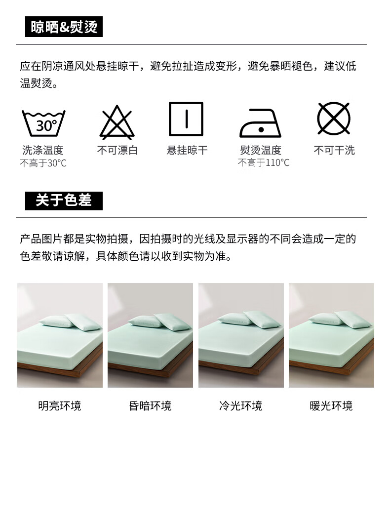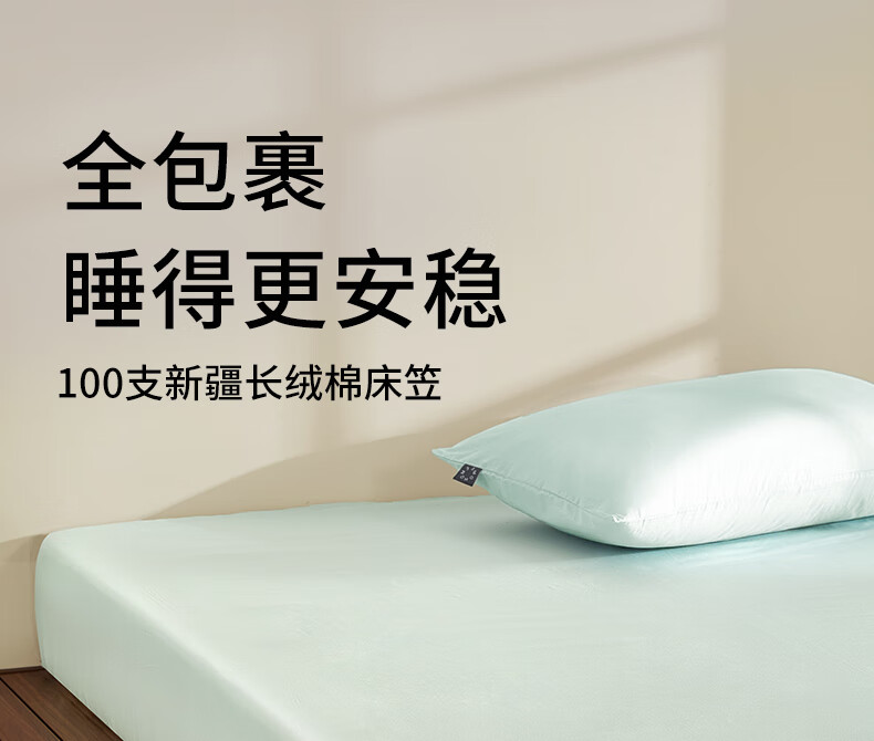 一默【床笠清仓合集1】床笠单件可水洗全包防滑床垫套床笠床保护罩子 新疆长绒棉 100支 丨清泓蓝 180cm*200cm 高30cm【5-27cm床垫用】